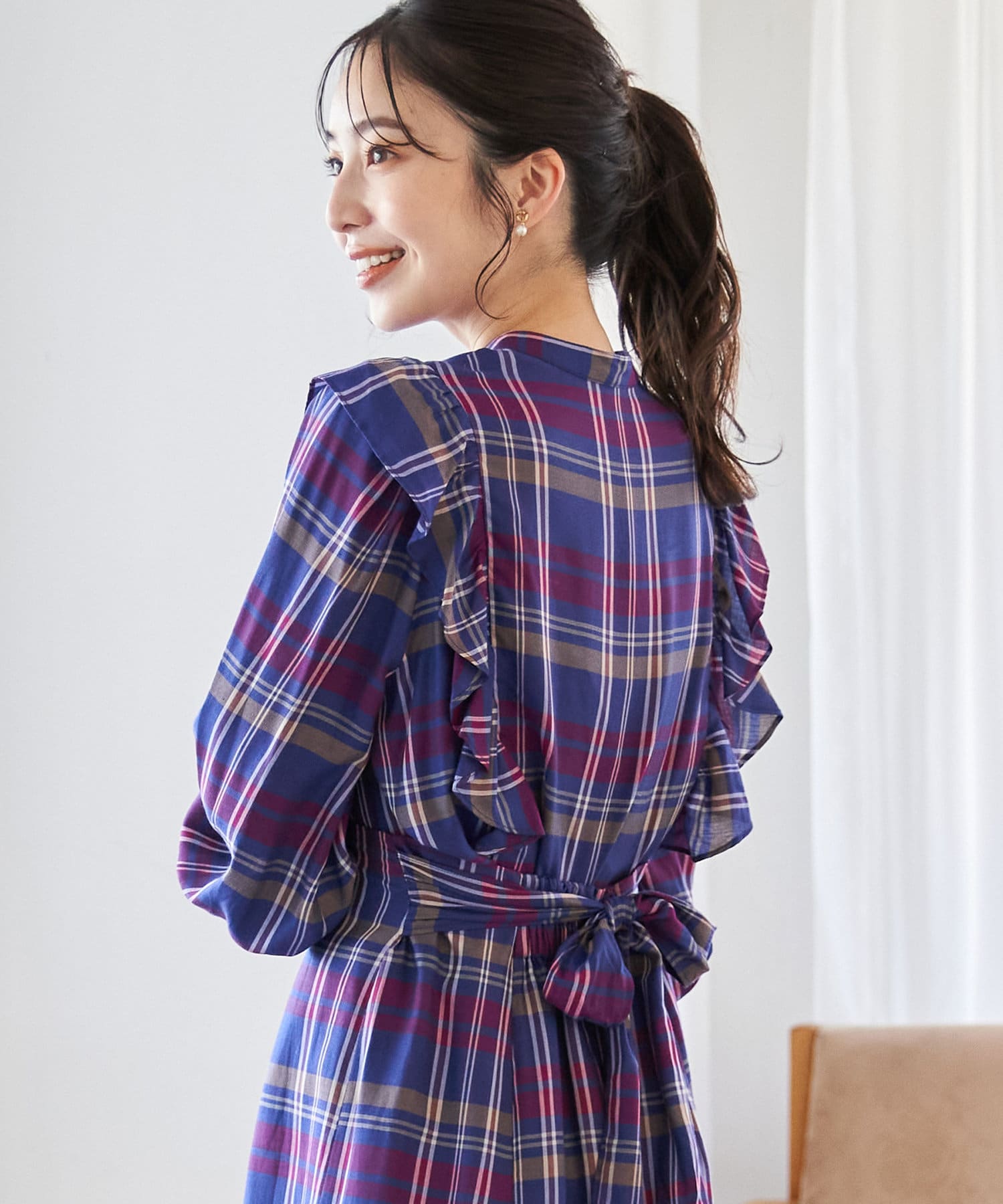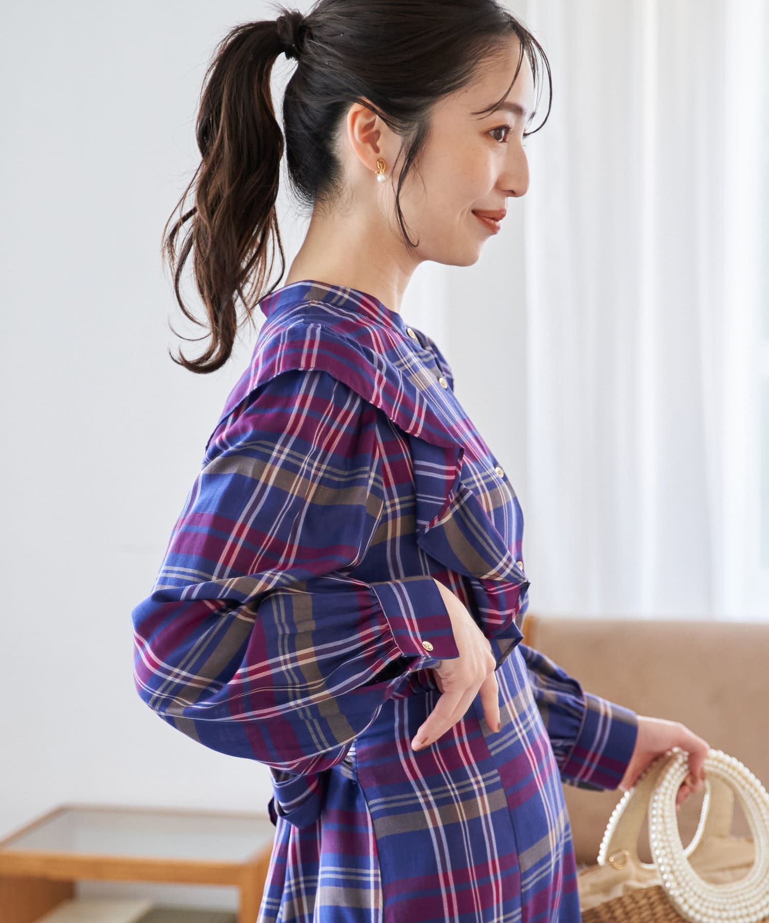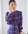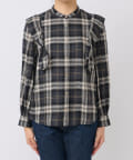 フリルデザインがポイントのチェックブラウス