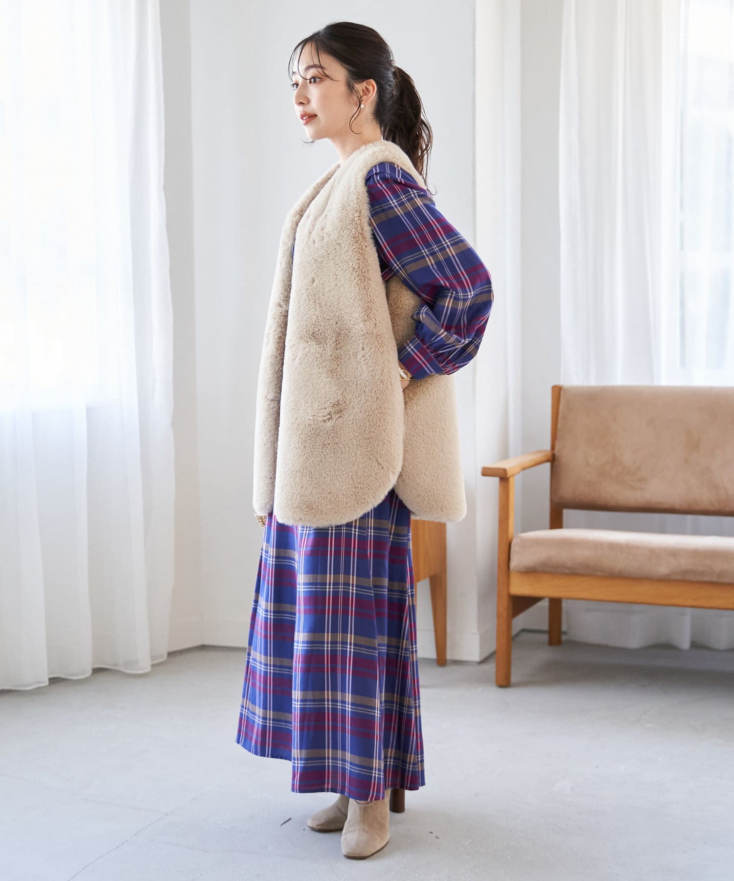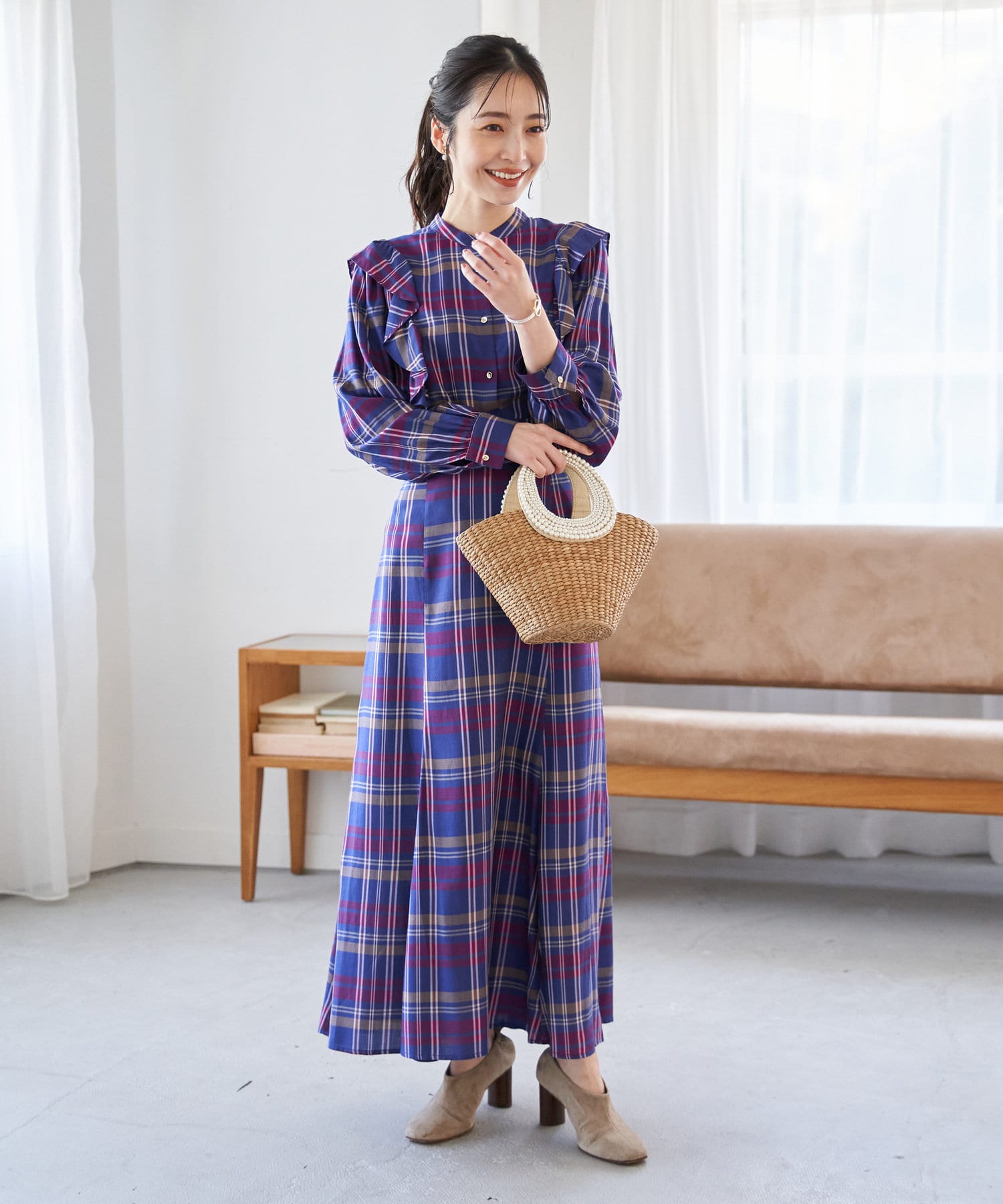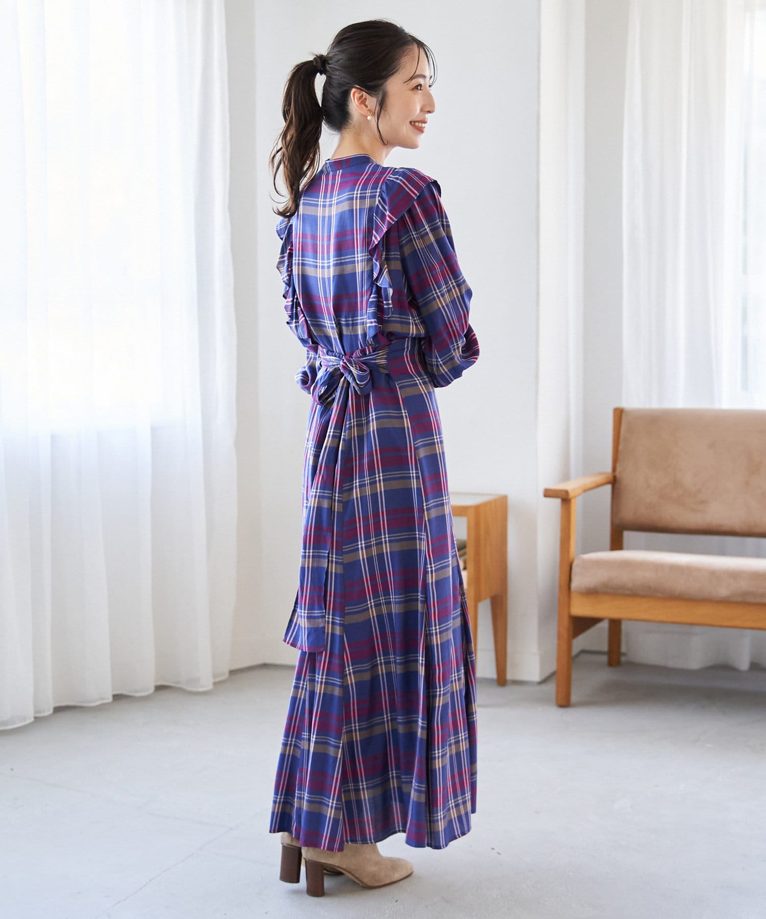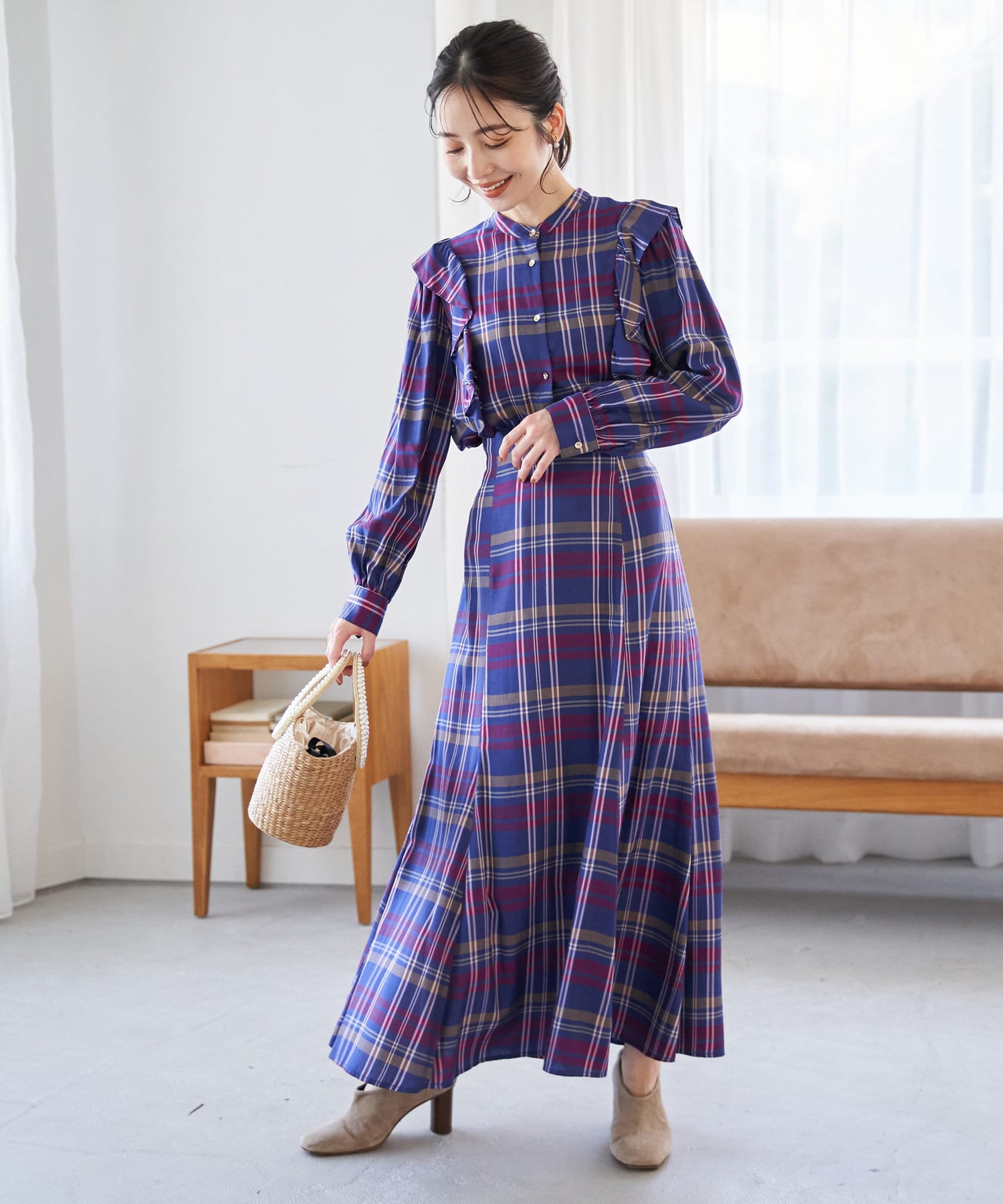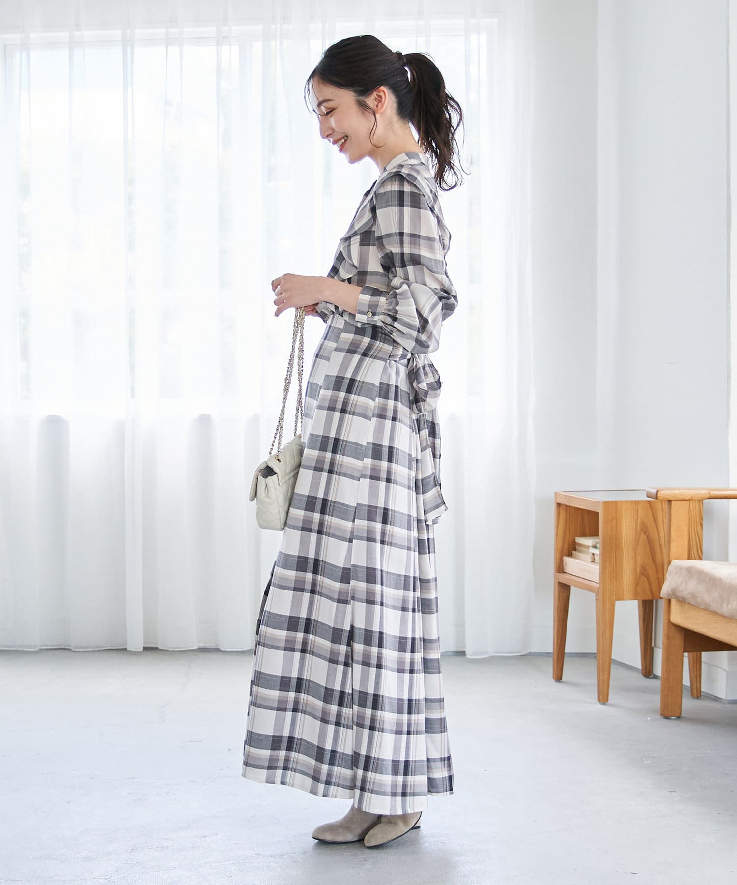 チェック柄が華やかな印象にしてくれるので、