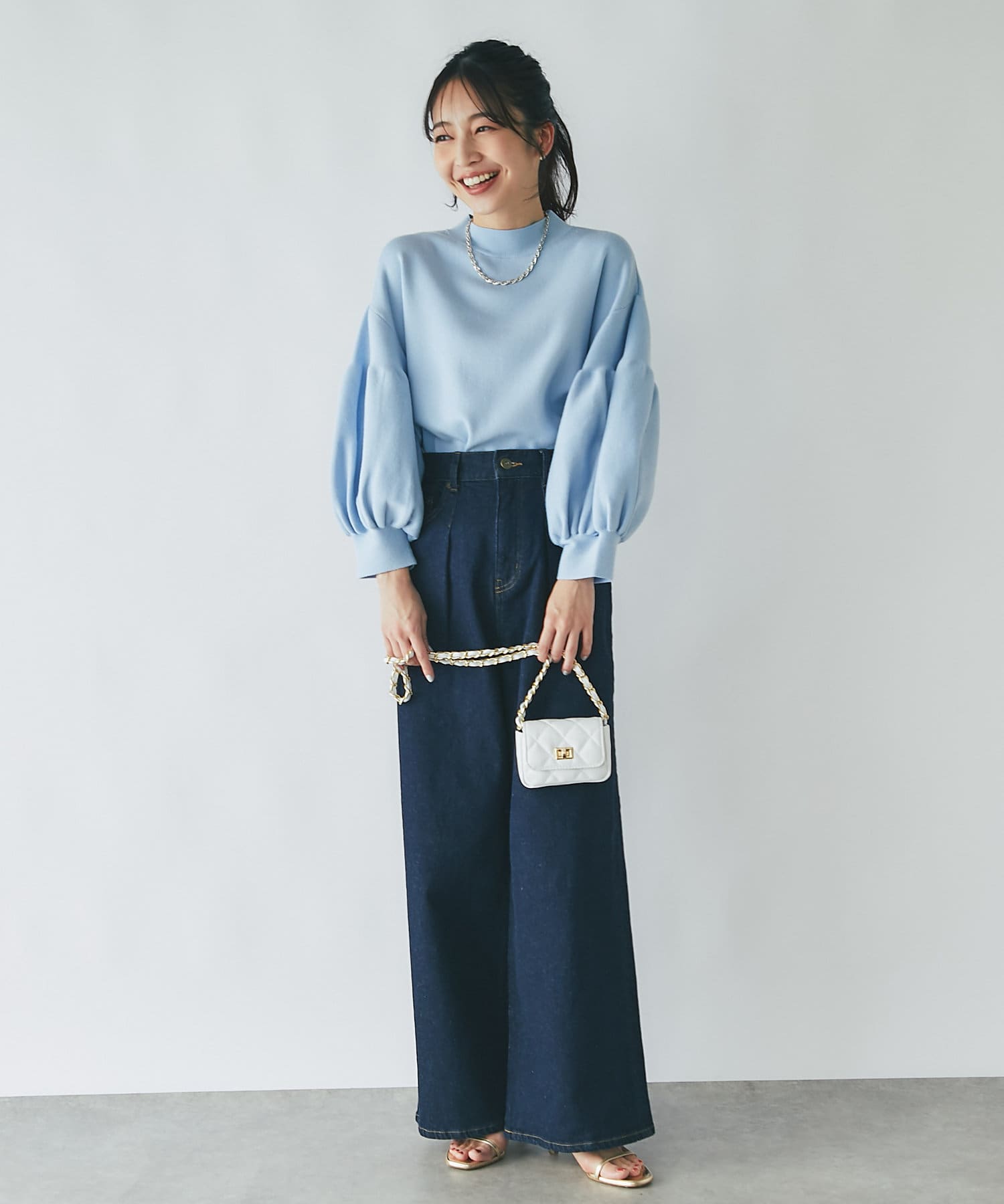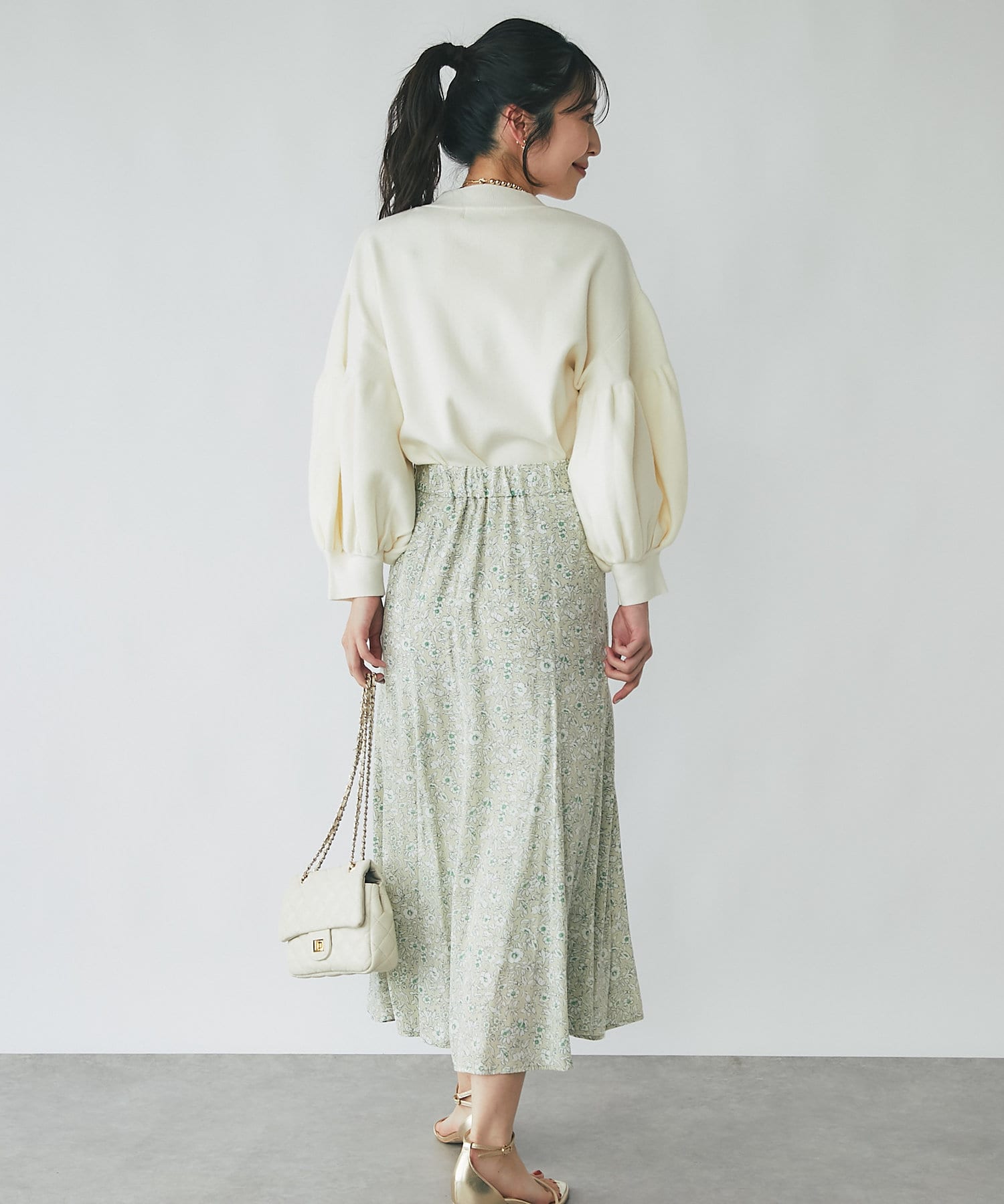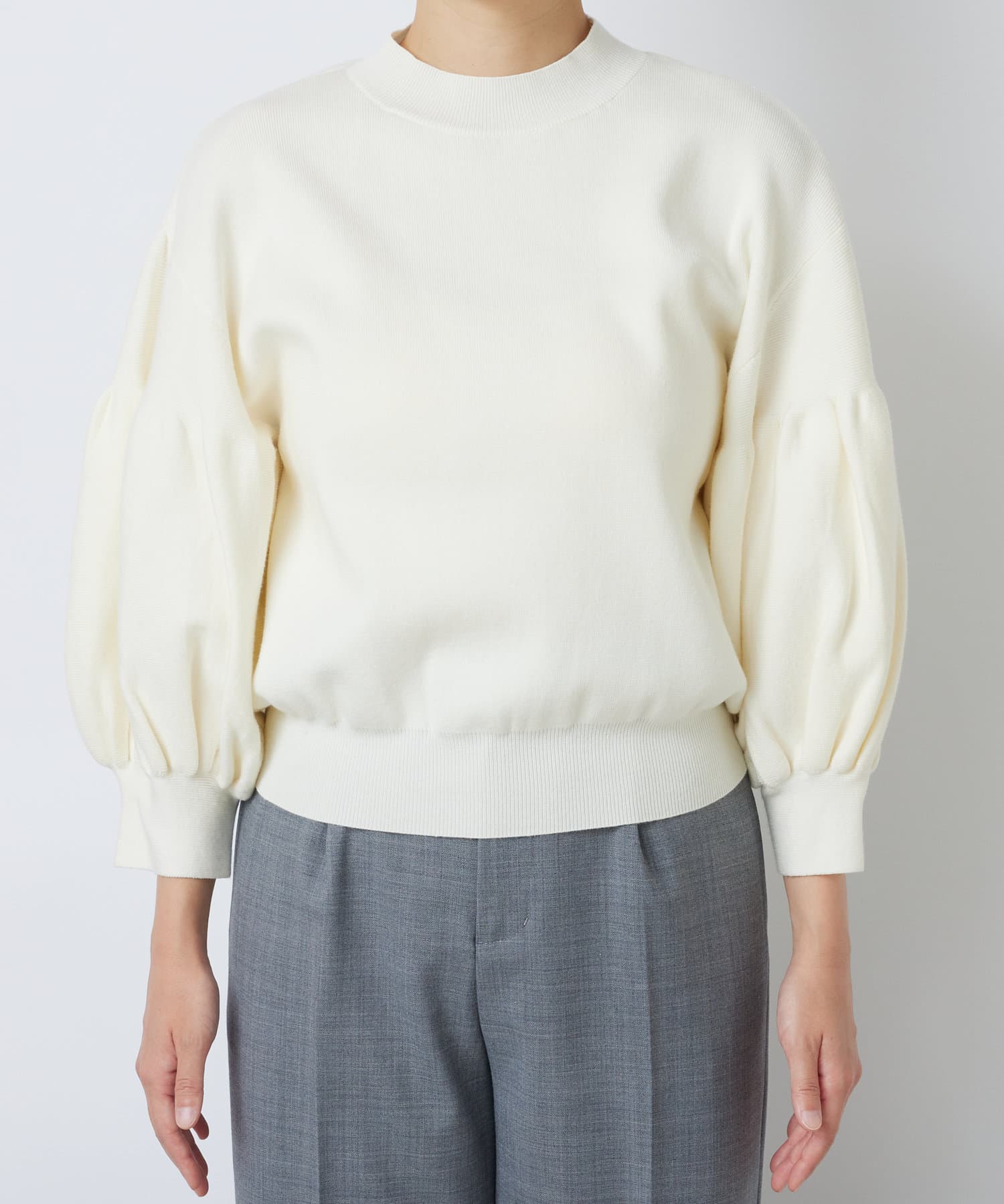 丸い膨らみのあるパフスリーブが可愛いデザインニット。