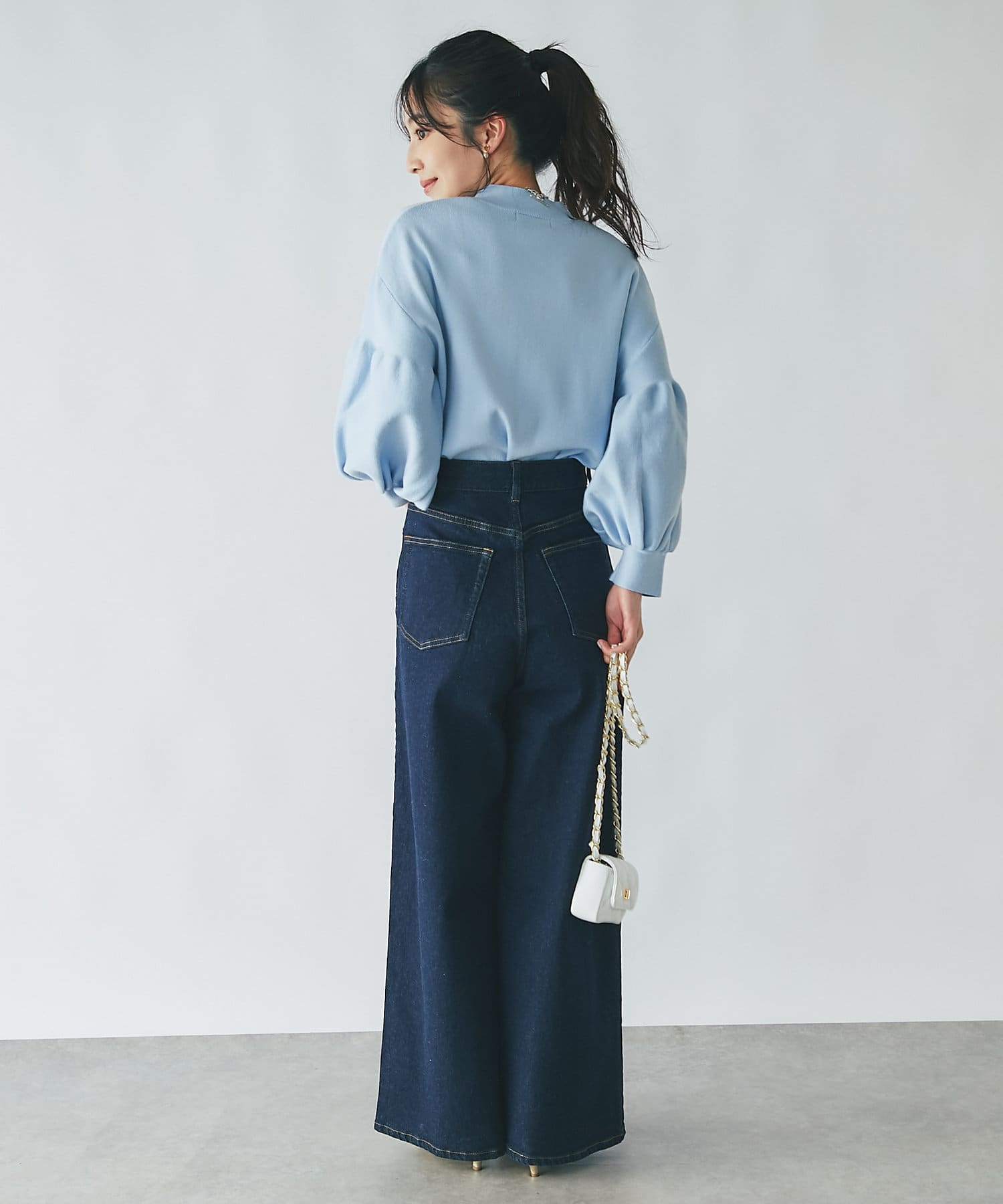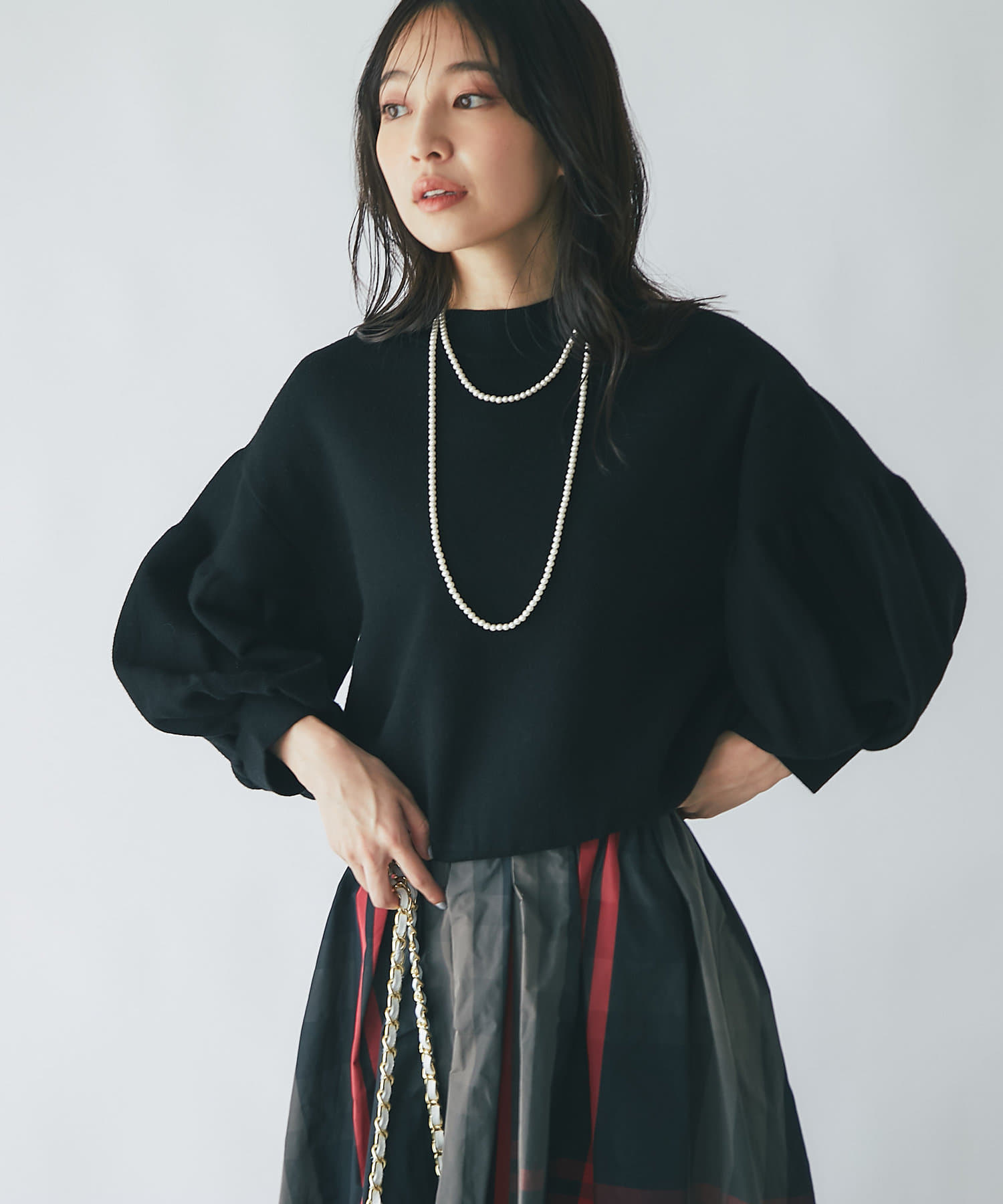 • 丸い膨らみのあるパフスリーブが可愛いデザインニット