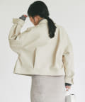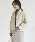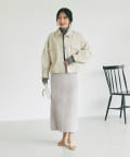 フェミニンアイテムと好相性なレザーブルゾンです。