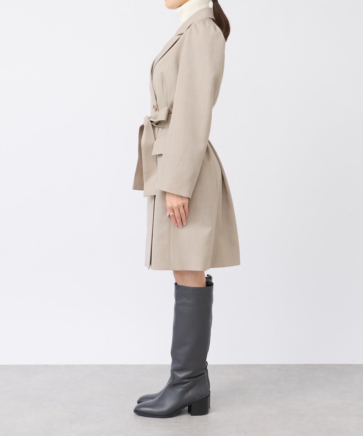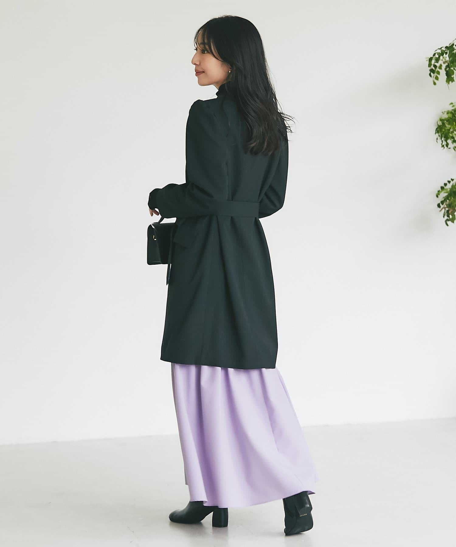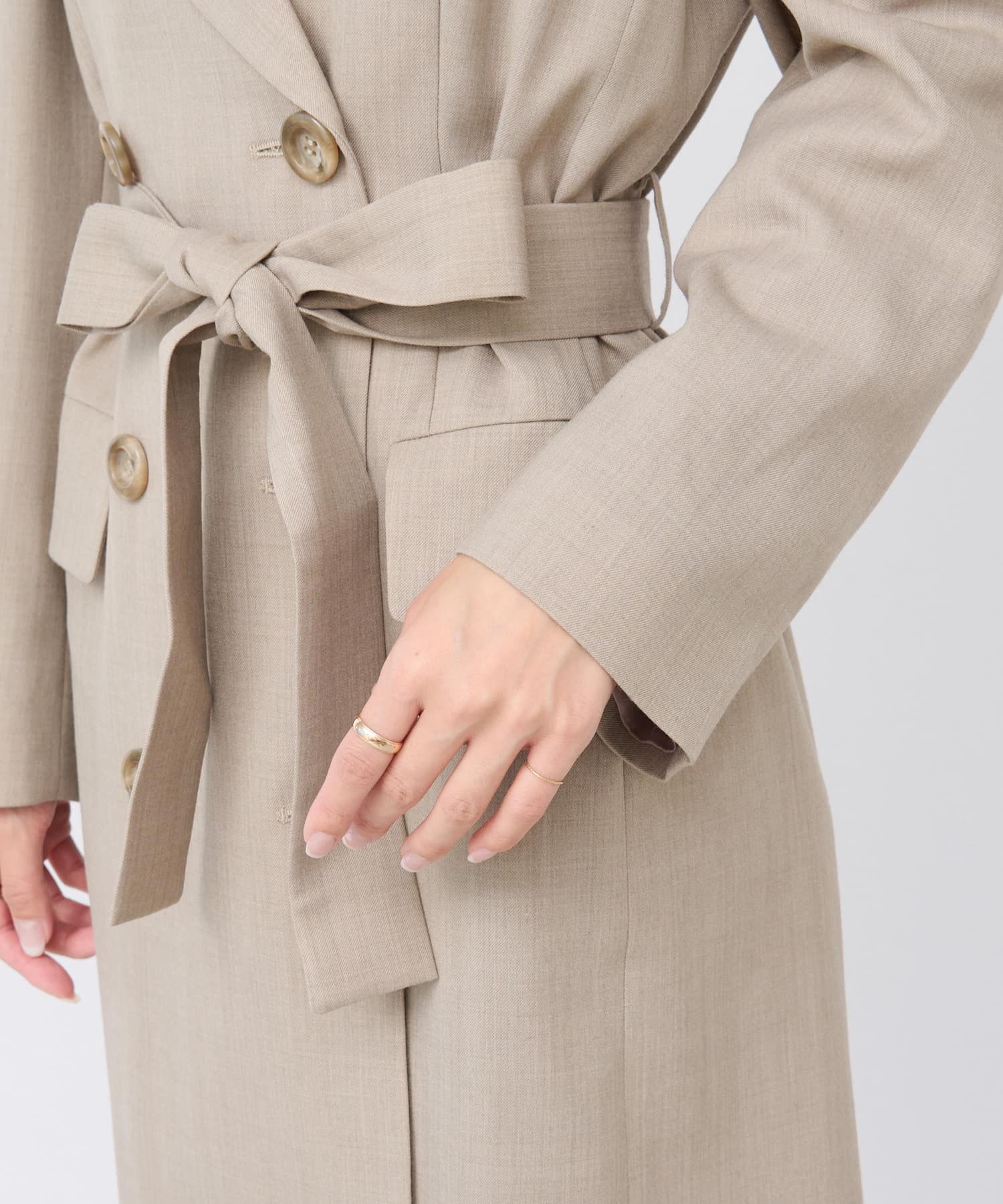 サッシュベルト付きでウエストマークしていただくとメリハリのあるシルエットに。