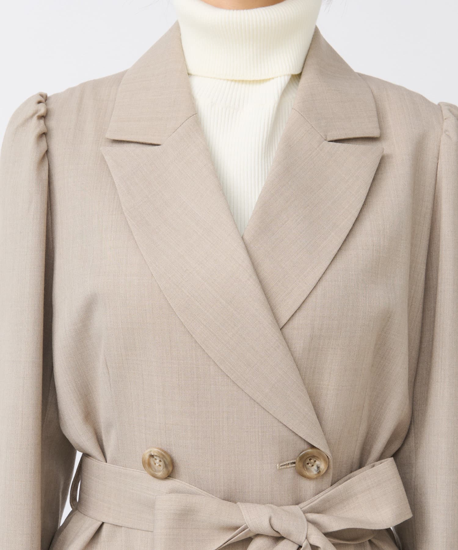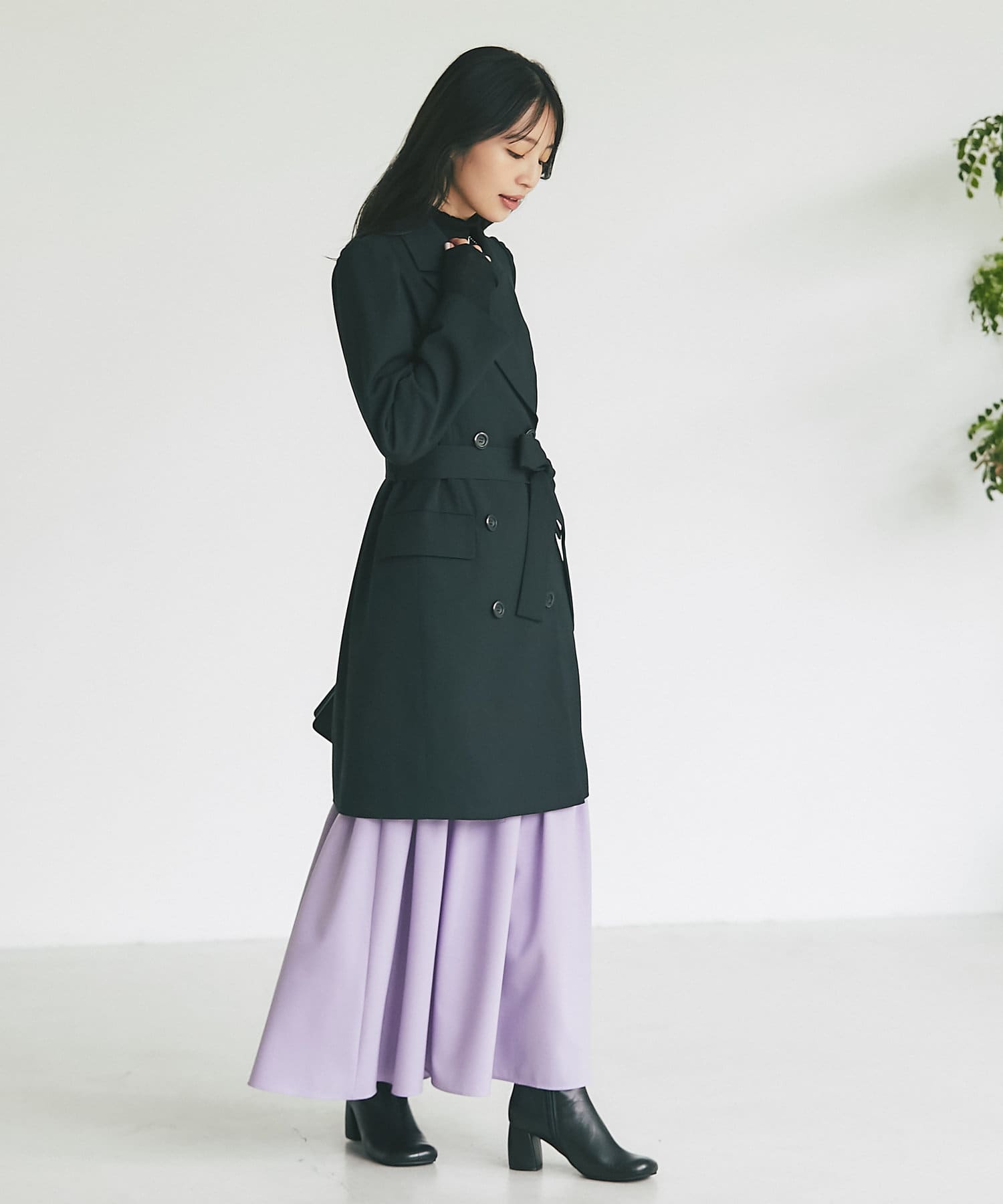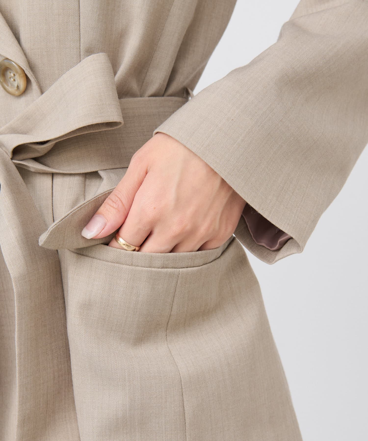 サッシュベルト付きでウエストマークしていただくとメリハリのあるシルエットに。