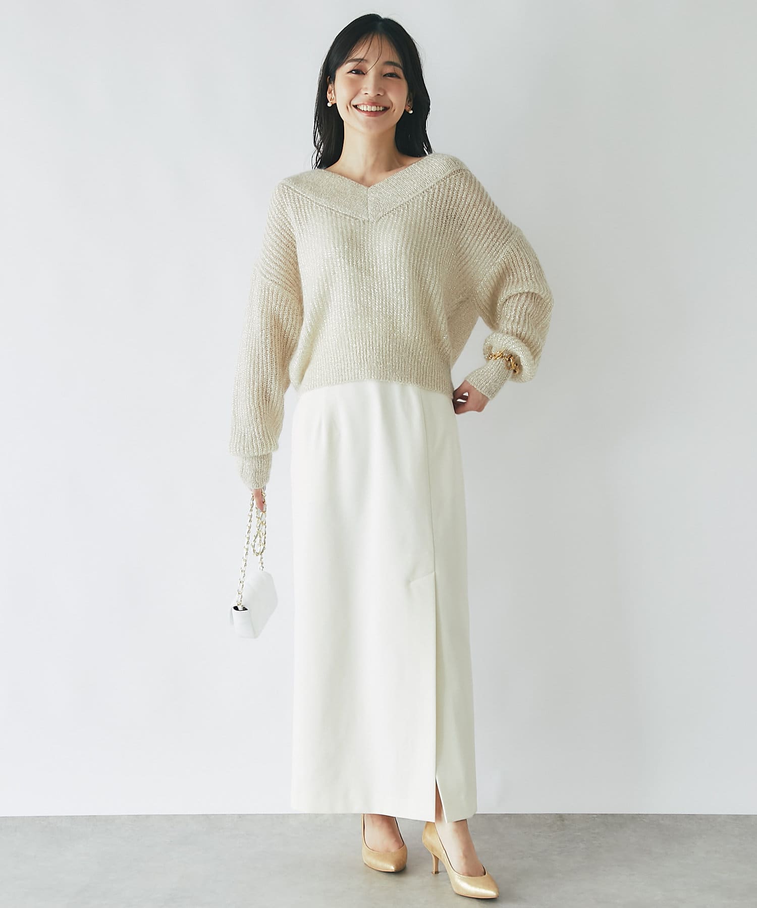 ゆるっとしたニットなどカジュアルなスタイリングとも好相性。