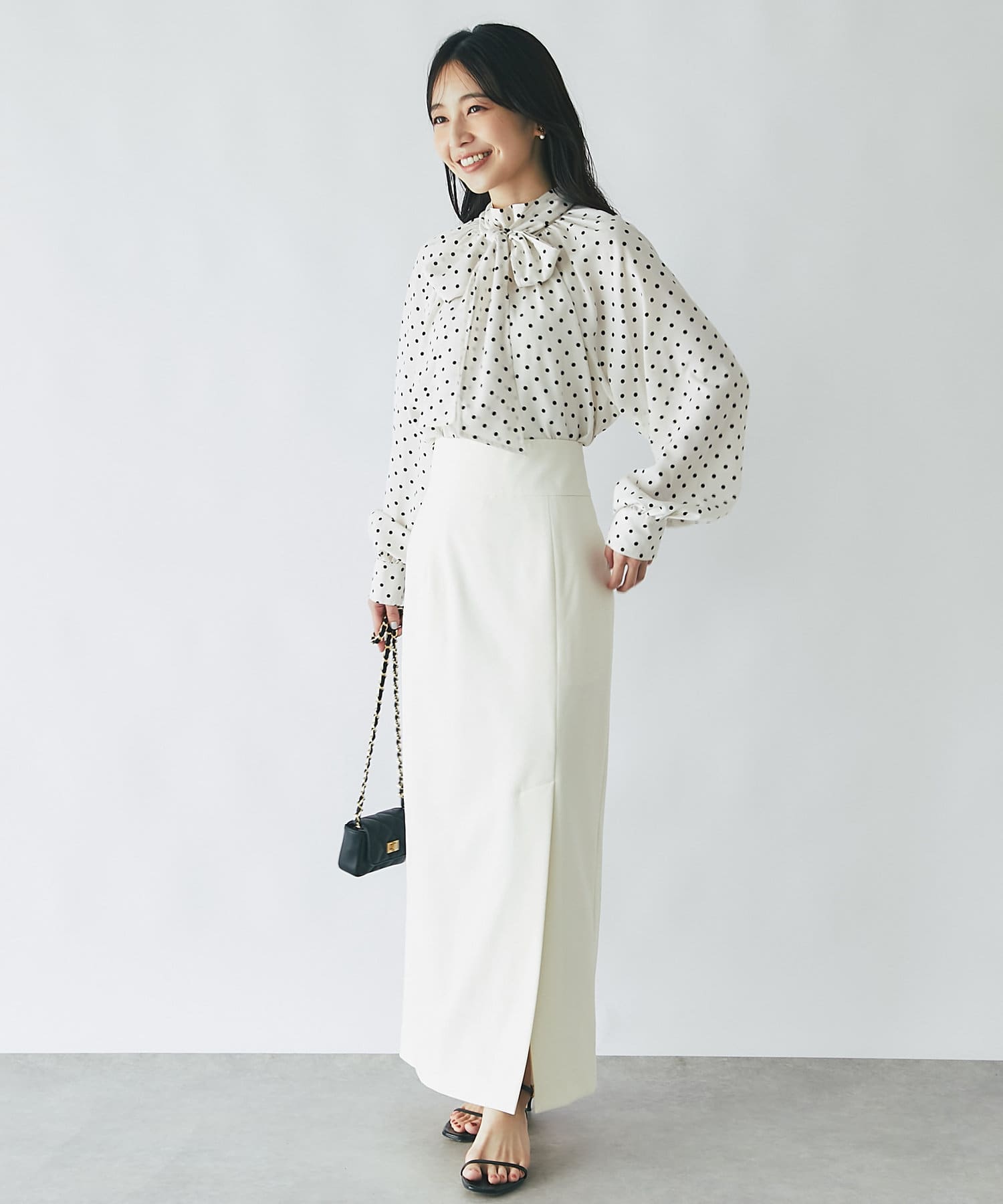 【ストレッチ素材で履きやすい】カットジョーゼットナローマキシスカート