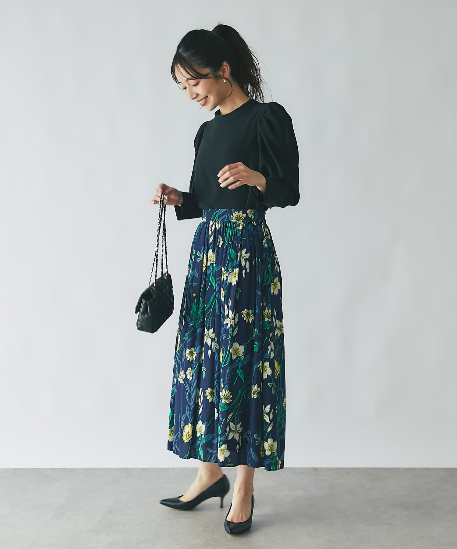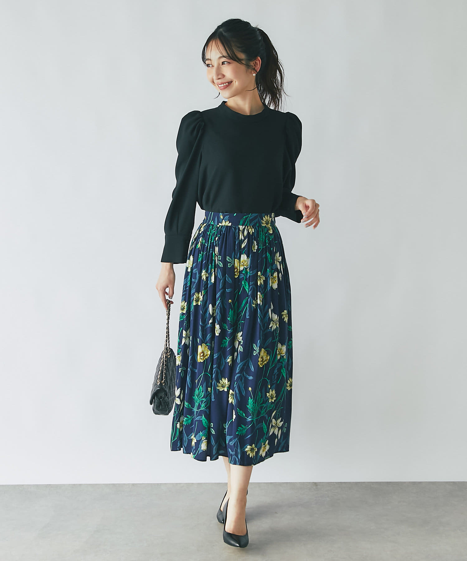 落ち感のある素材で、やわらかく揺れる裾がフェミニンです。