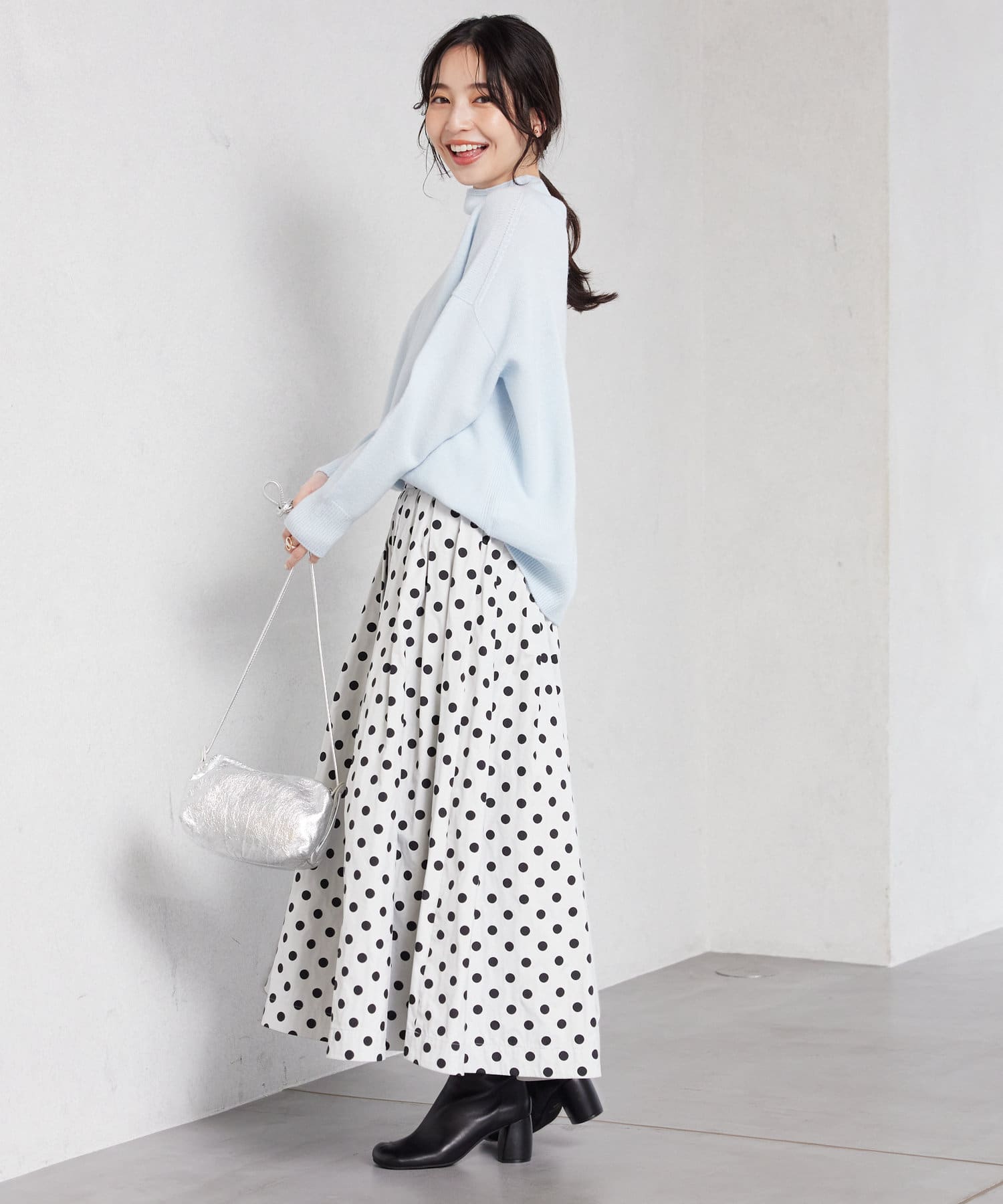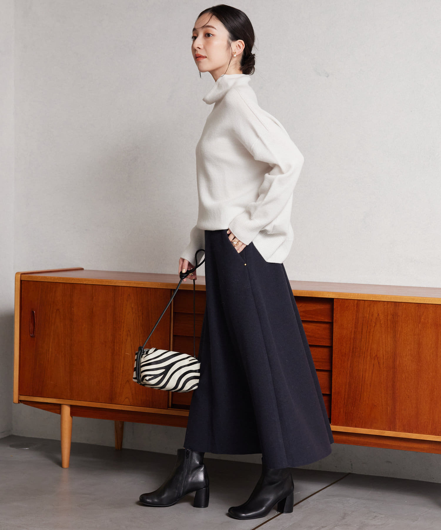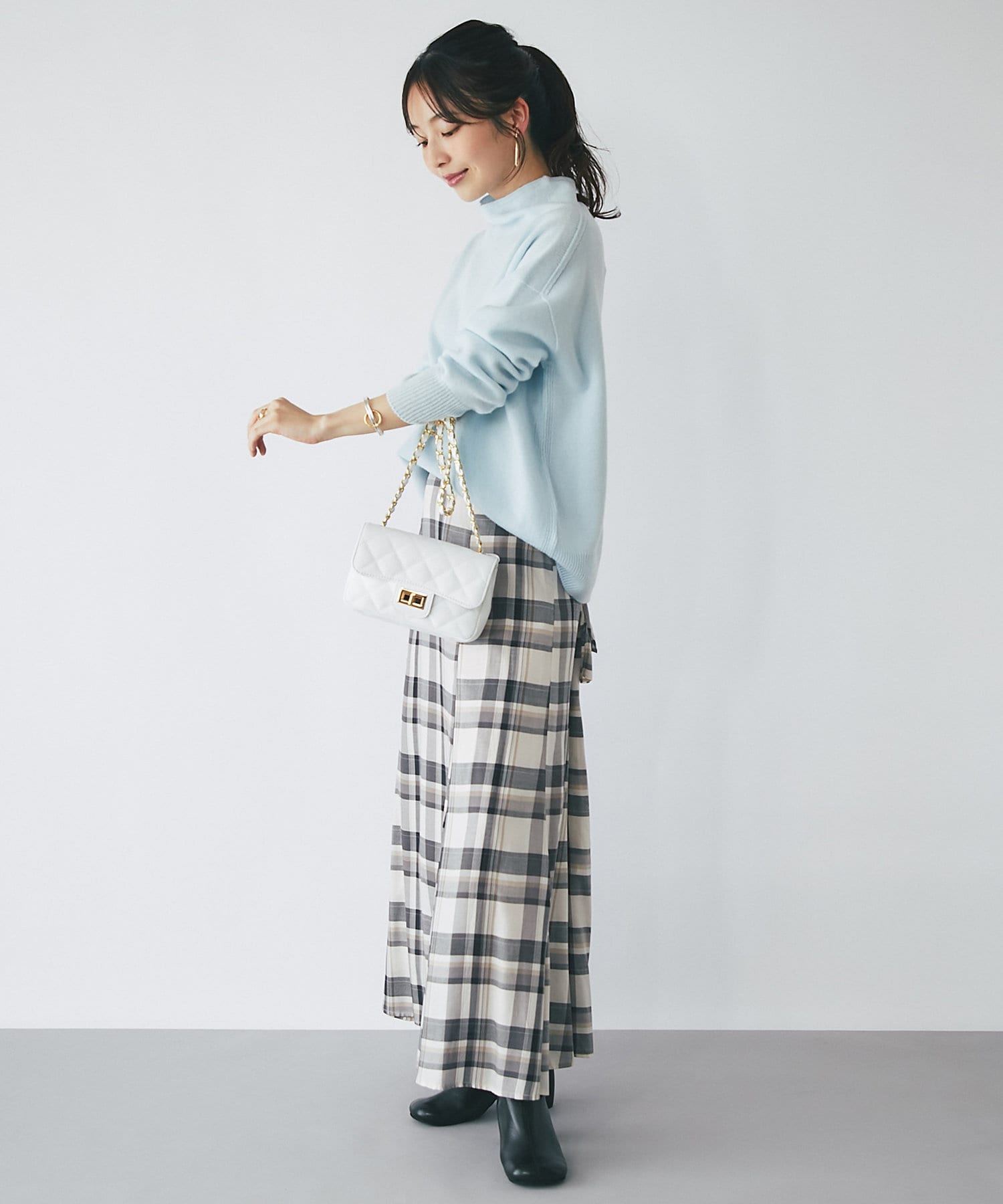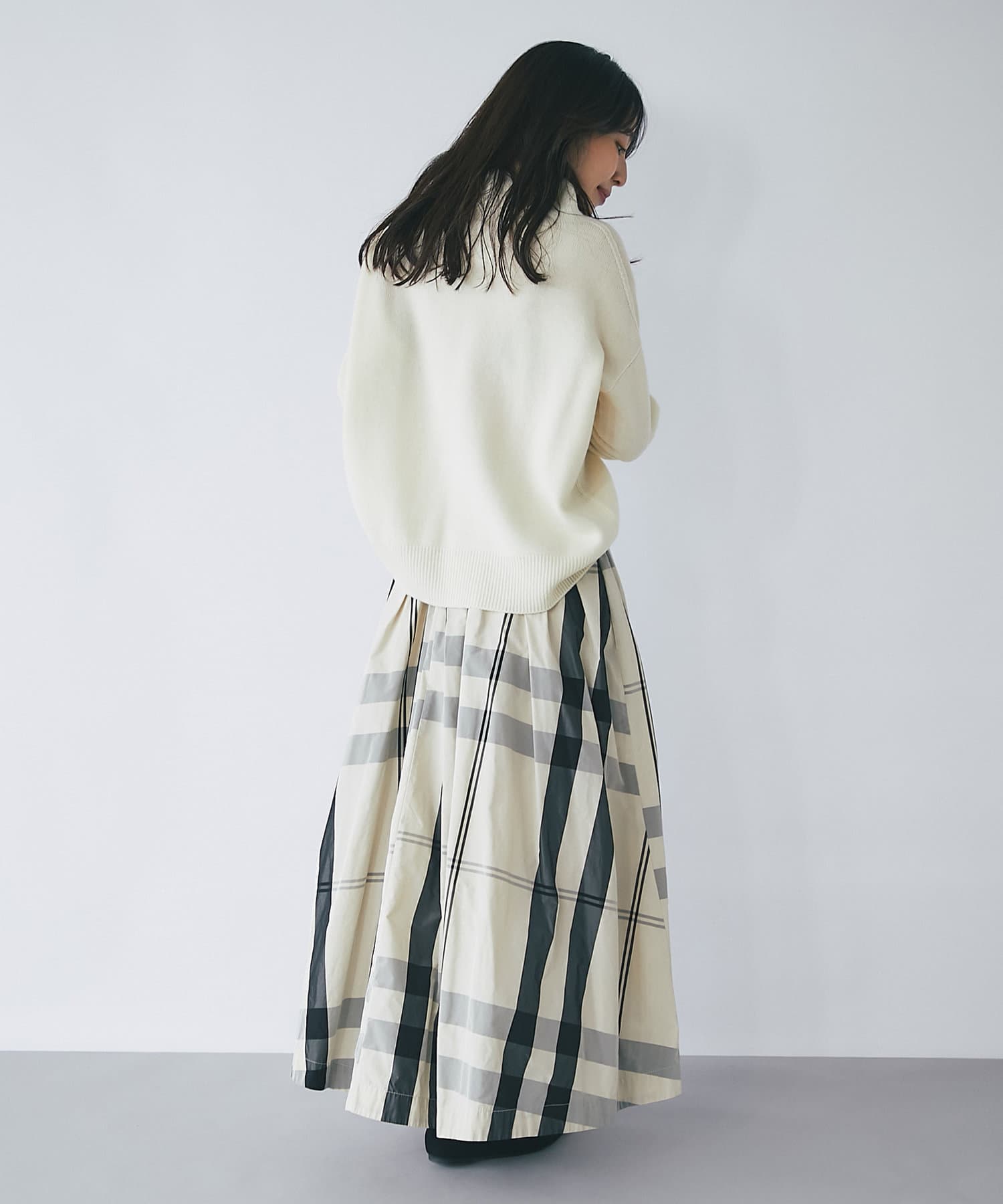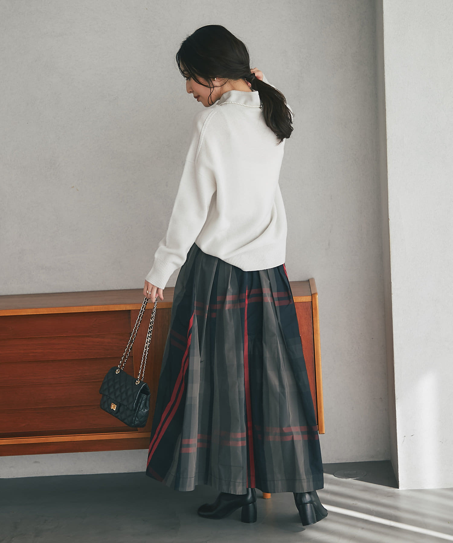 人気のチェックスカートなどボリューム感のあるボトムはもちろん、ナロースカートなどすっきりとしたシルエットのボトムとも好相性。
