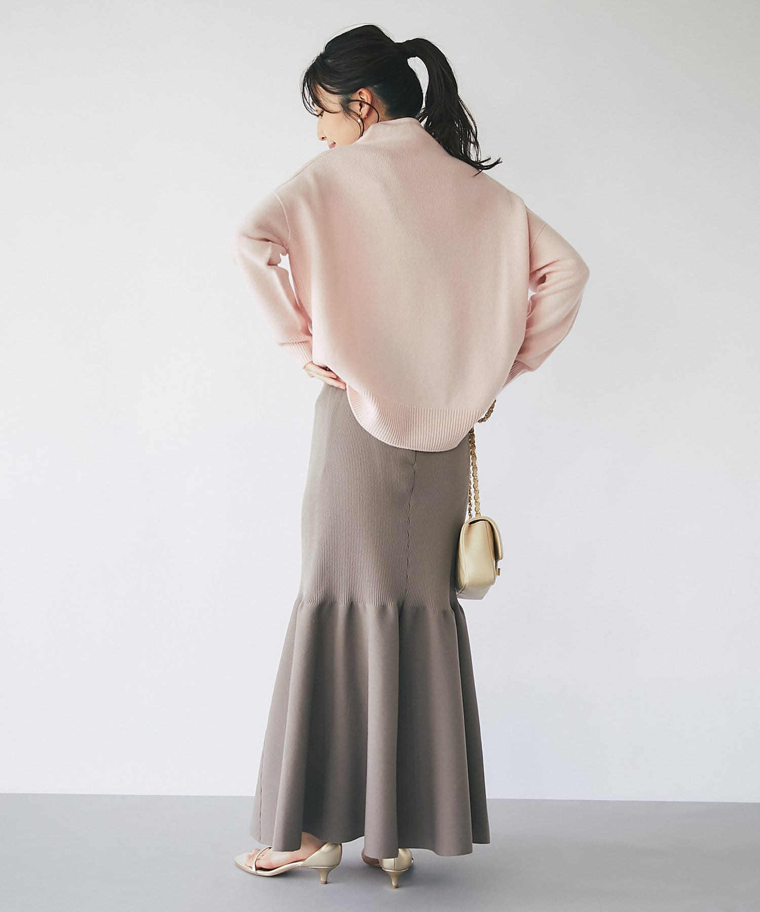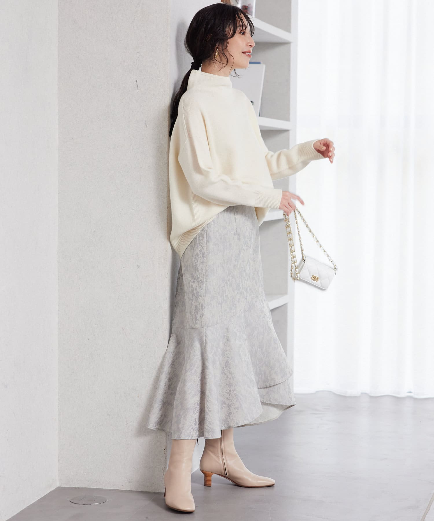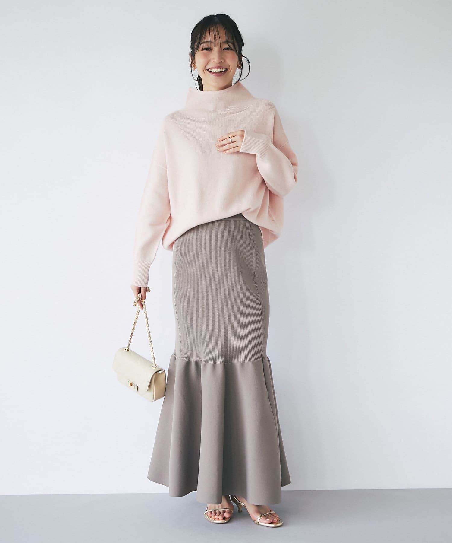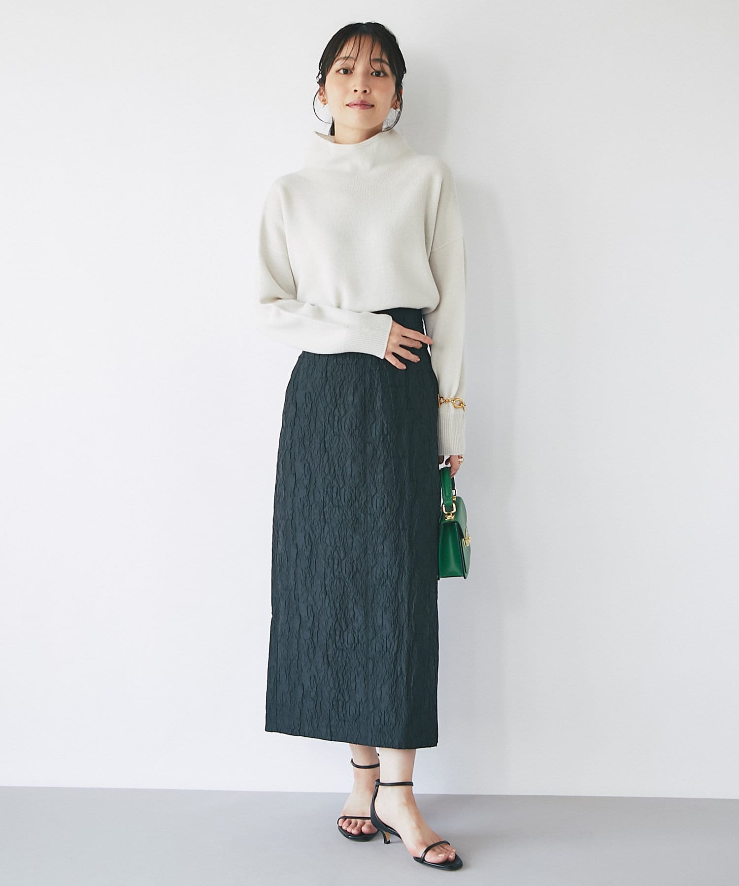 人気のチェックスカートなどボリューム感のあるボトムはもちろん、ナロースカートなどすっきりとしたシルエットのボトムとも好相性。
