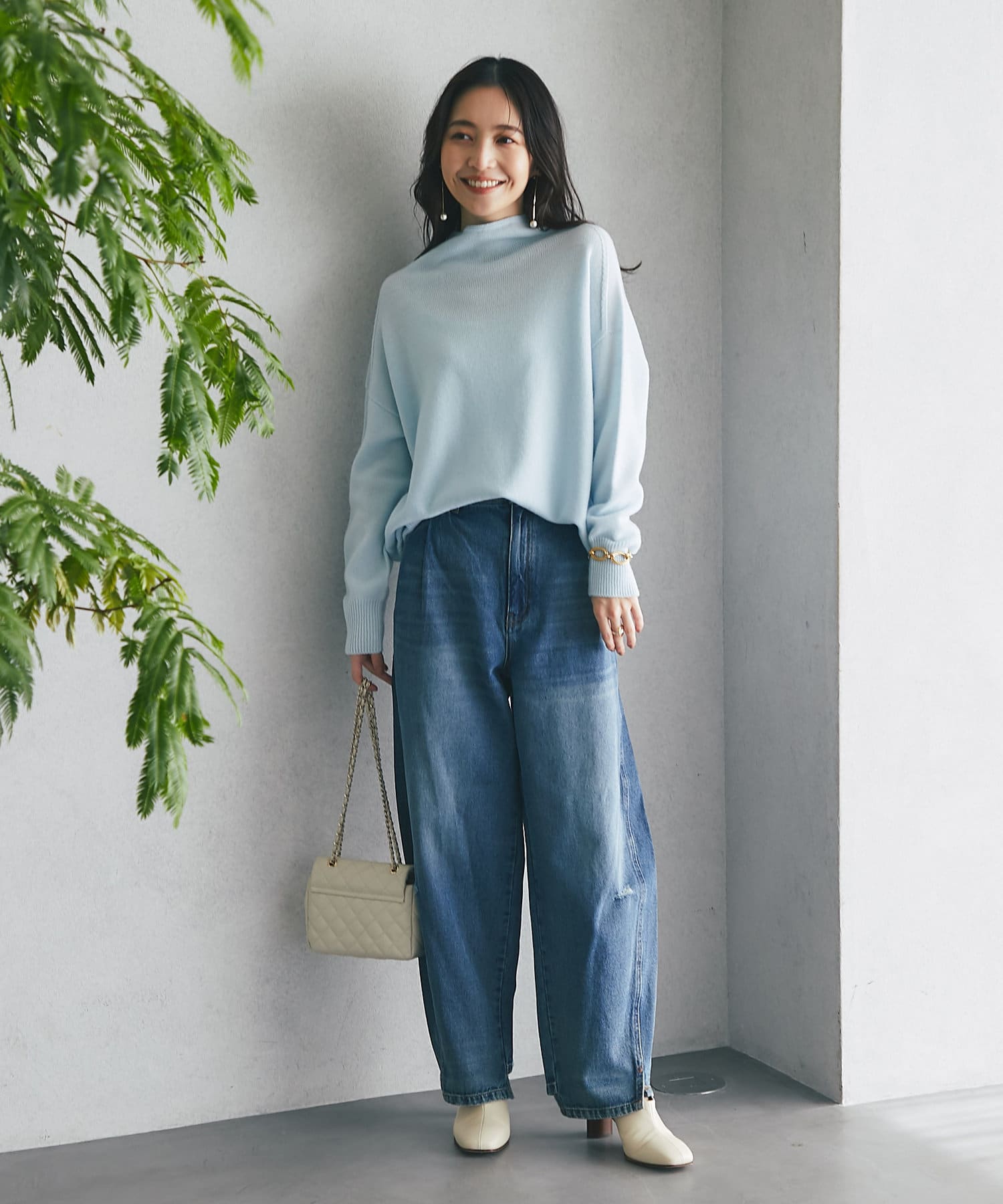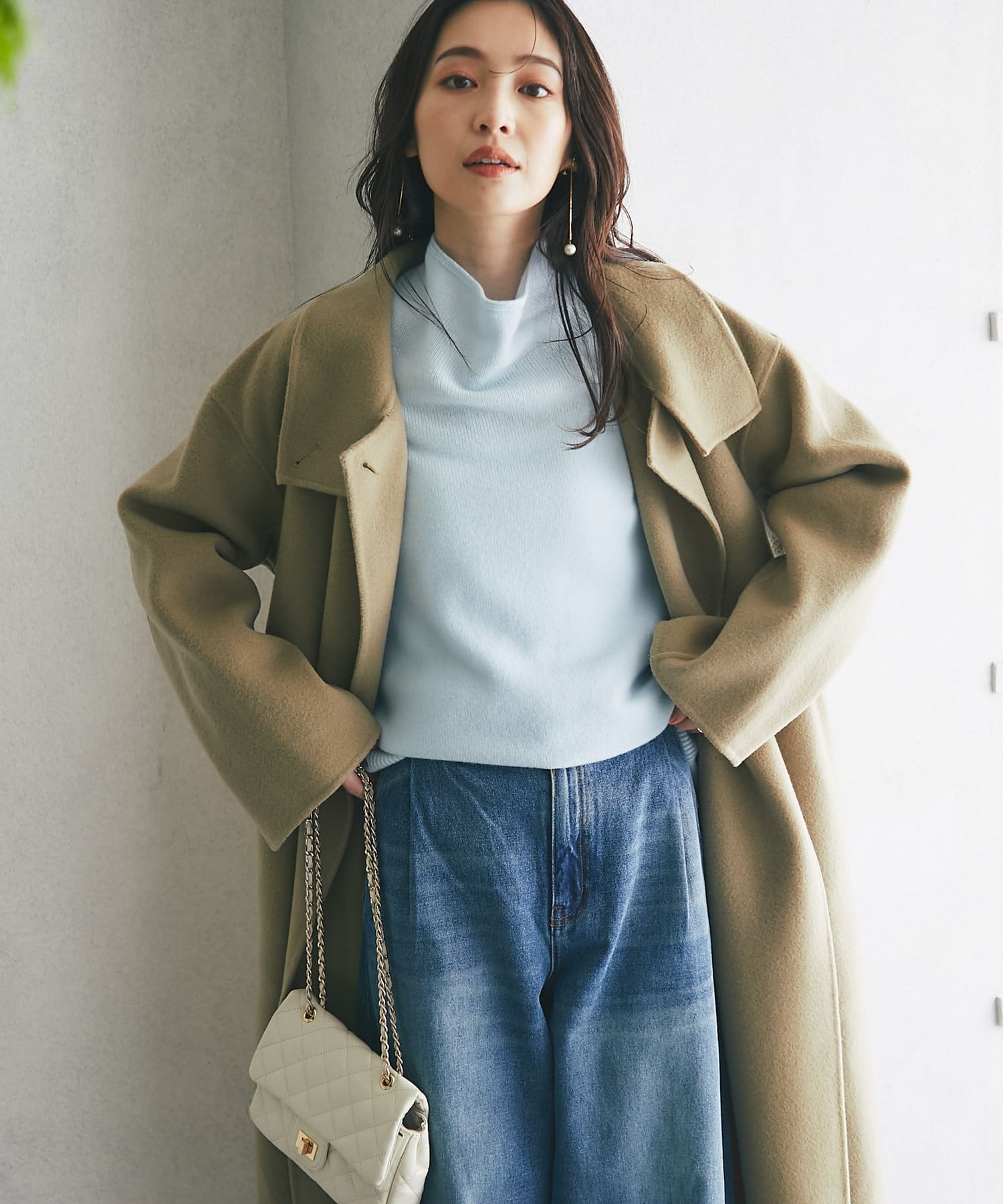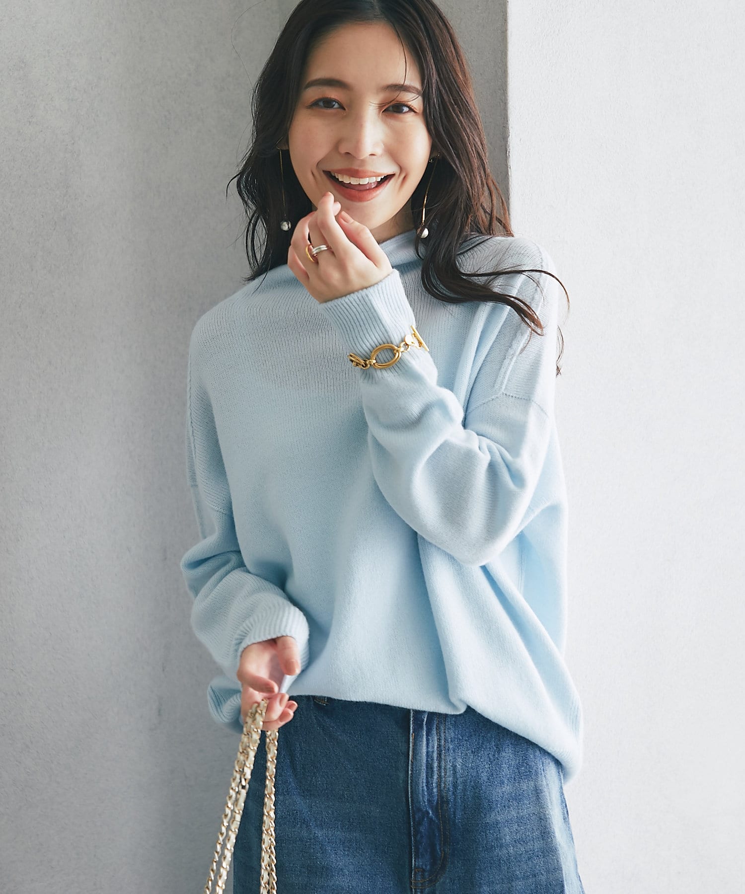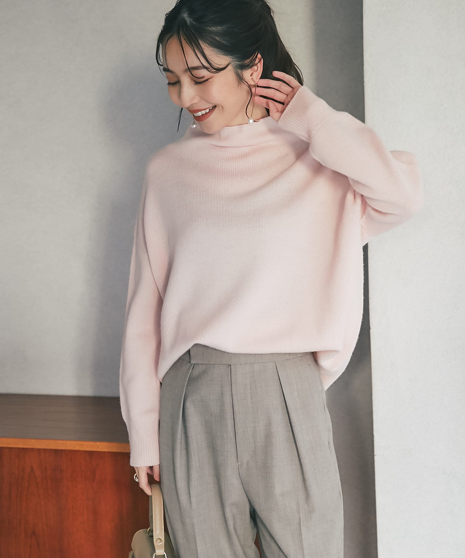 毎シーズン人気の名品!程よい開きのボトルネックで暖かくメイクが擦れにくいニット
