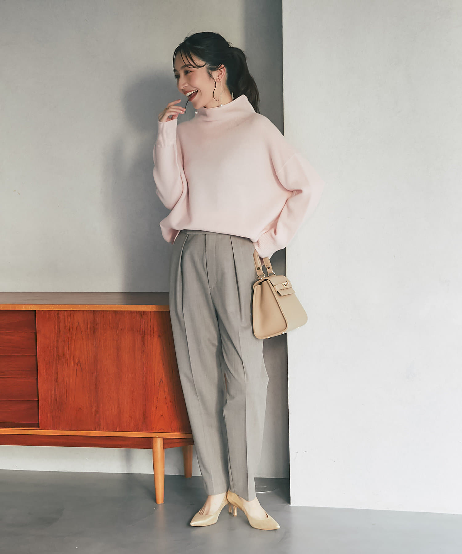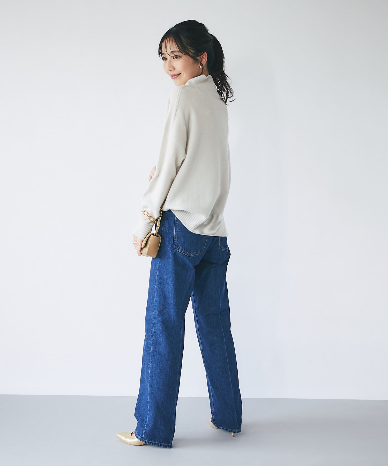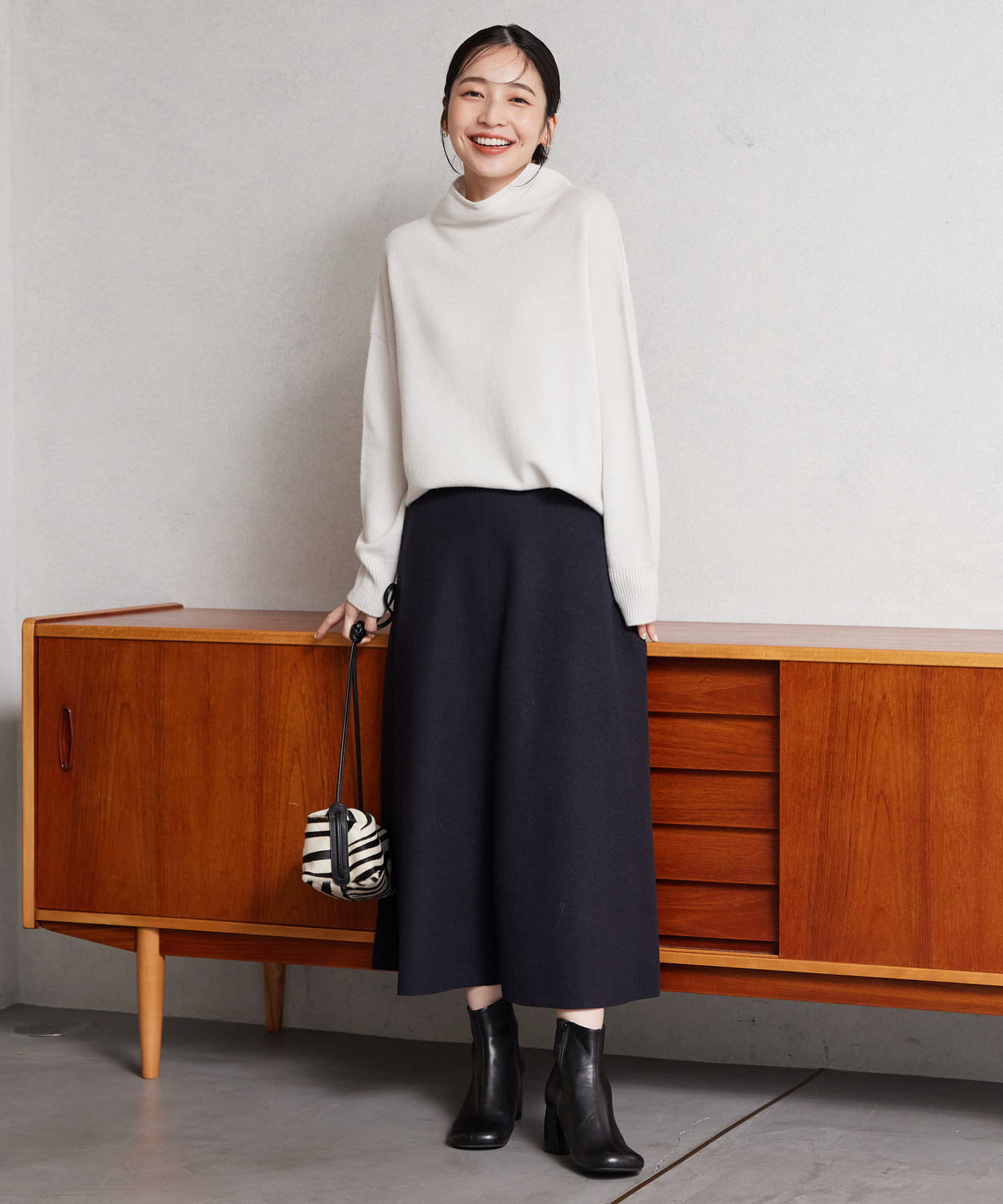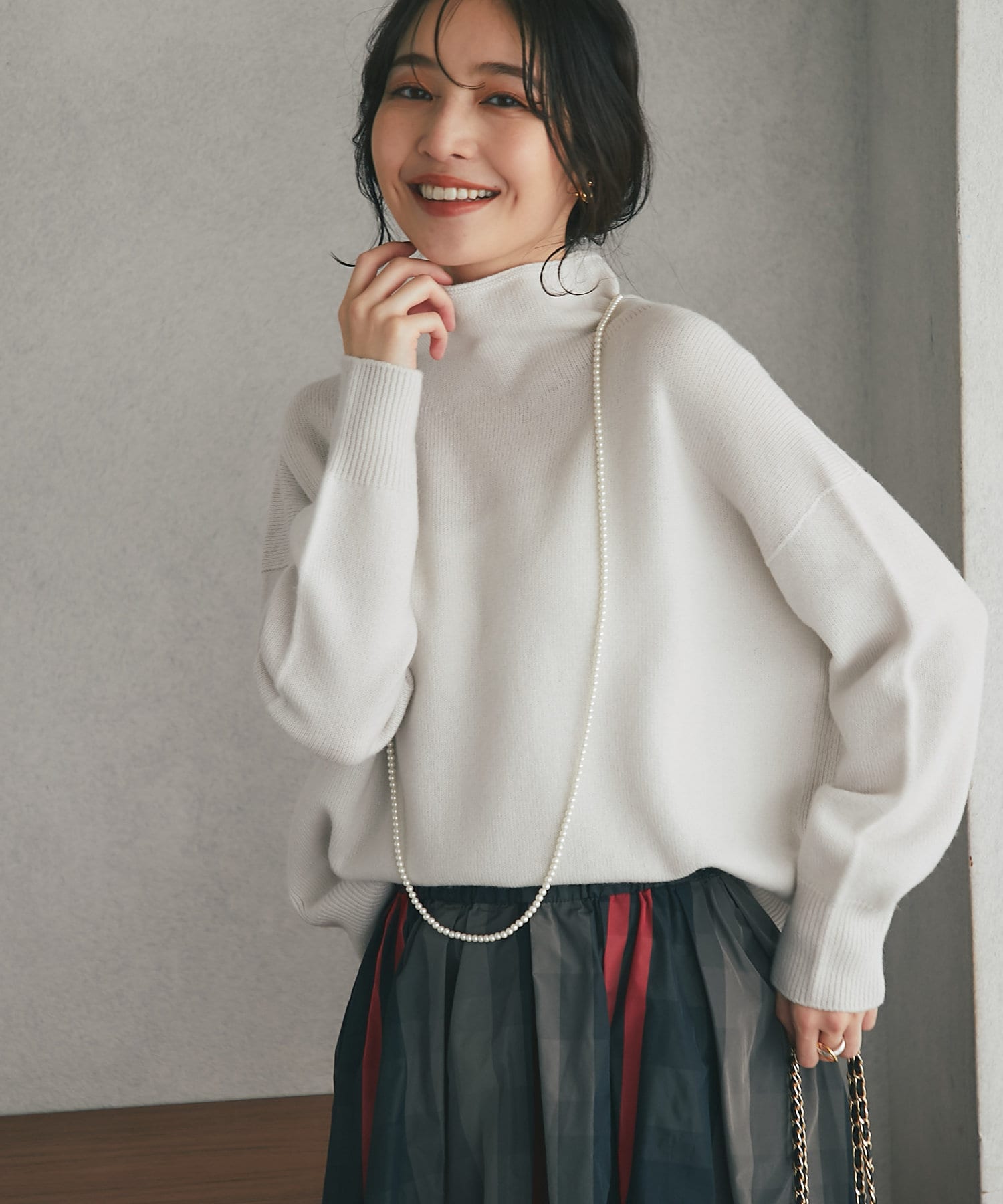 【ベストセラーアイテム・絶妙なバランスのネック丈】ウール100ボトルネックニット