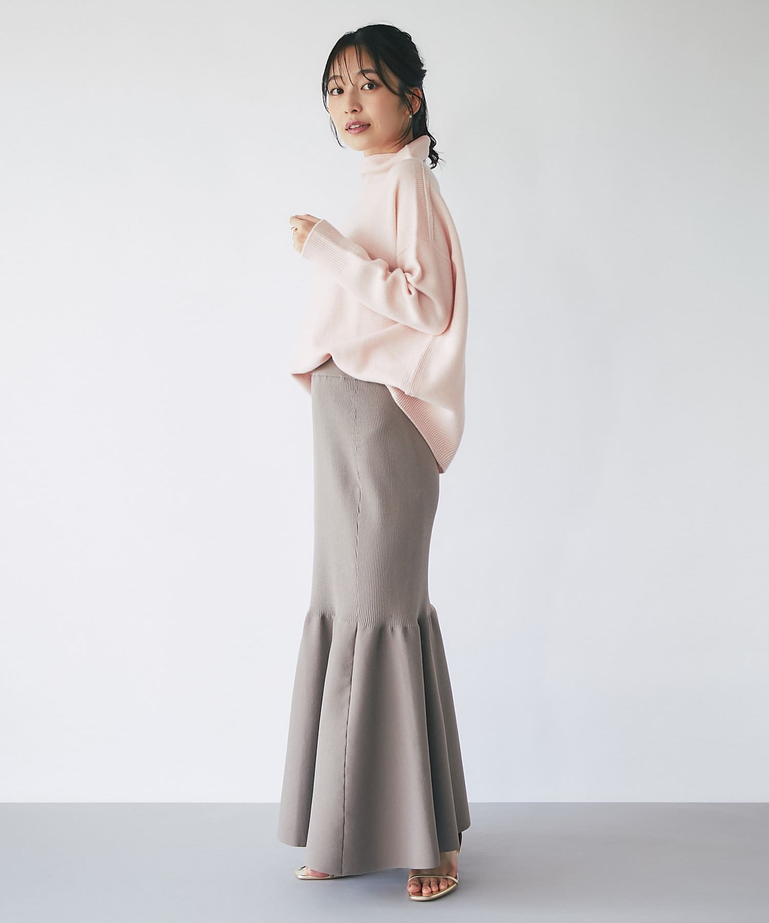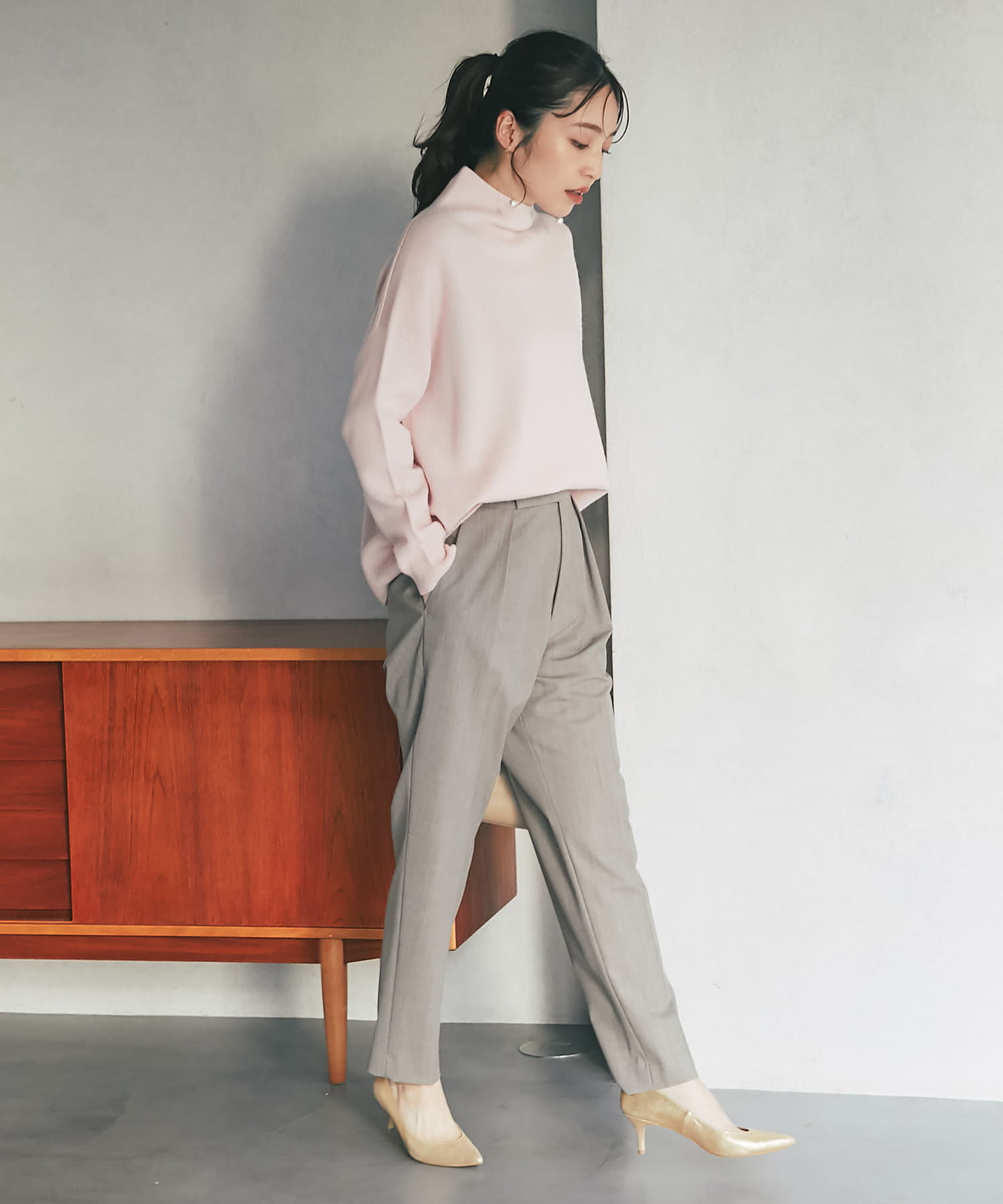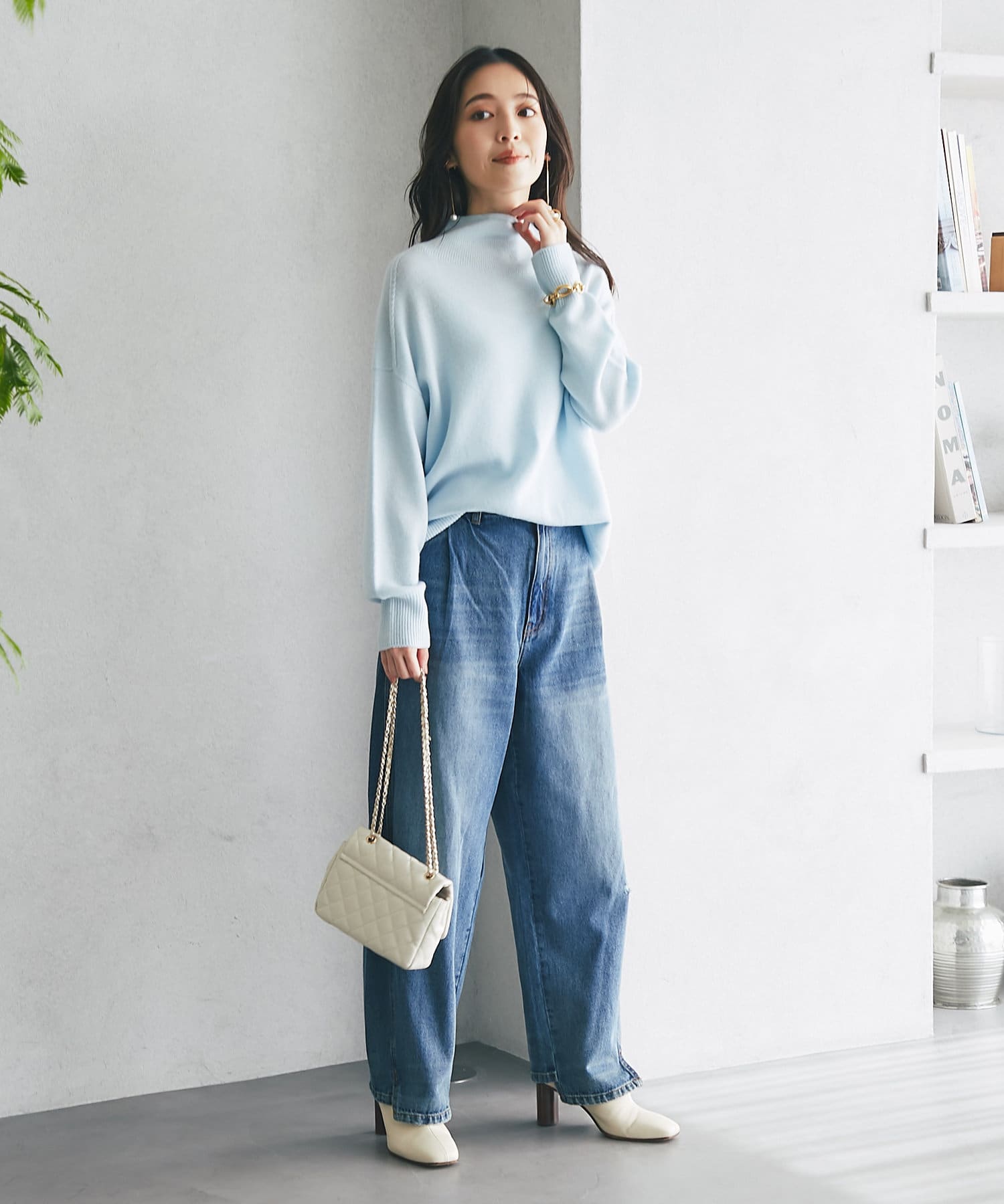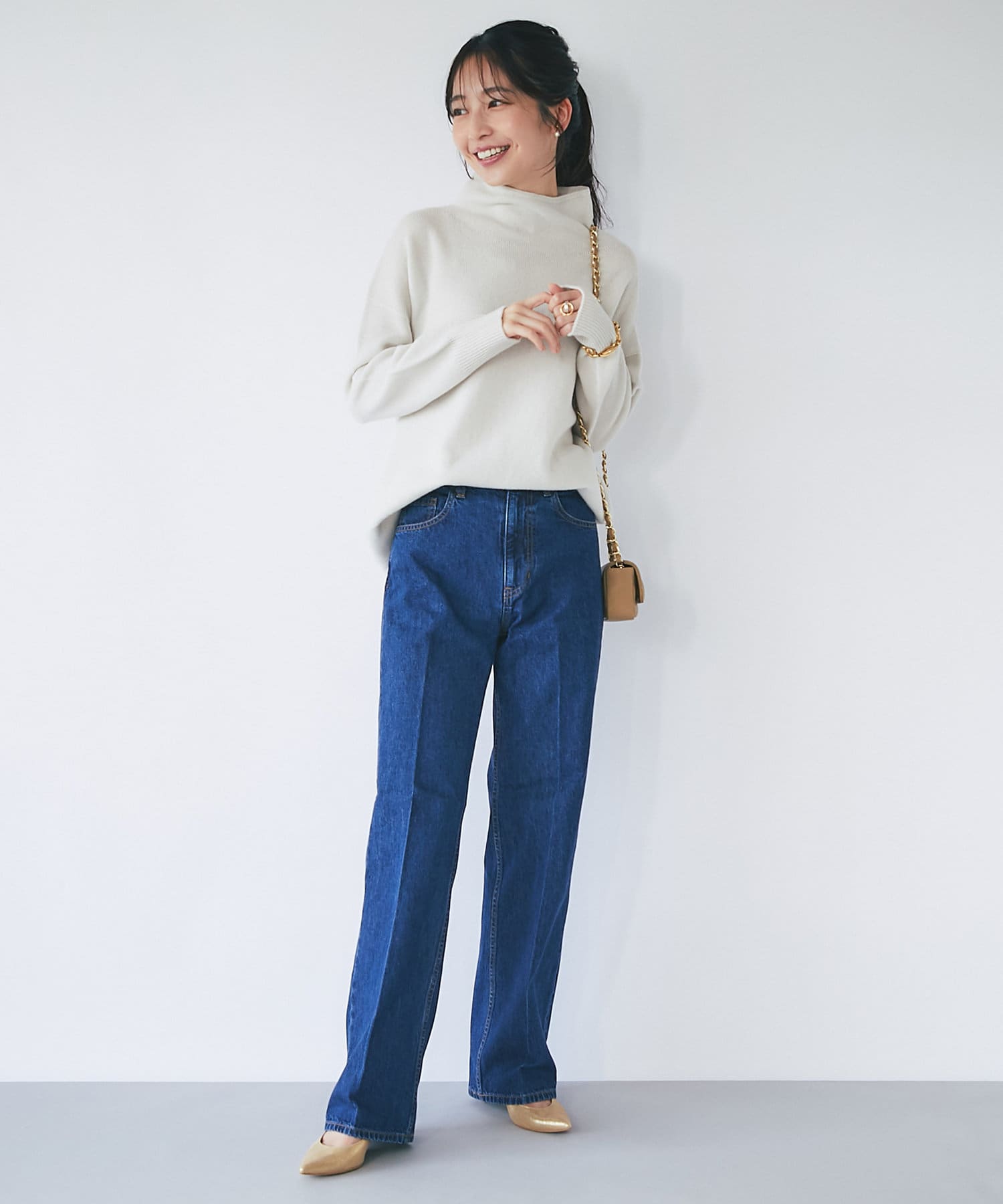 【ベストセラーアイテム・絶妙なバランスのネック丈】ウール100ボトルネックニット