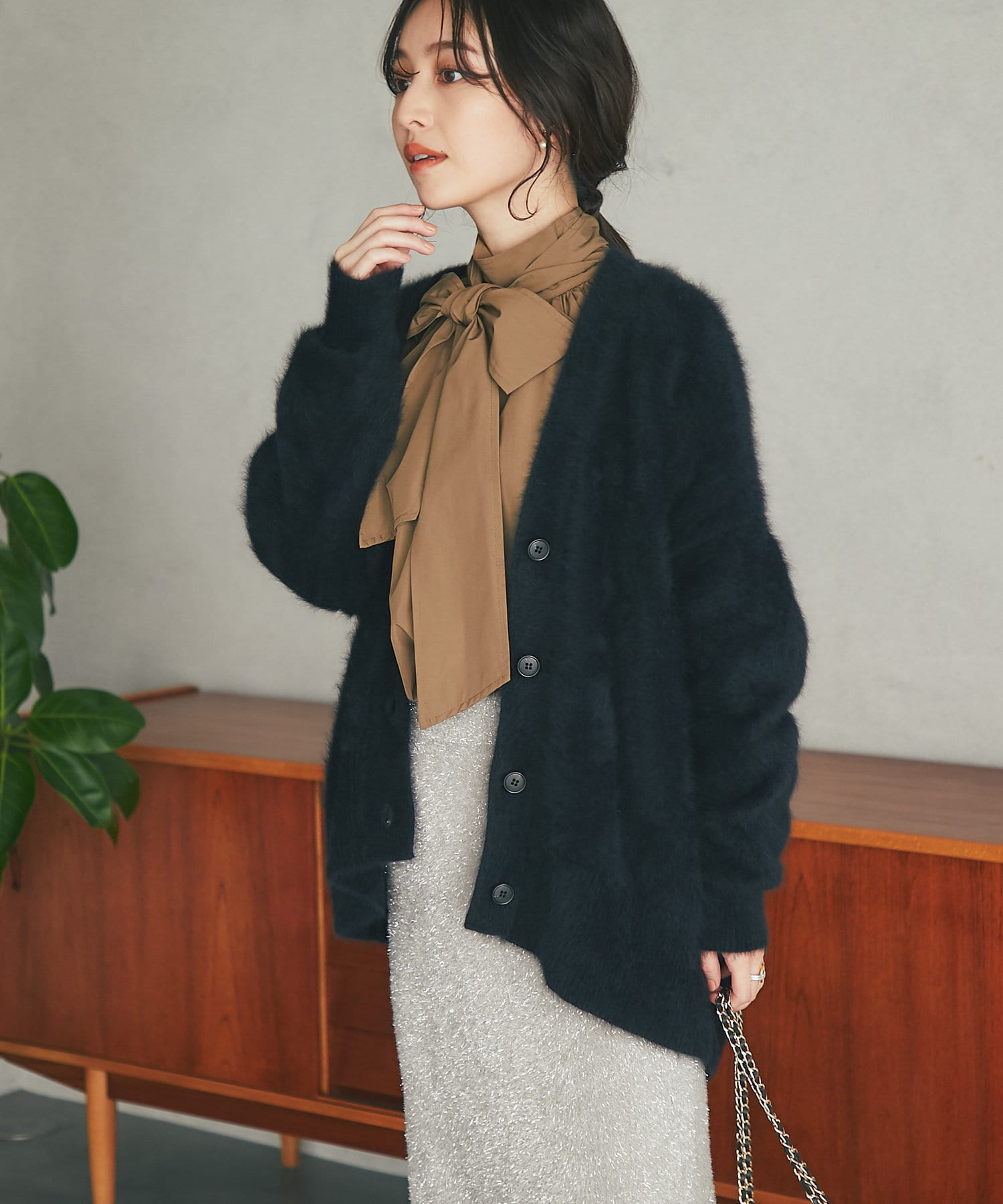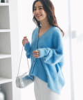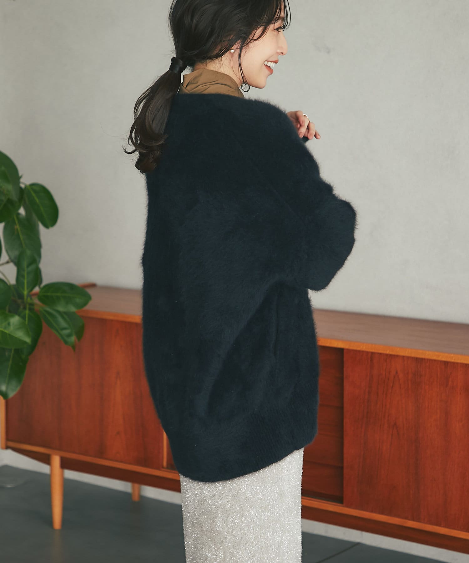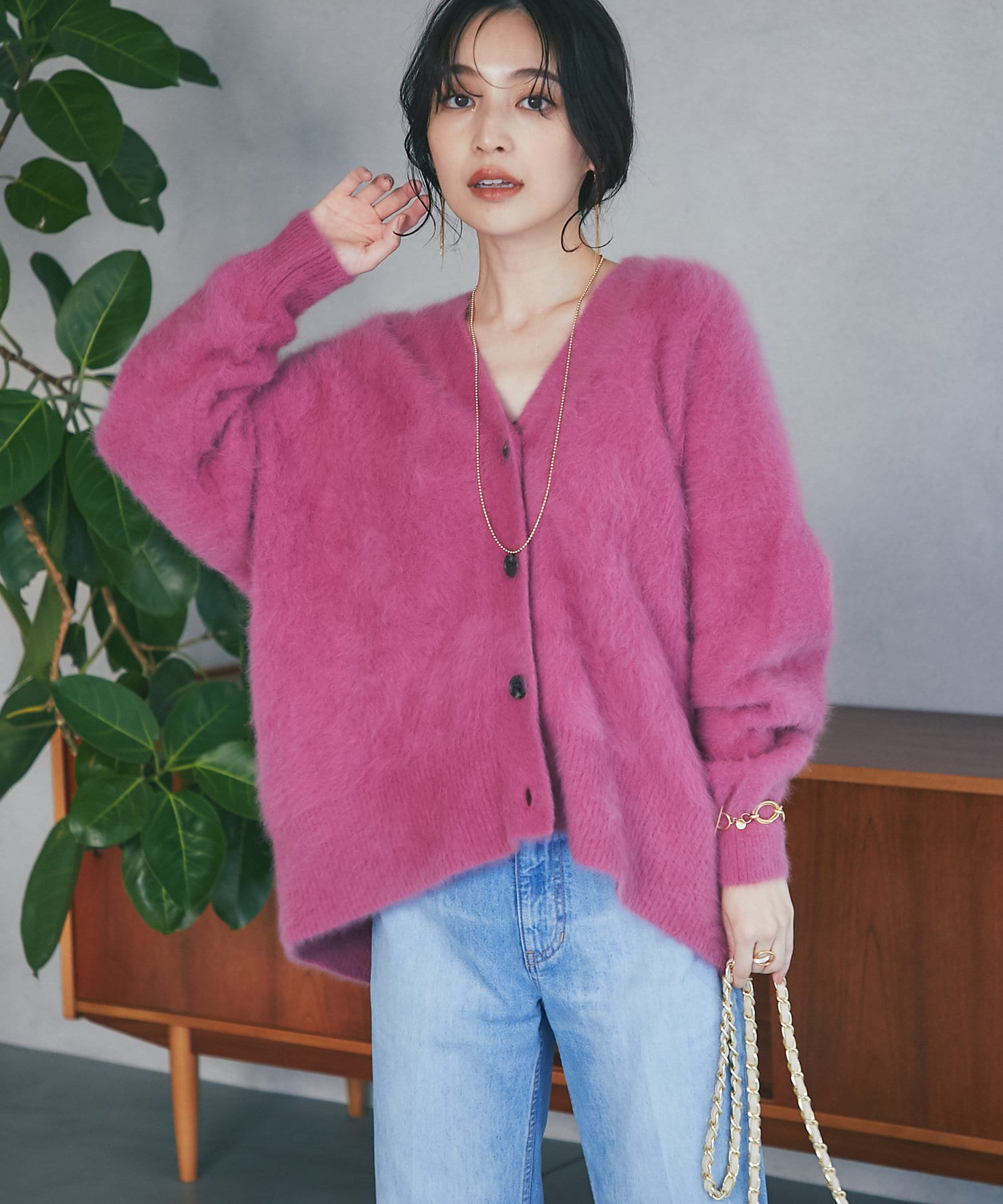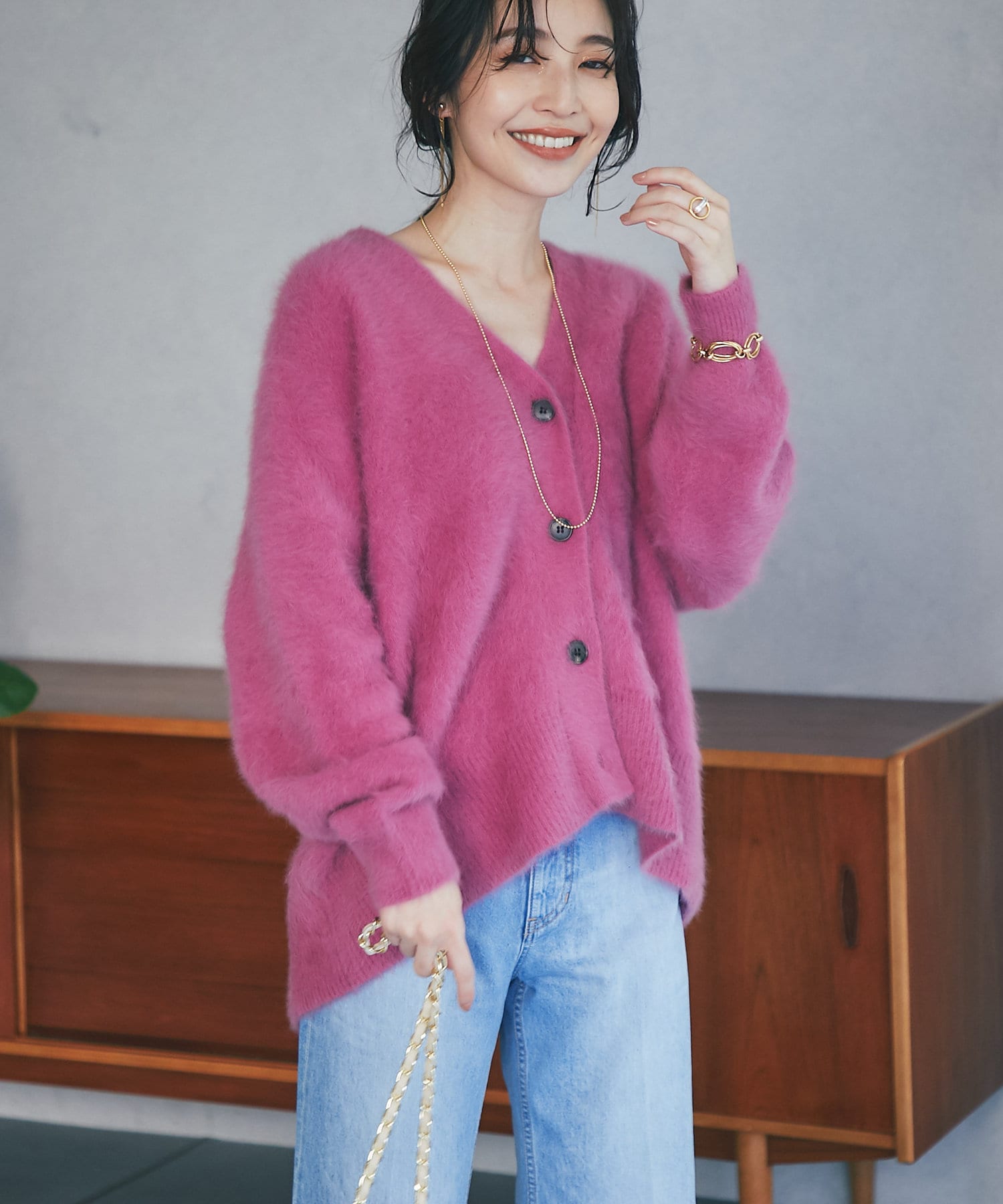 ふわふわ素材と華やかなカラーリングが印象的なニットカーディガン
