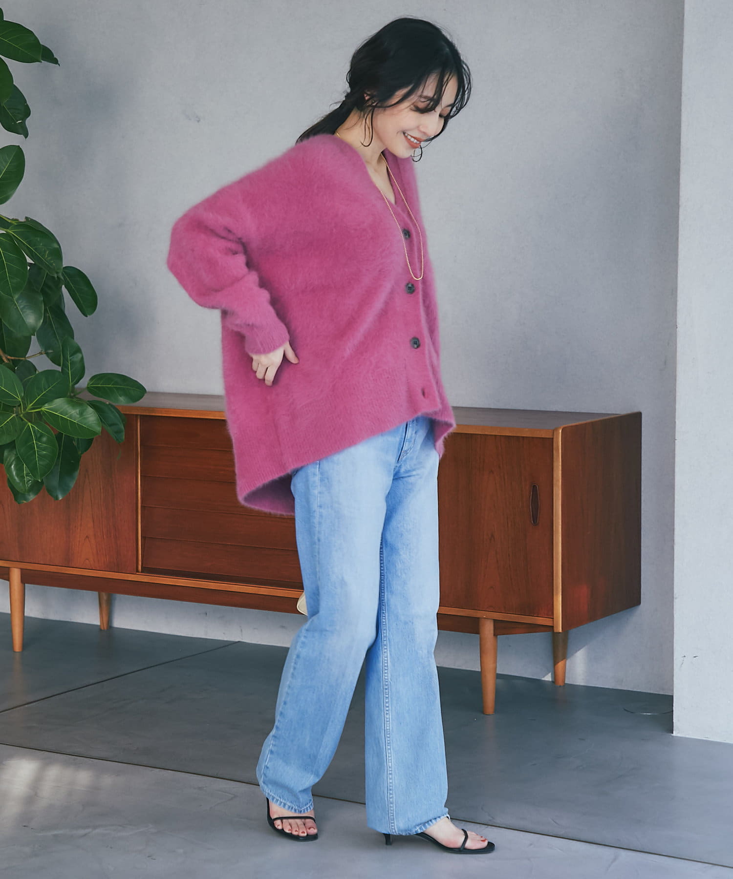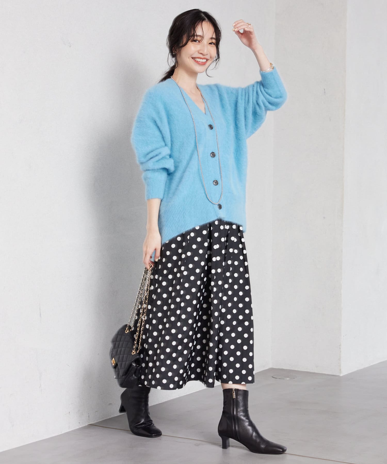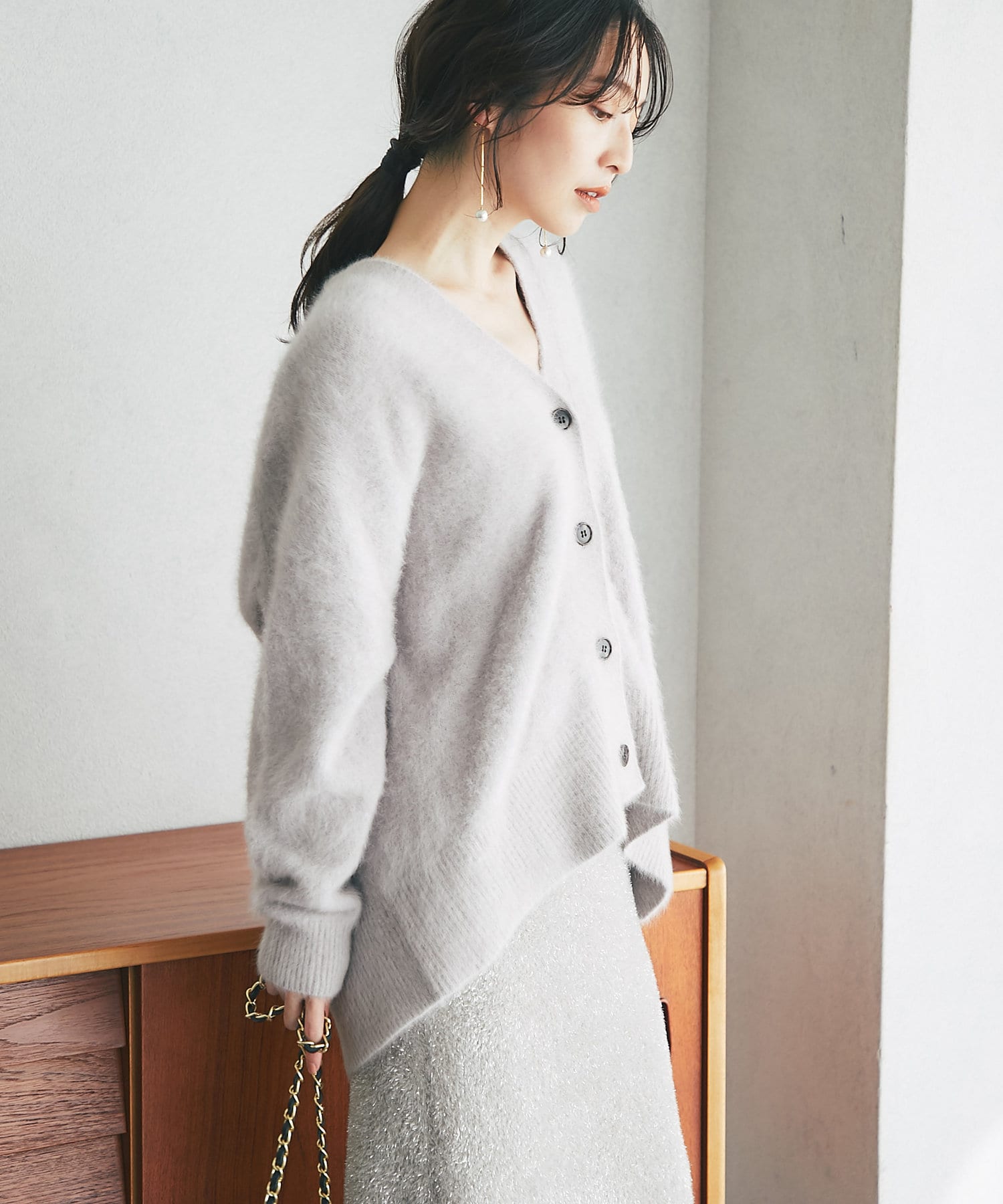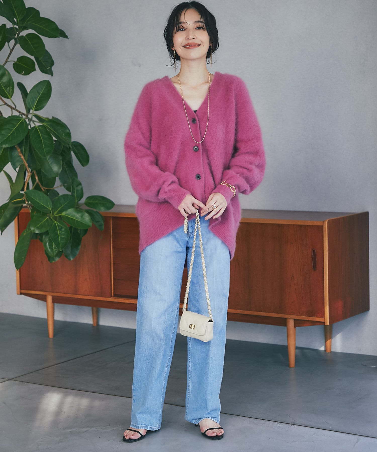 ふわふわ素材と華やかなカラーリングが印象的なニットカーディガン