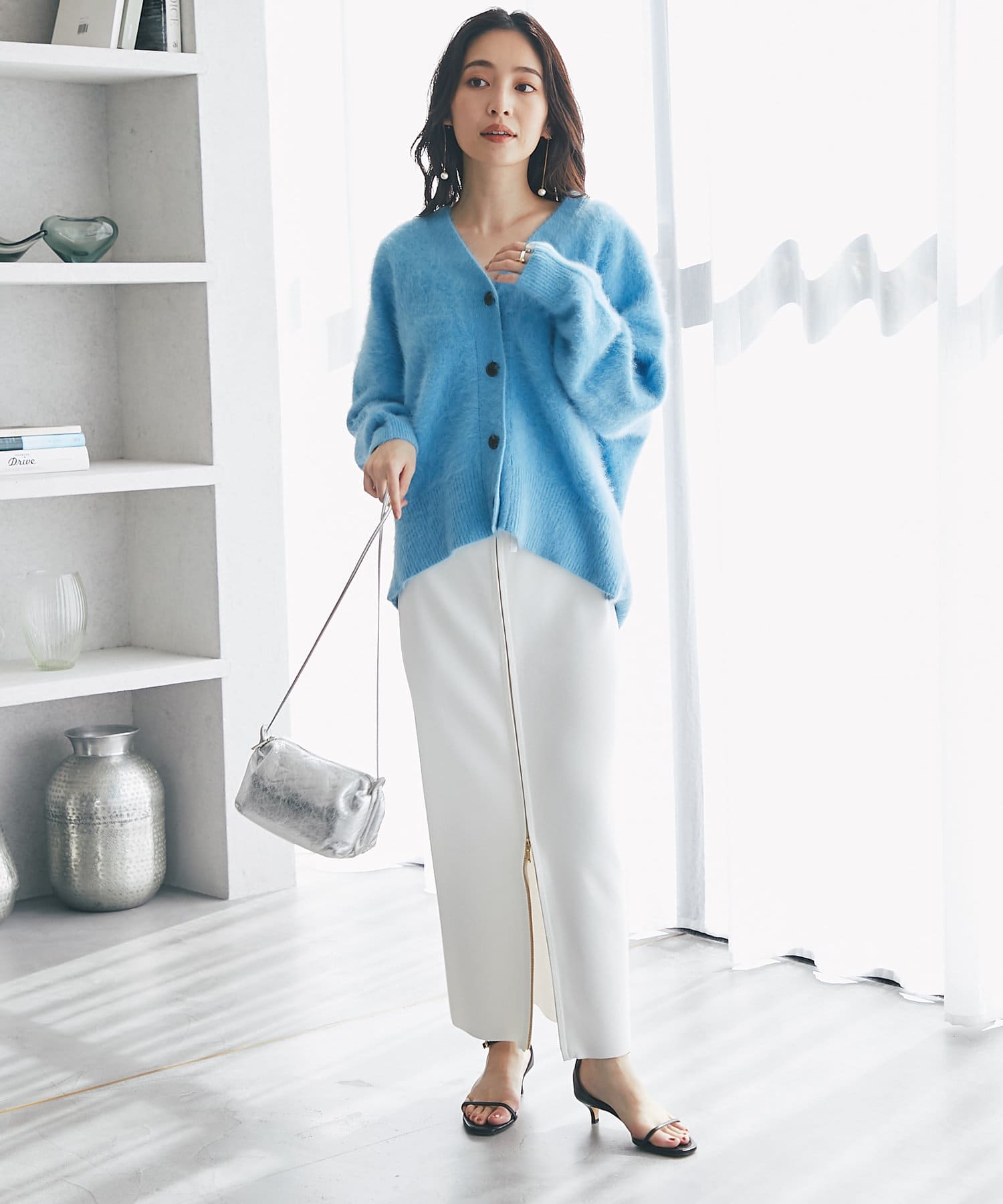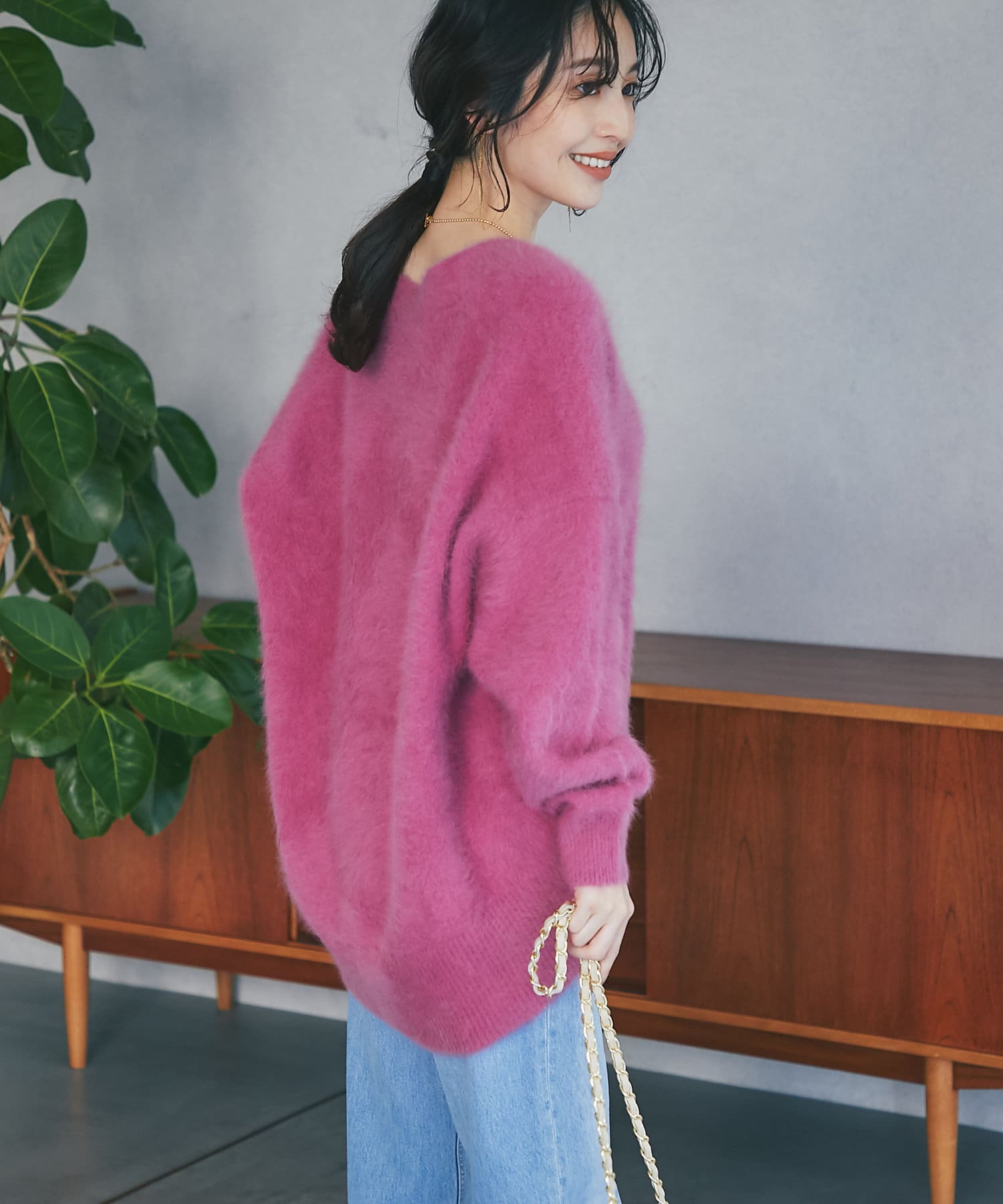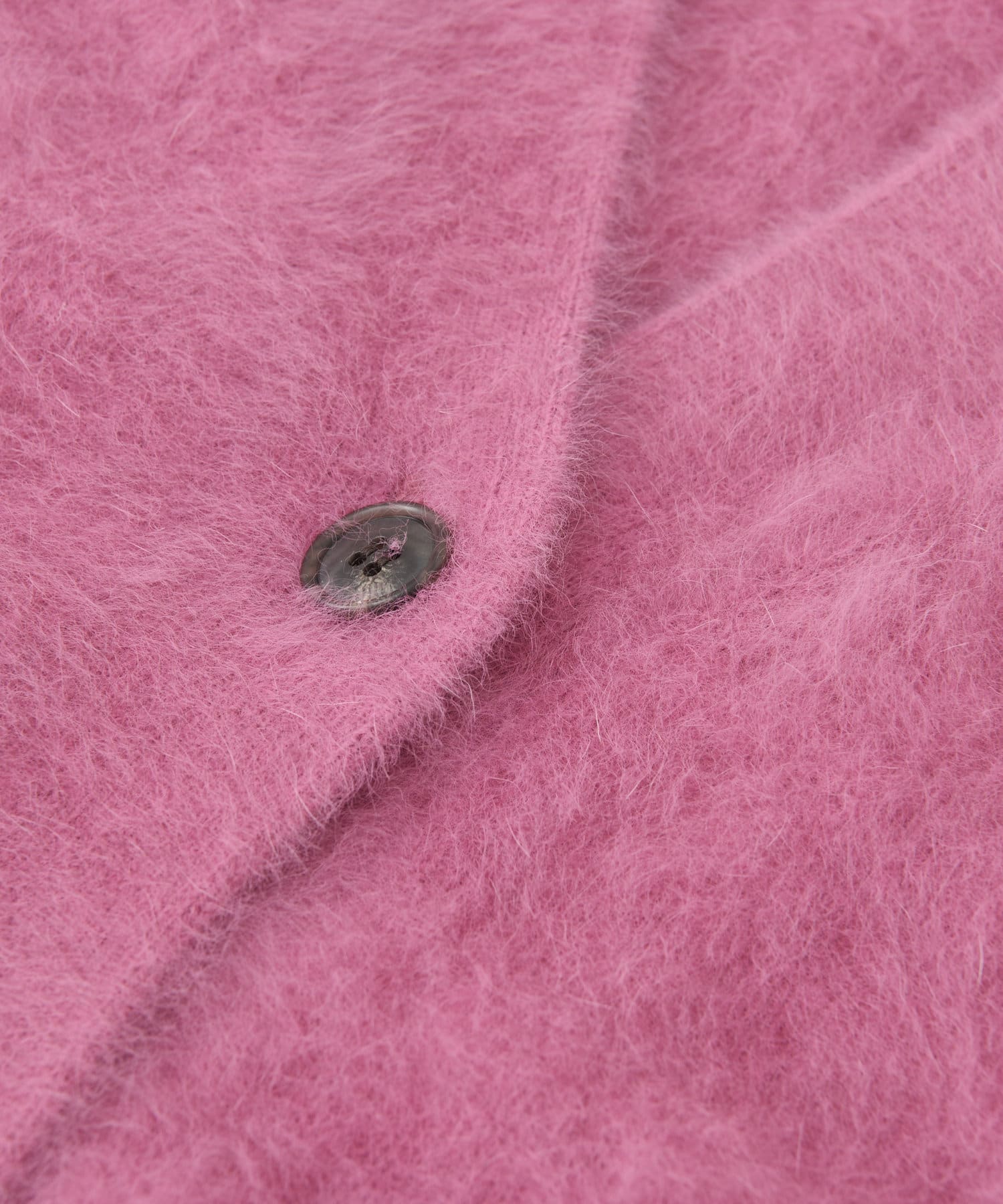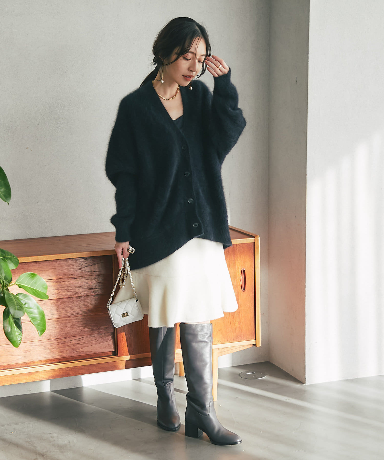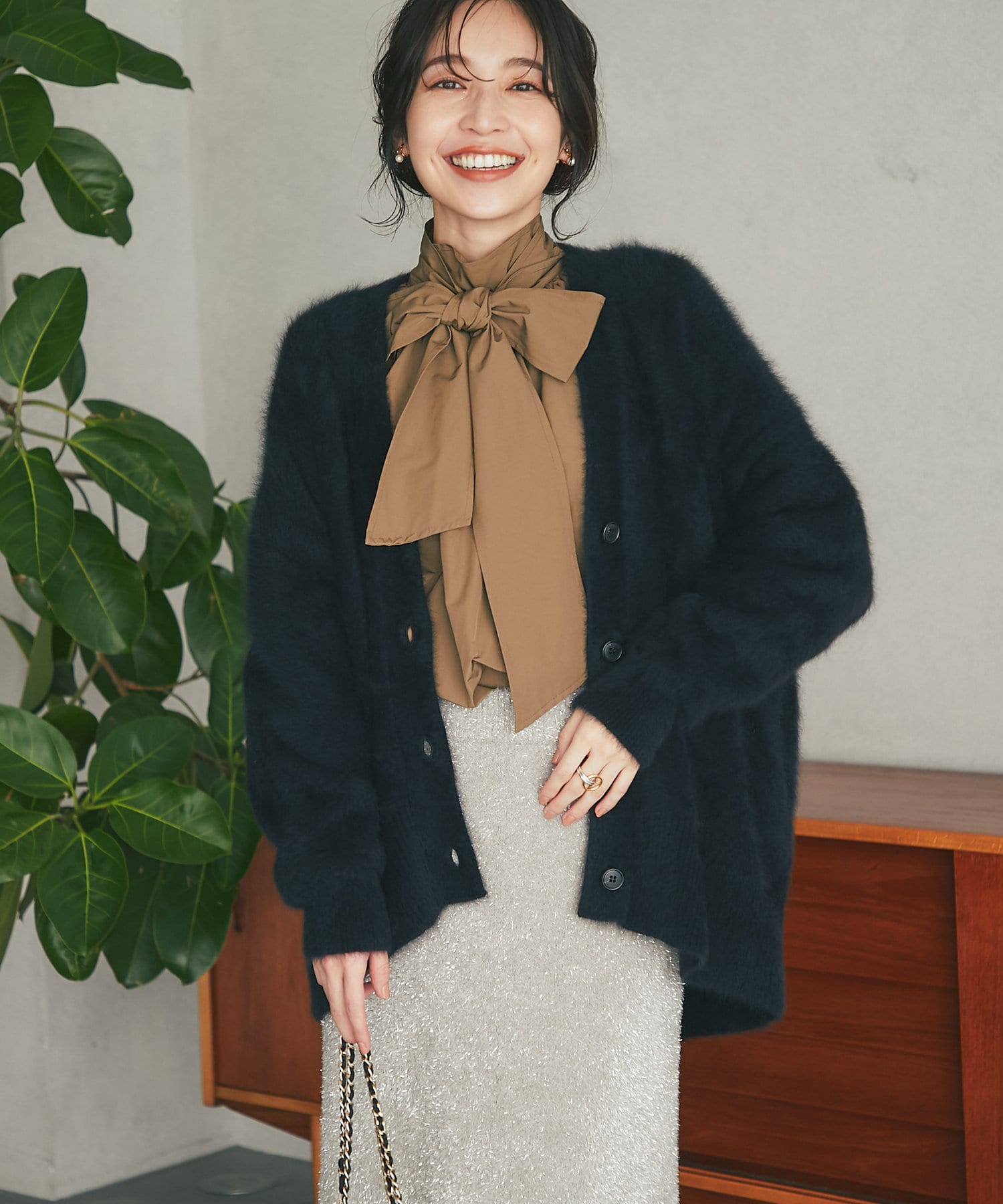 ふわふわ素材と華やかなカラーリングが印象的なニットカーディガン