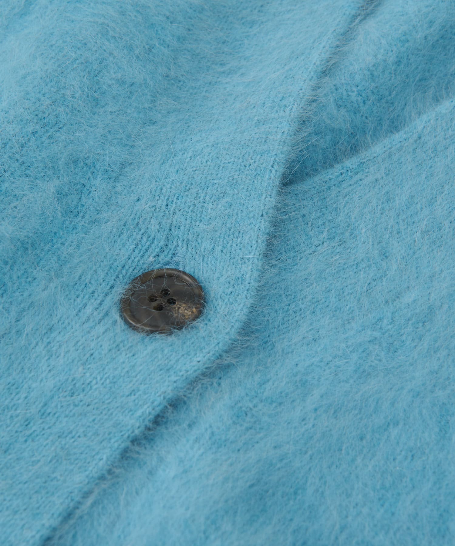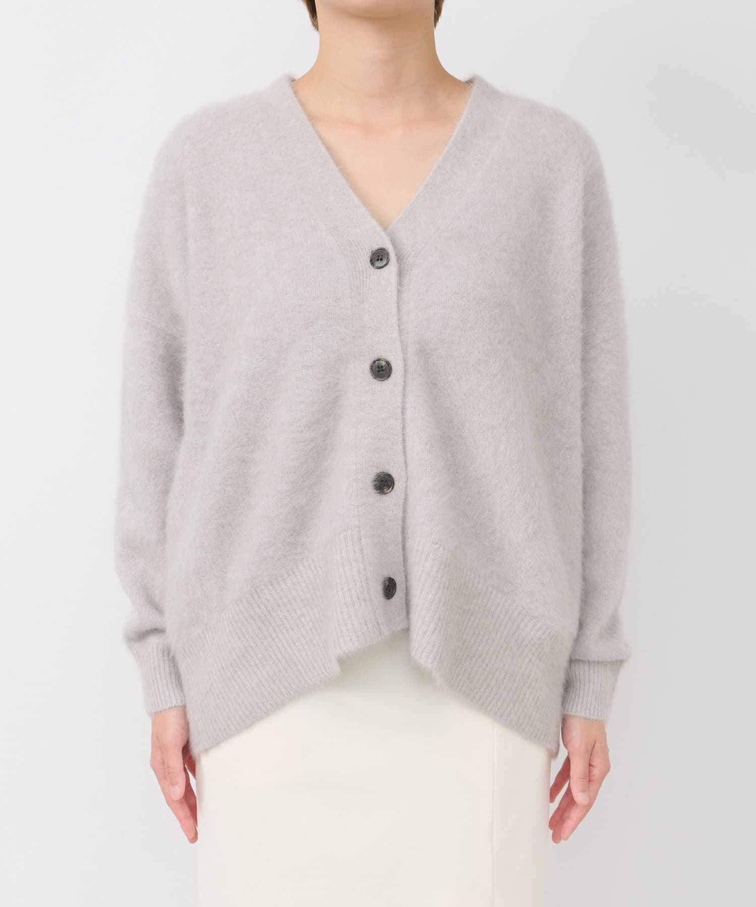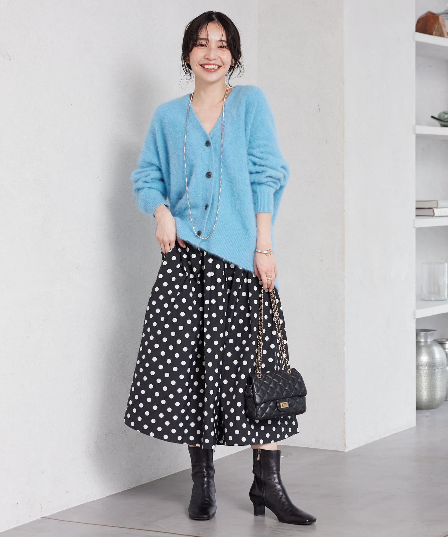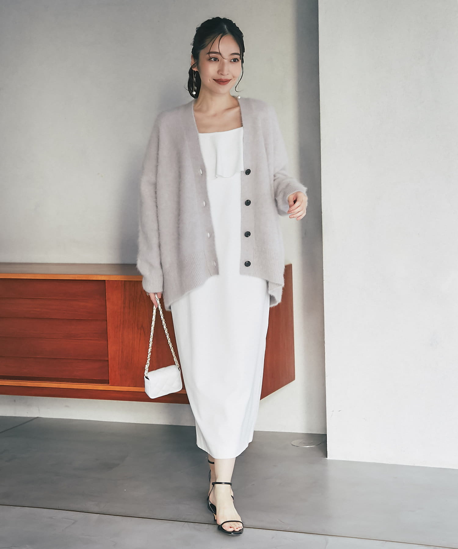 ふわふわ素材と華やかなカラーリングが印象的なニットカーディガン