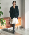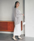 すっきりVネックデザインでデコルテもきれいに見せます。