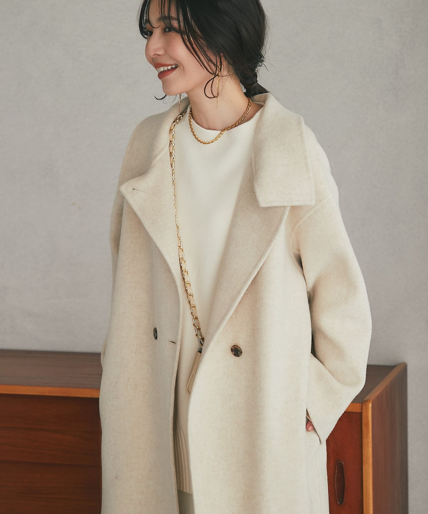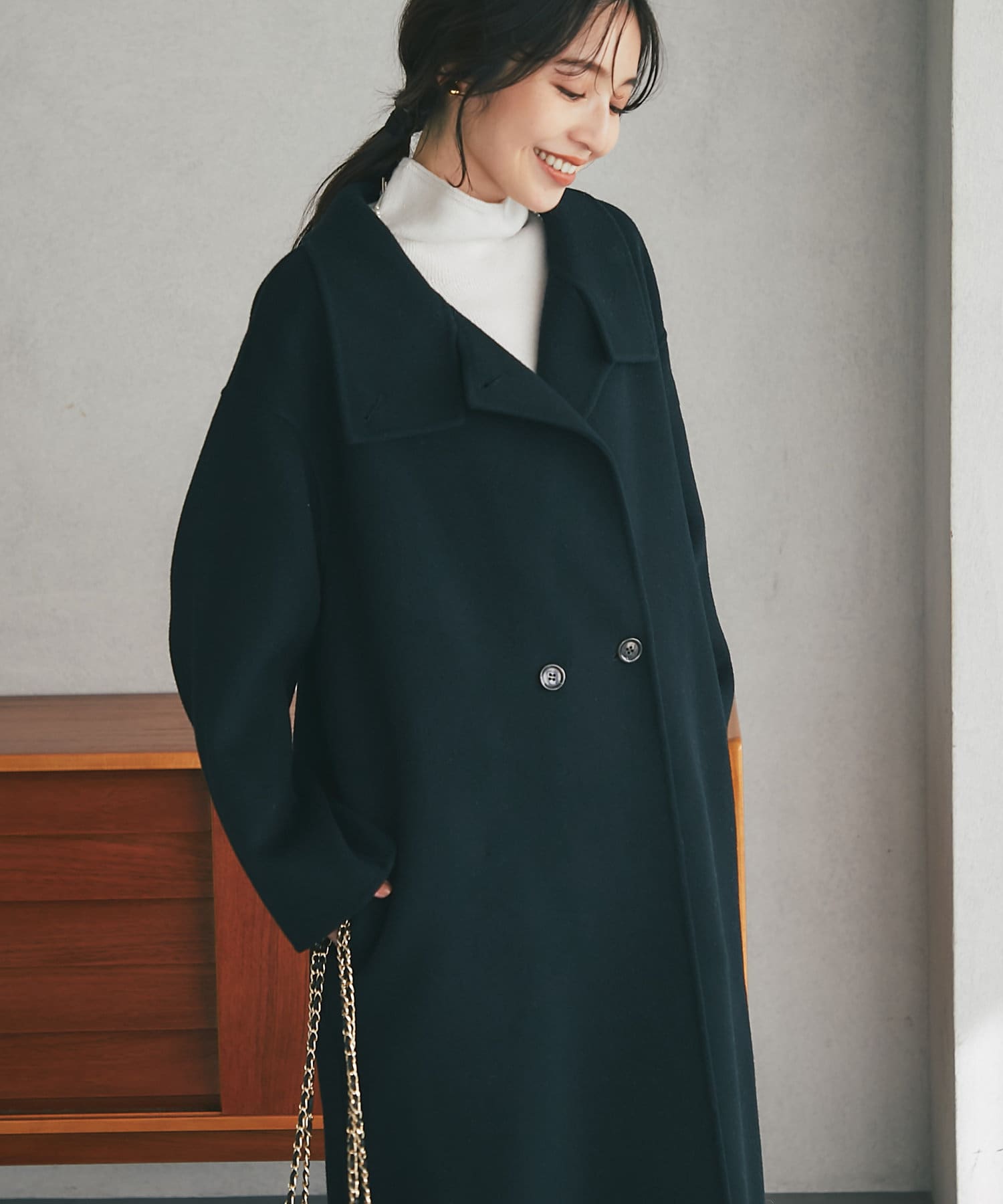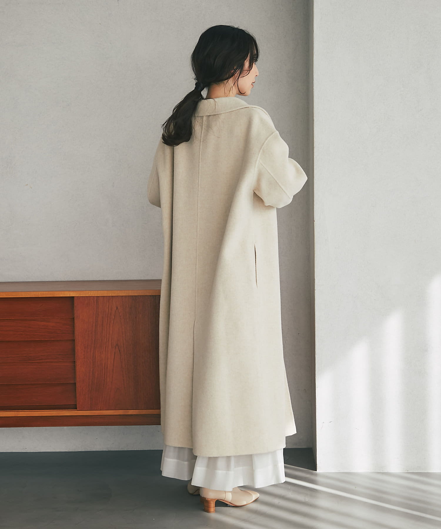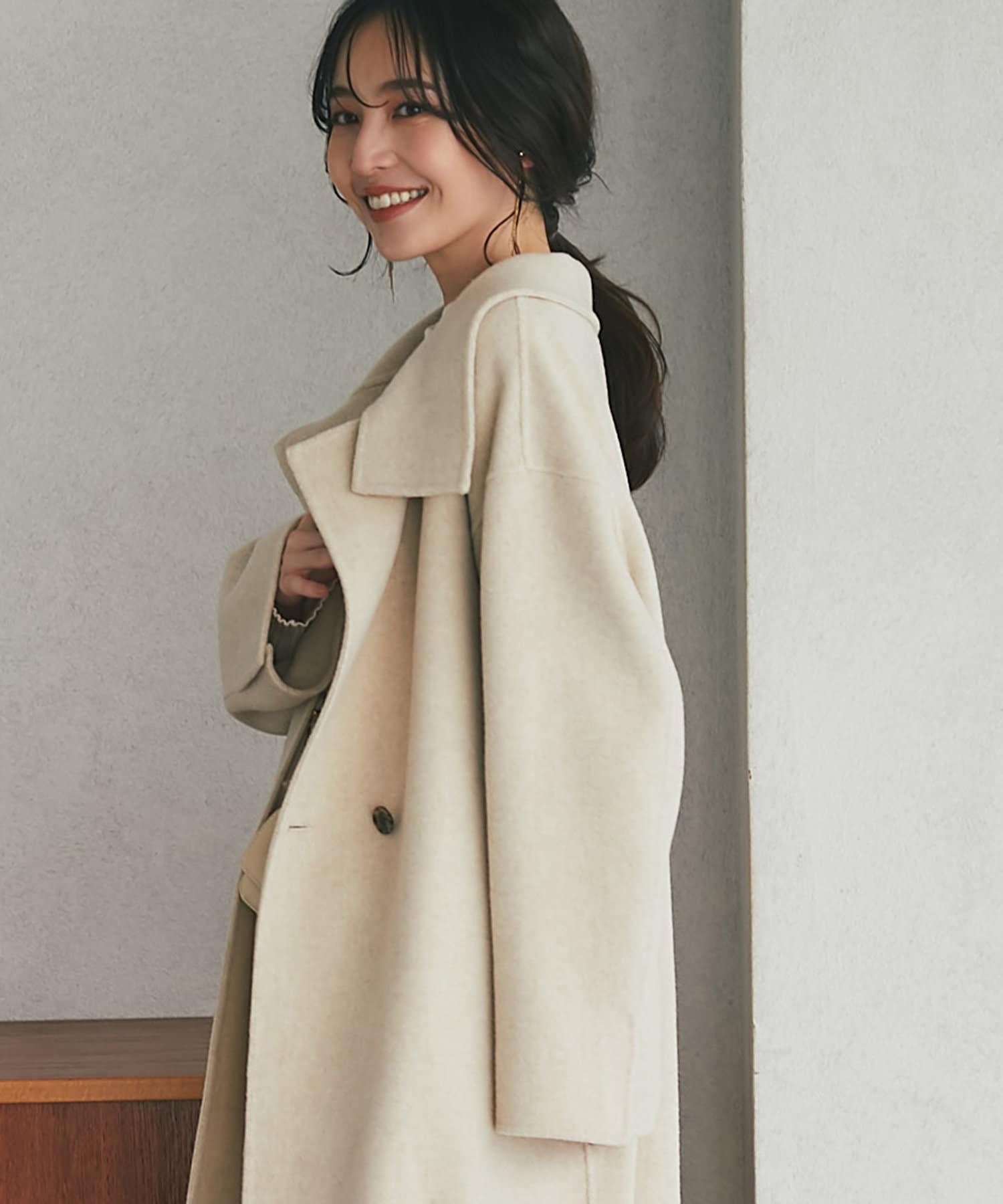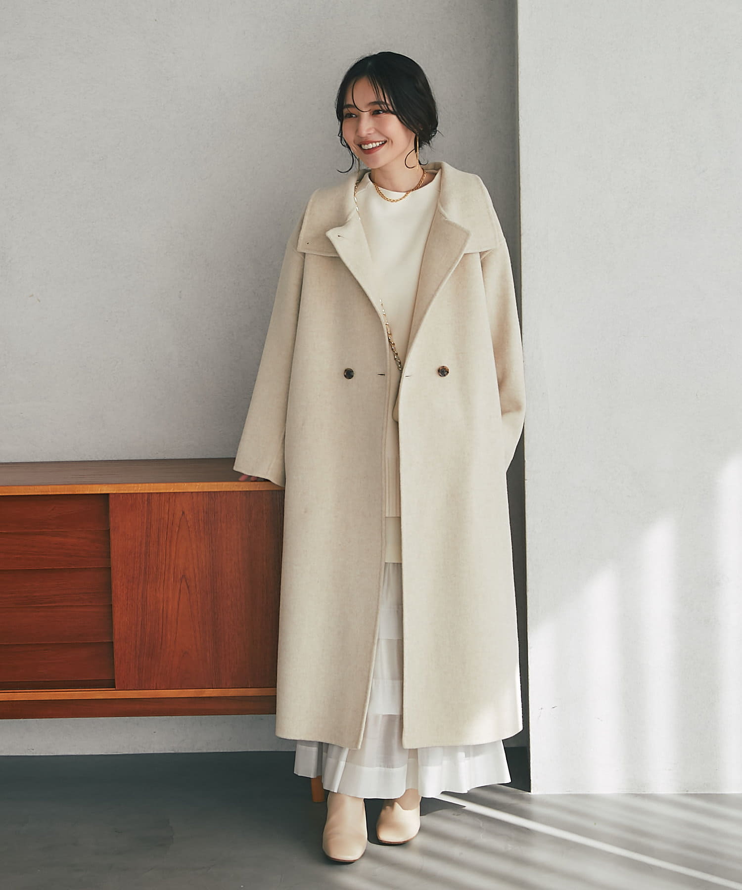 カーディガンのように気軽に羽織れる、優しい着心地のロングコート
