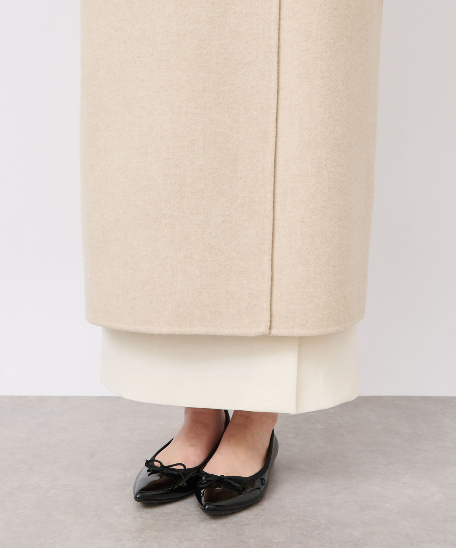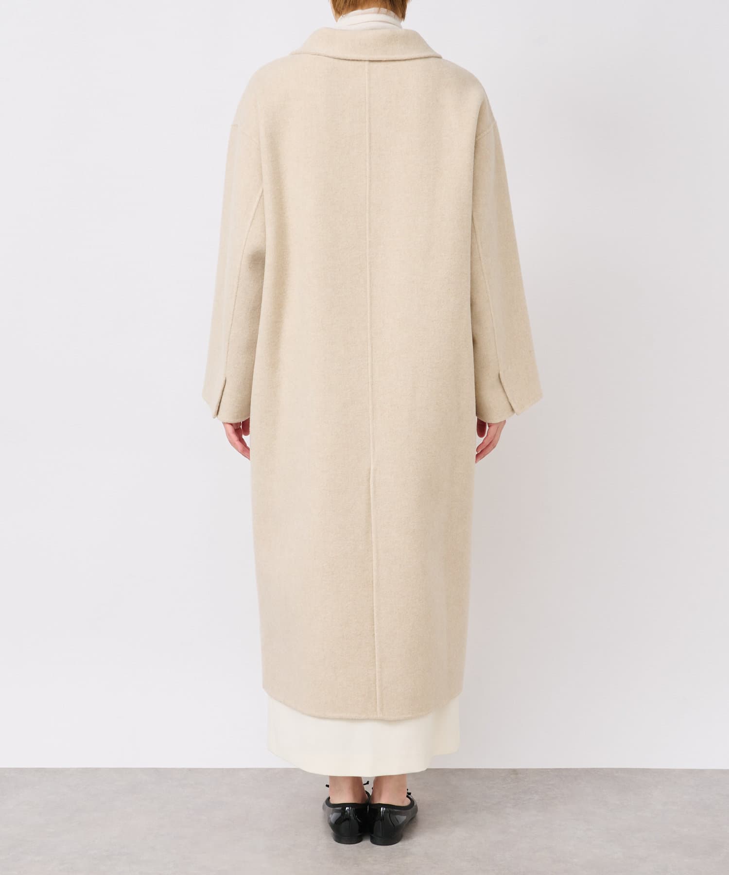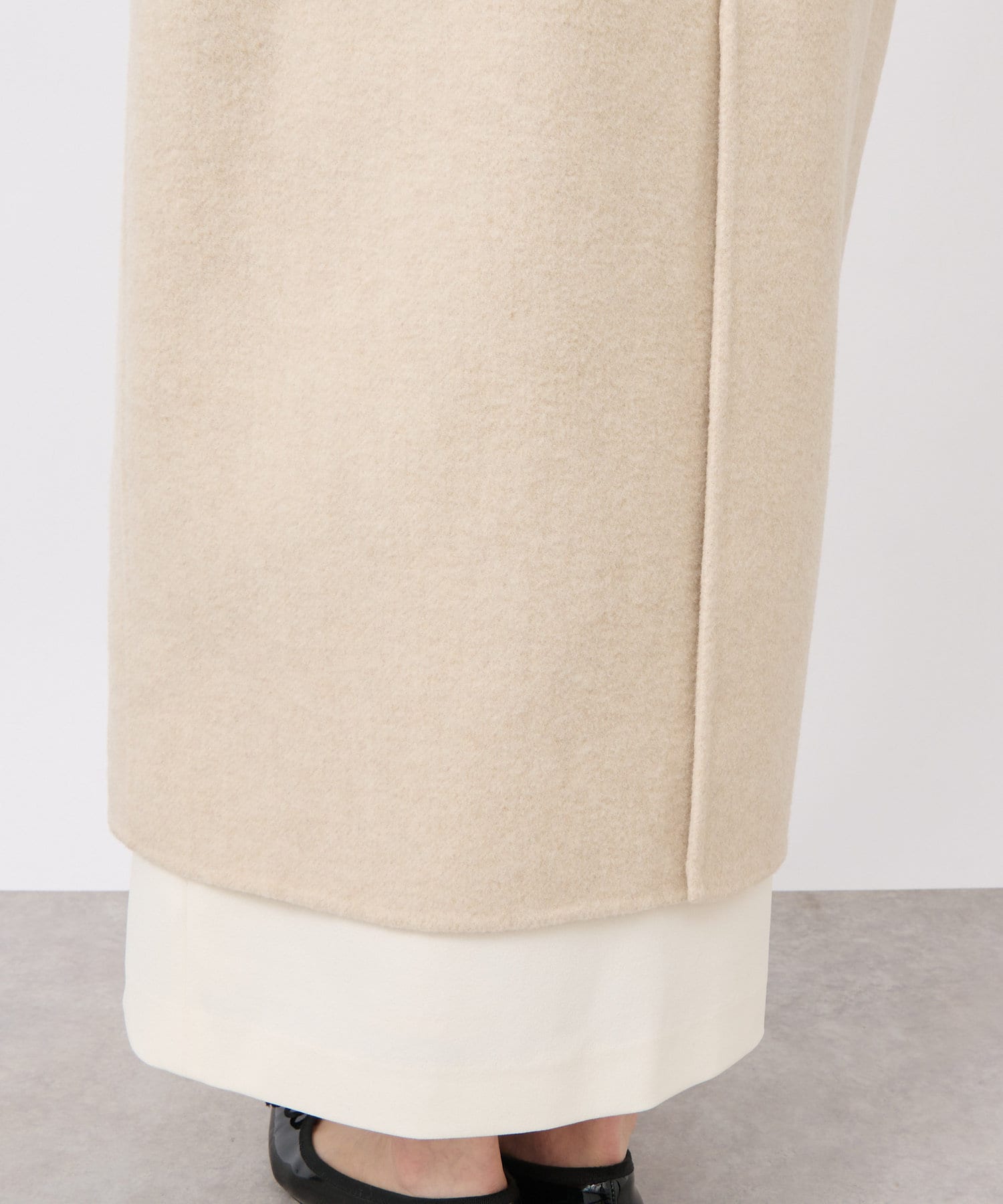 裏地がないので柔らかく、ロング丈でも軽い仕上がり。