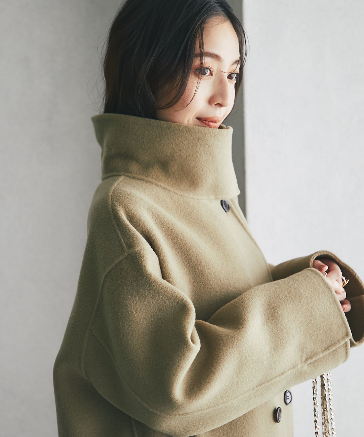 ☑トレンドのスタンドカラーも楽しめる