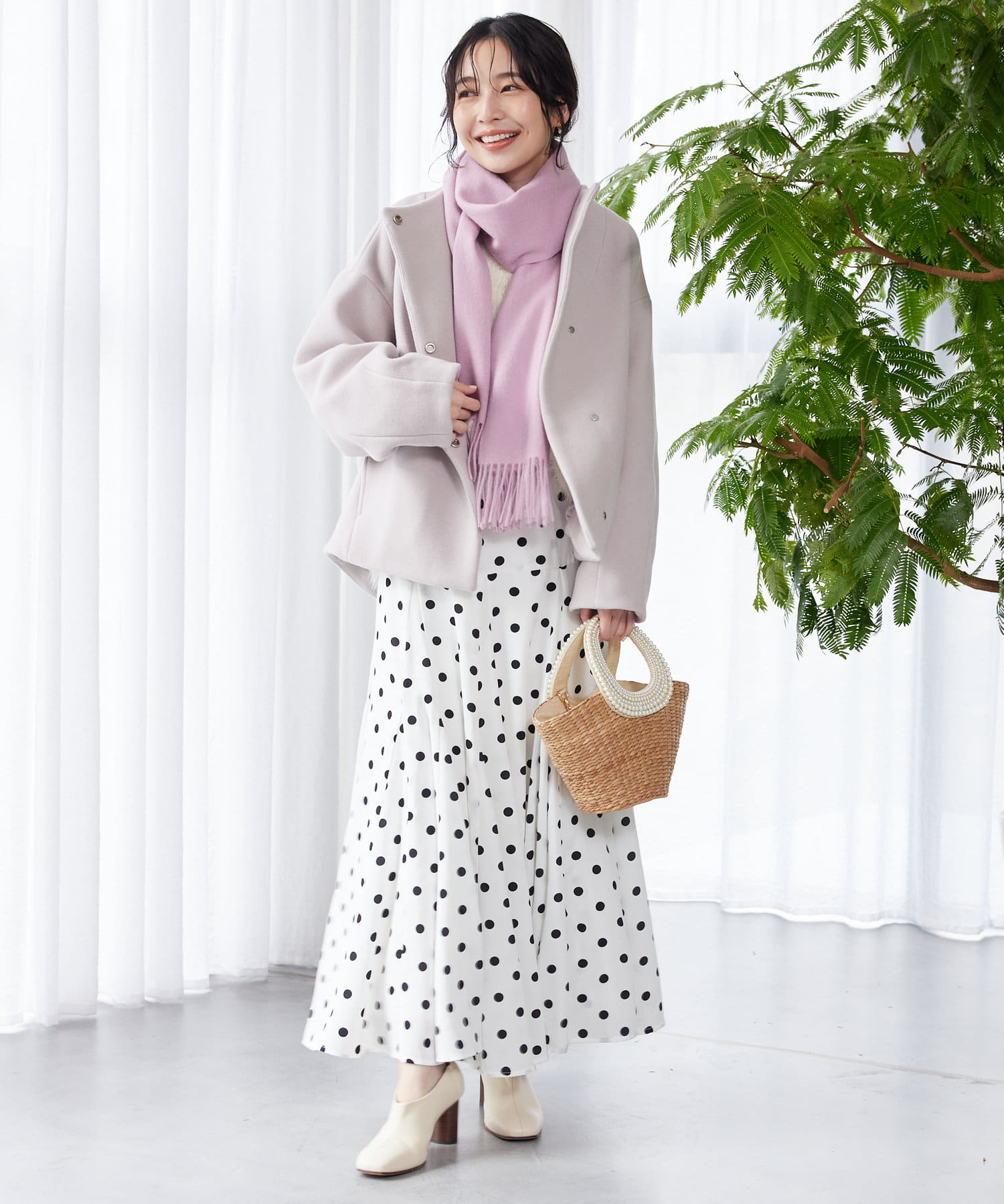 トレンドのくすみカラーで大人フェミニンに仕上げました。