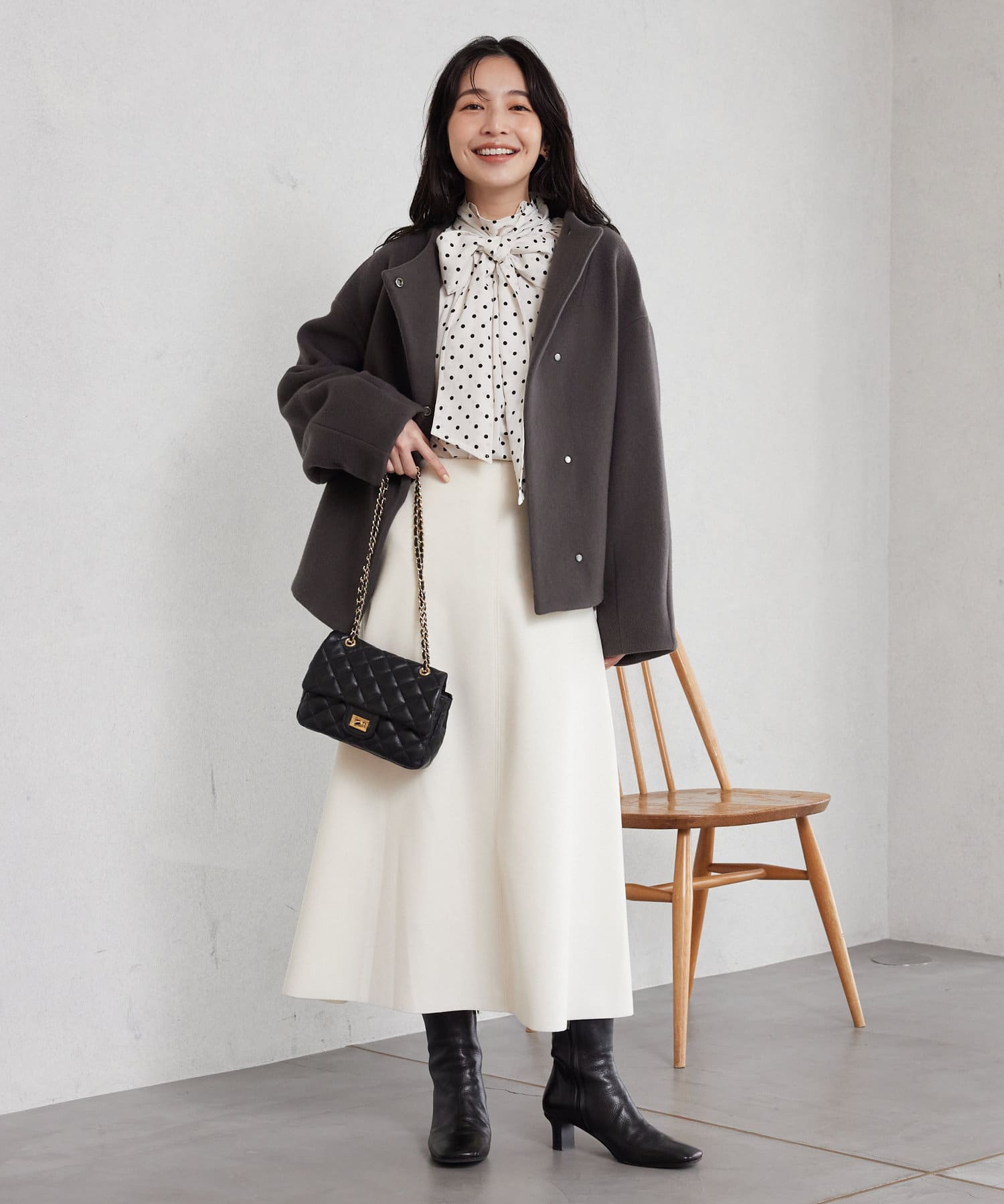 コンパクトなミドル丈ですがヒップ周りはさりげなくカバー。