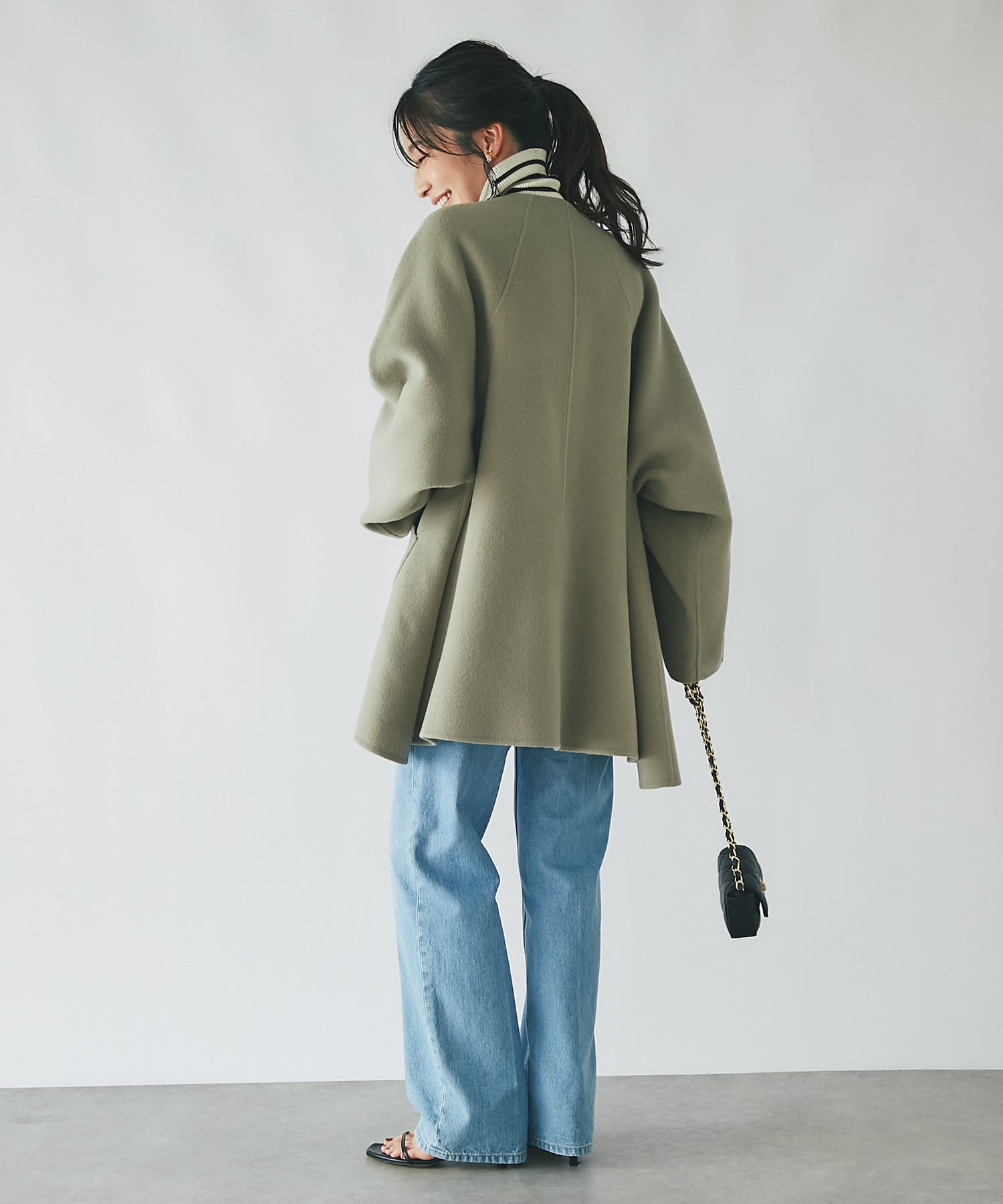 【ぽわんとシルエットが可愛い】ライトラグランフレアコート