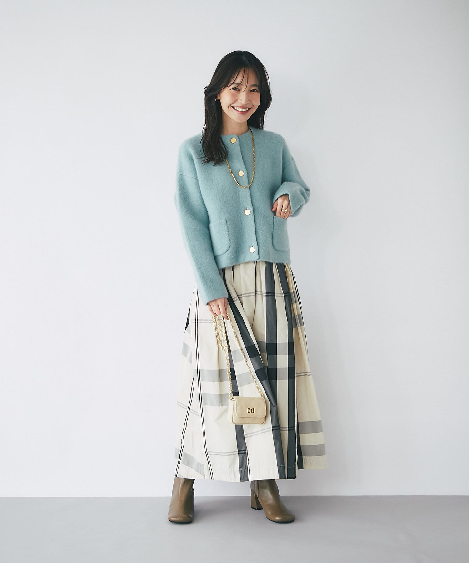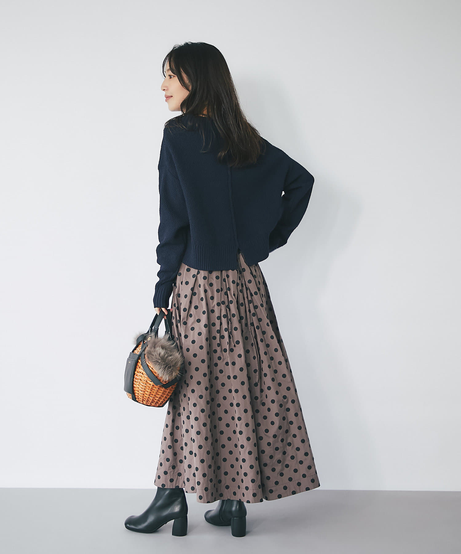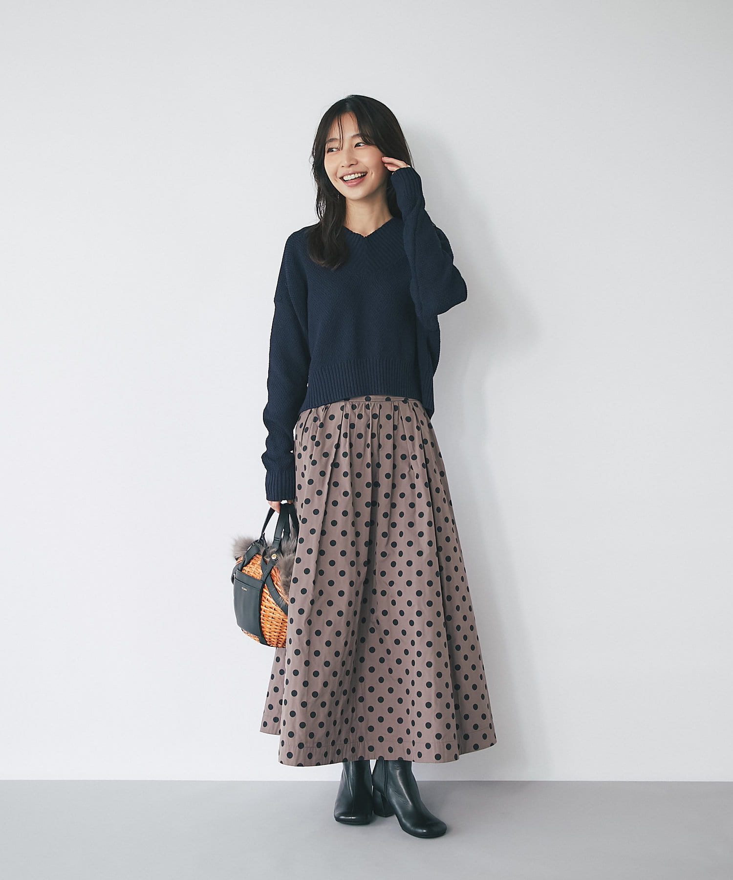人気のチェックスカートやドットジャガードのスカートなど相性抜群。