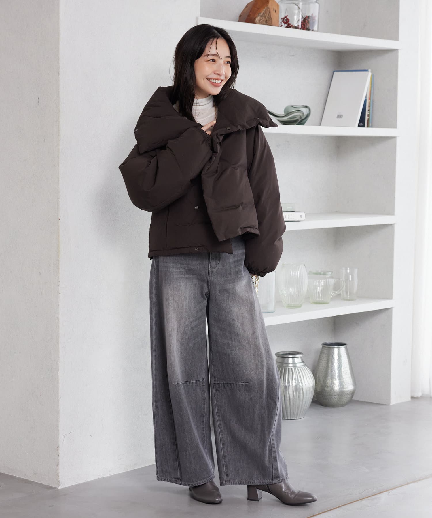 スタンドカラーダウンコート