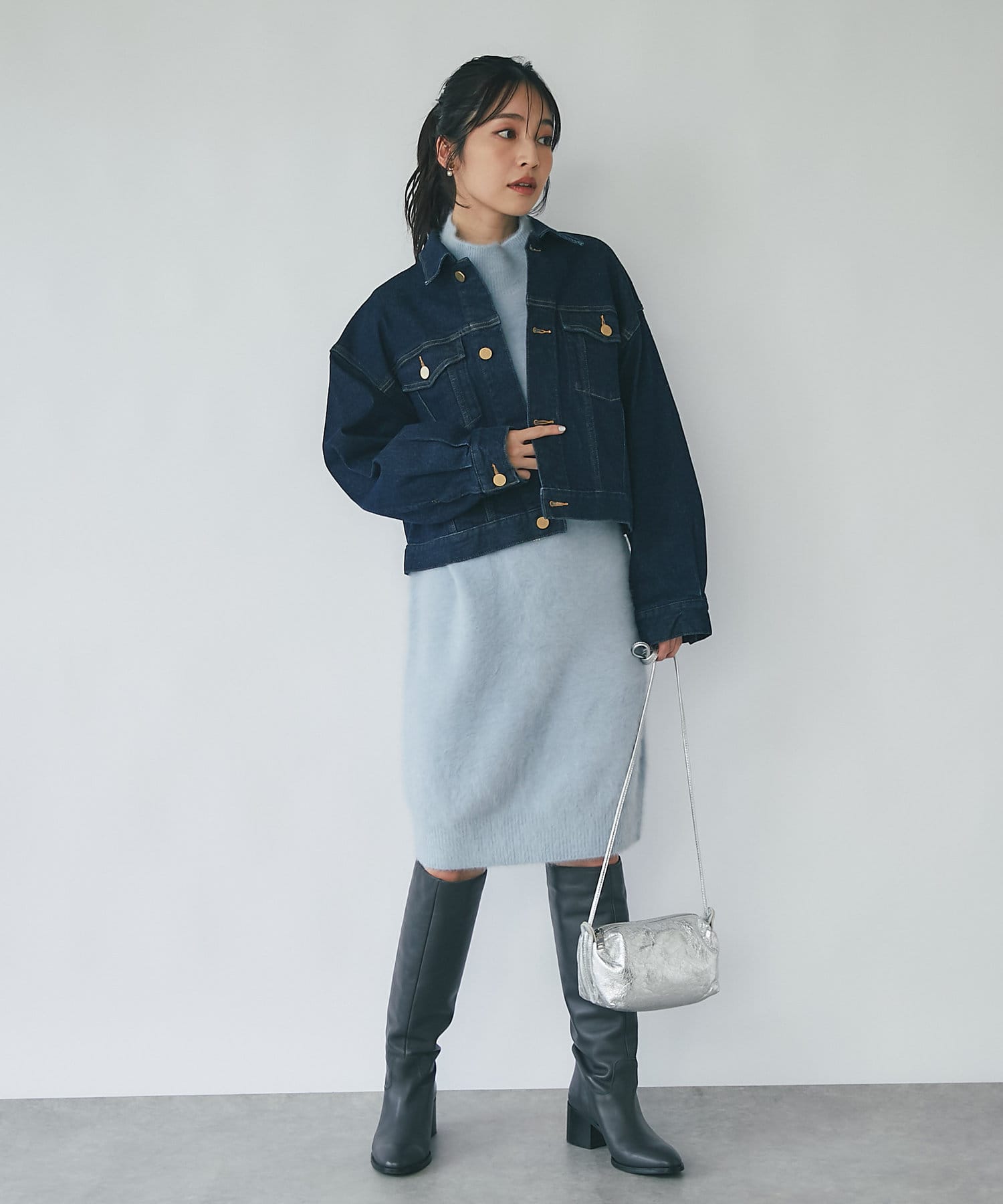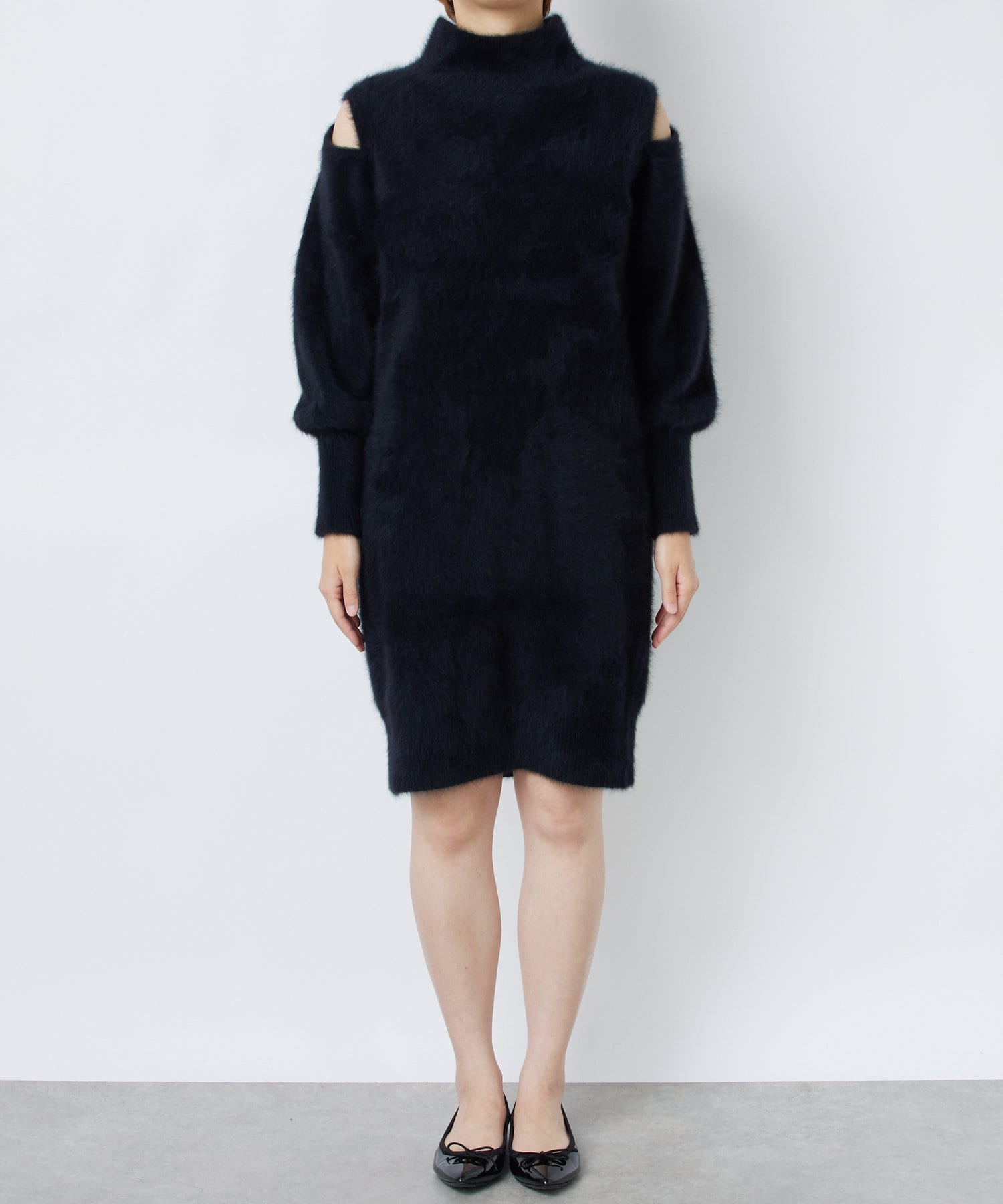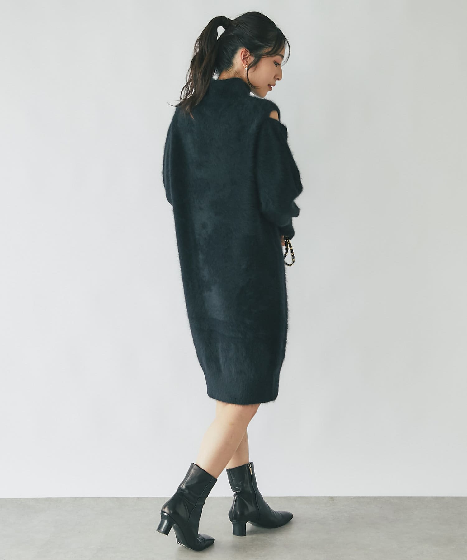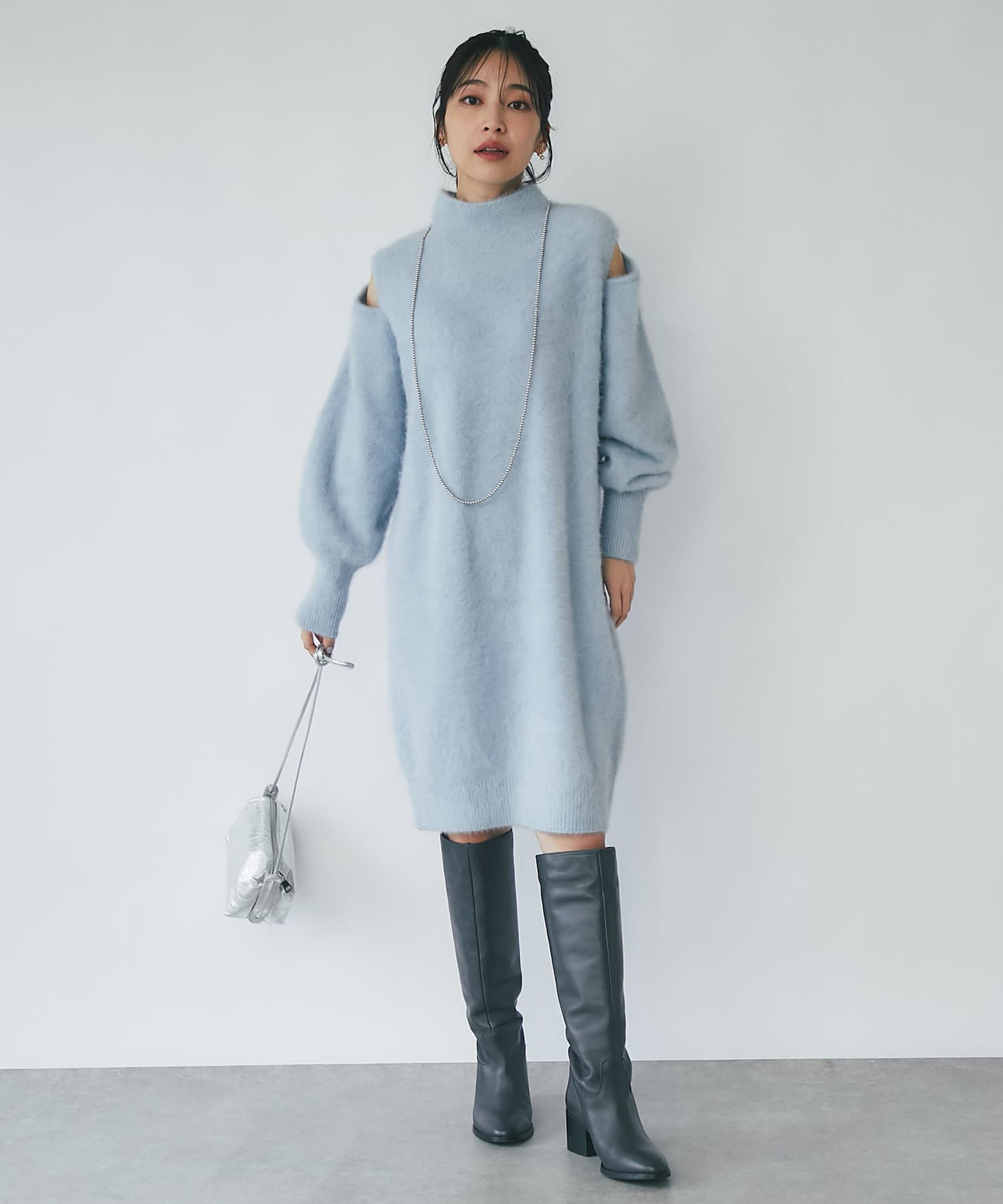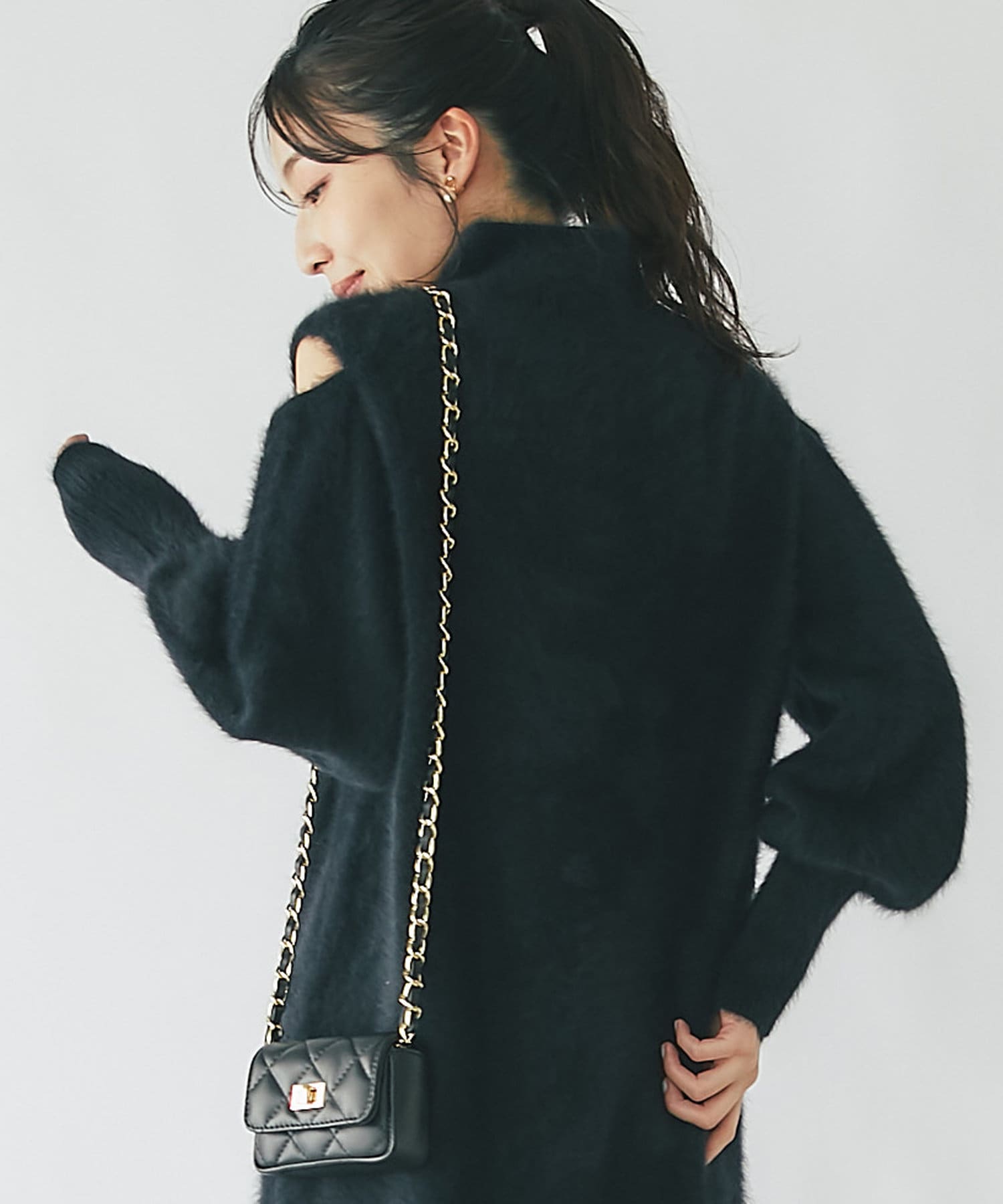 ハイネックで首元は露出を控えて、程よく肌見せができる大人のスタイルが叶います。