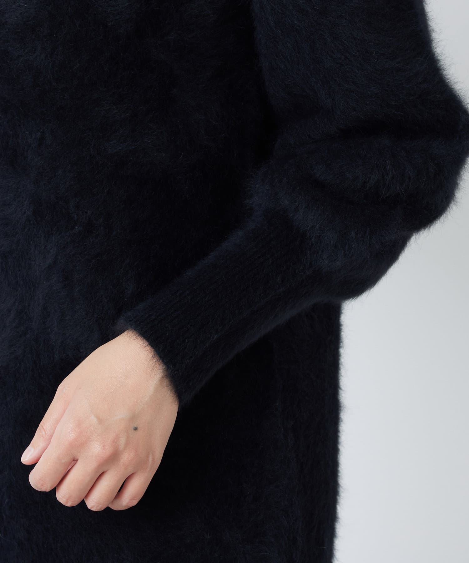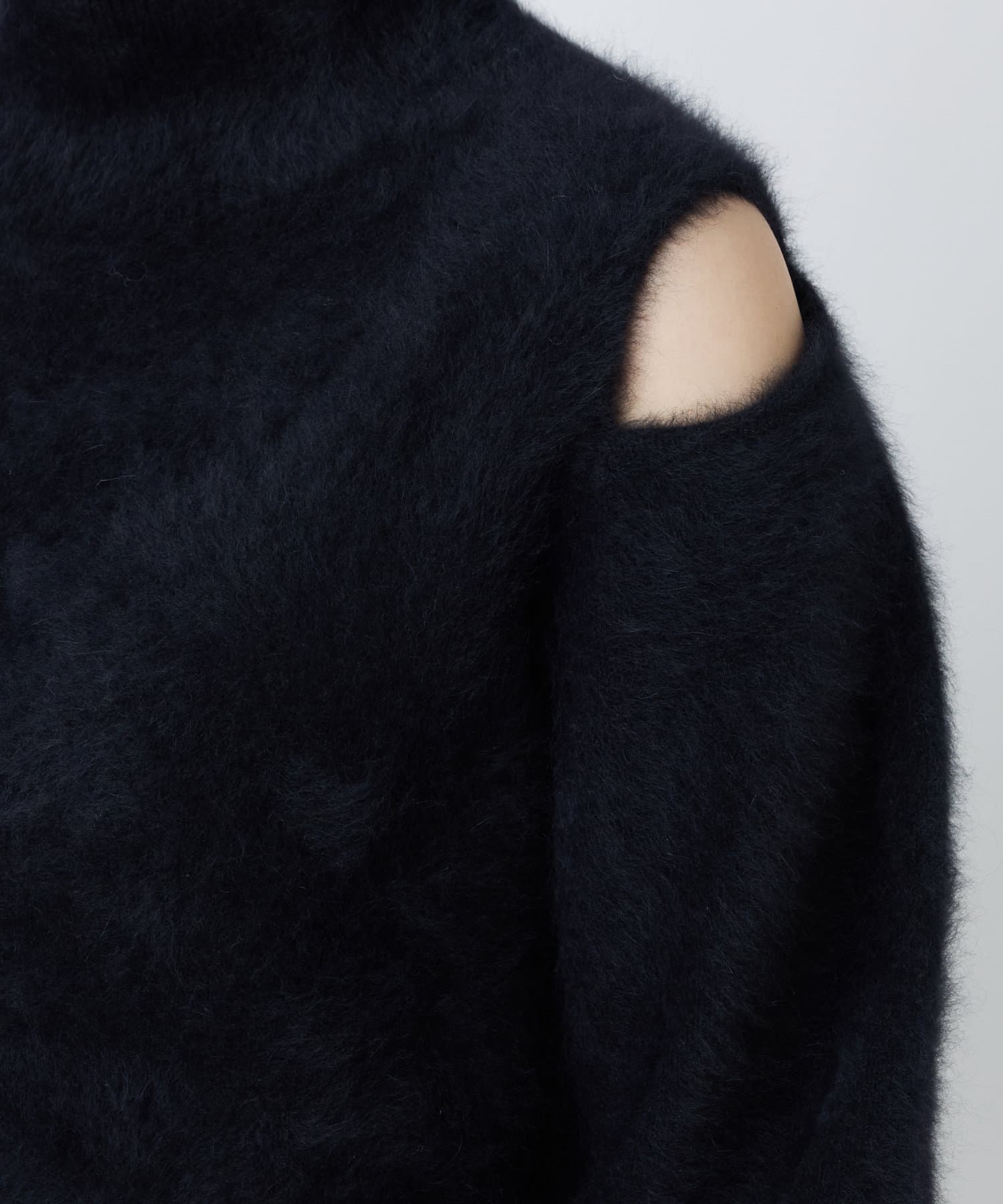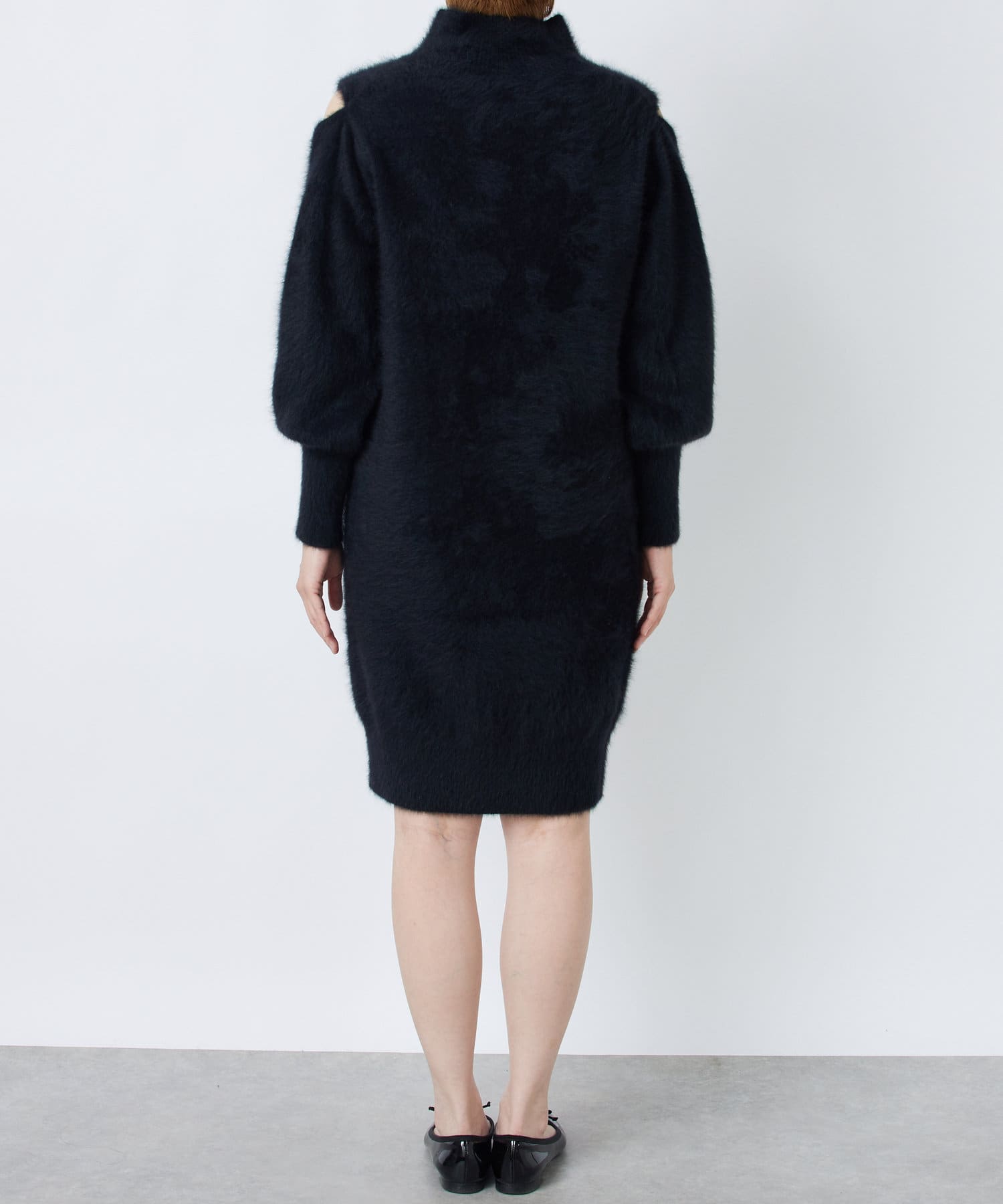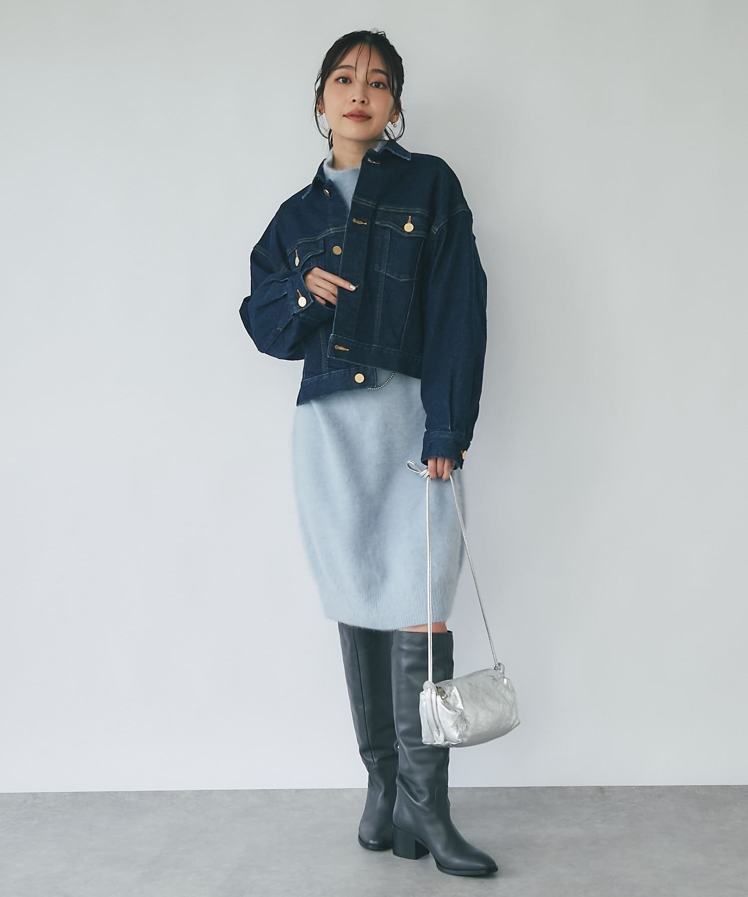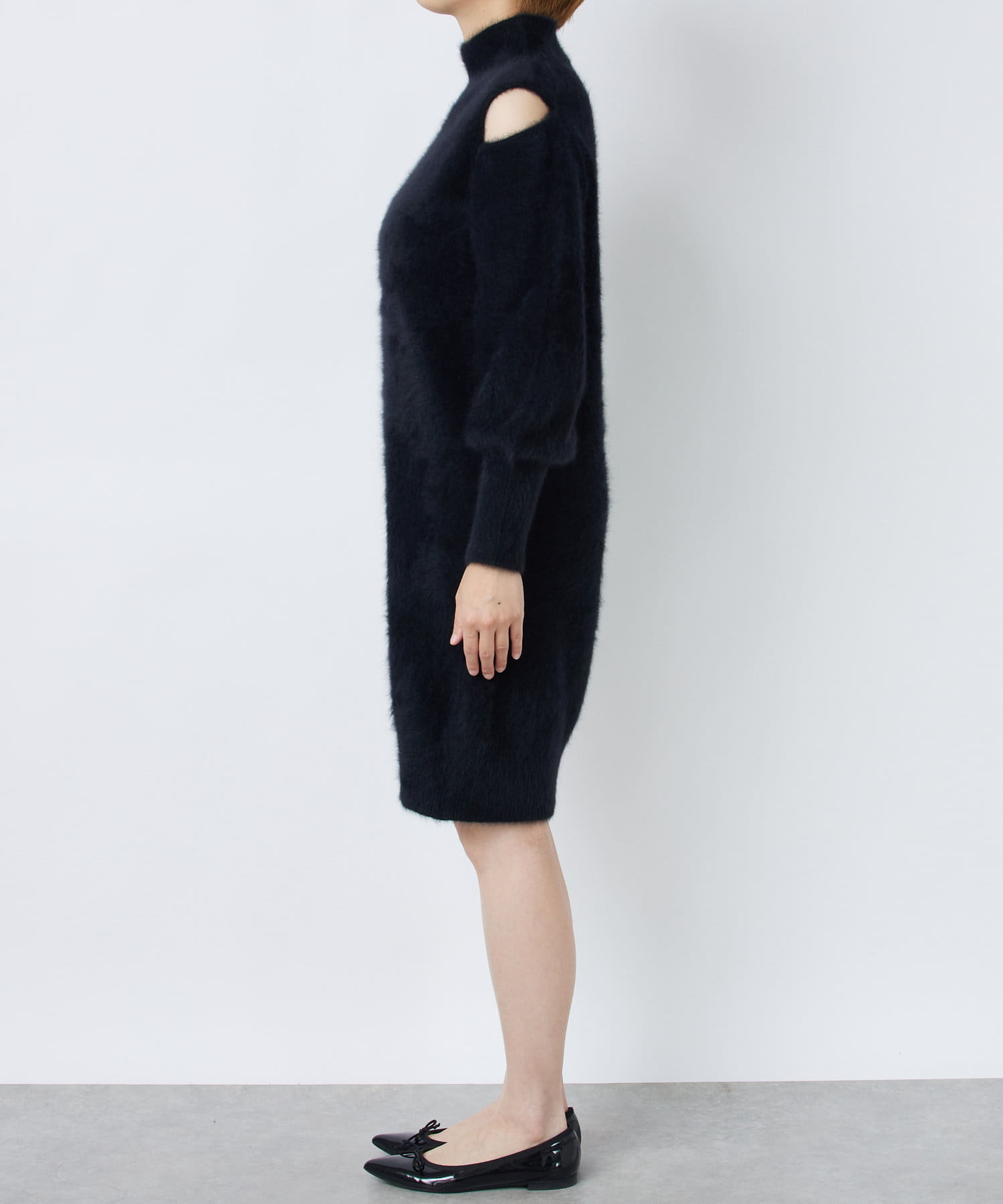 ハイネックで首元は露出を控えて、程よく肌見せができる大人のスタイルが叶います。