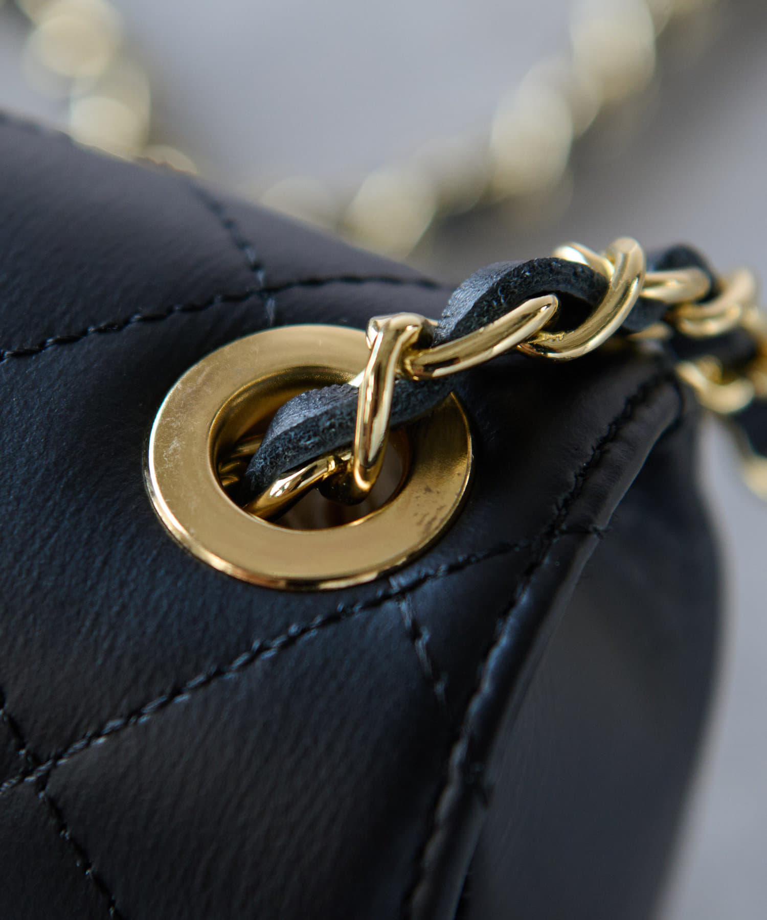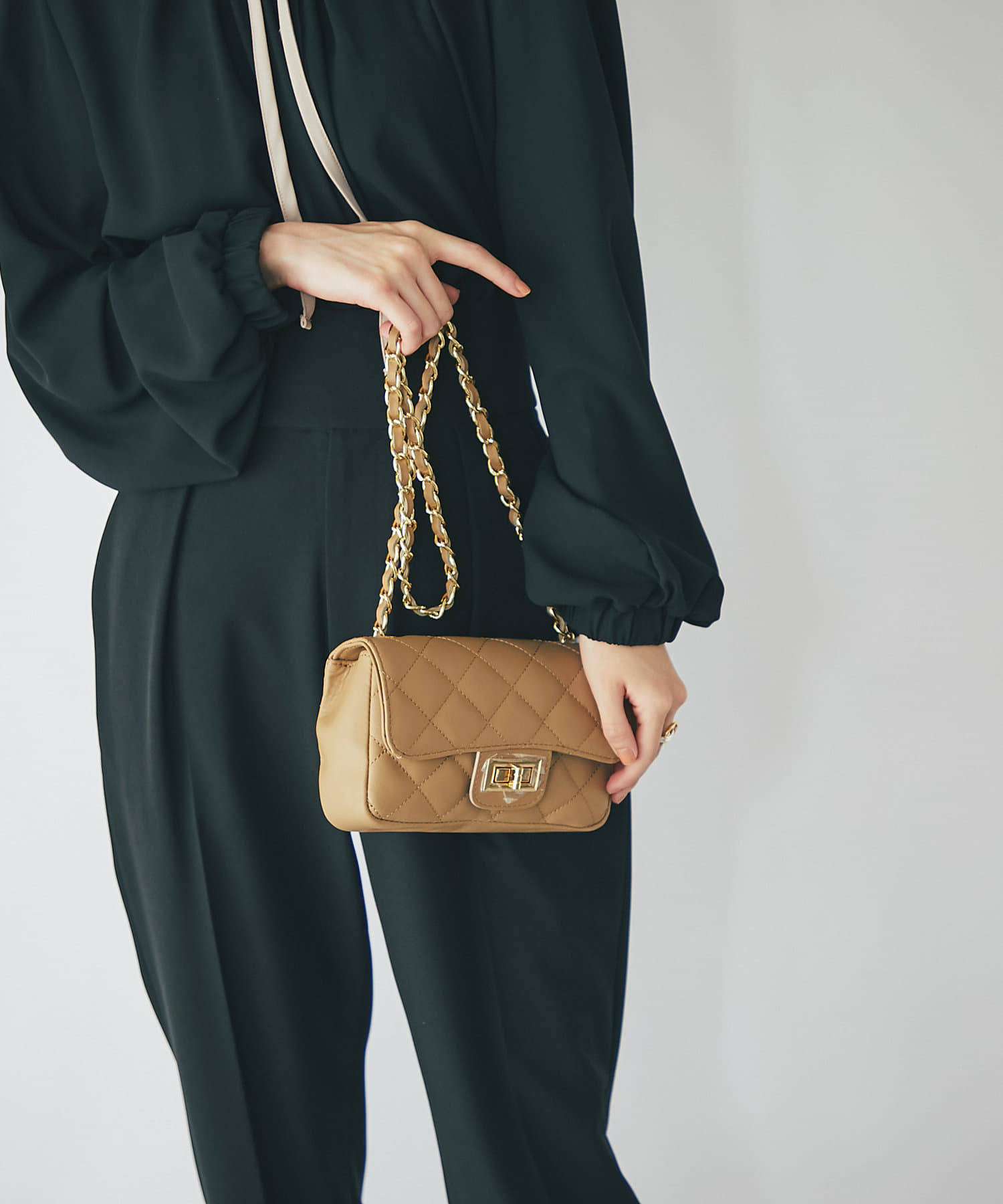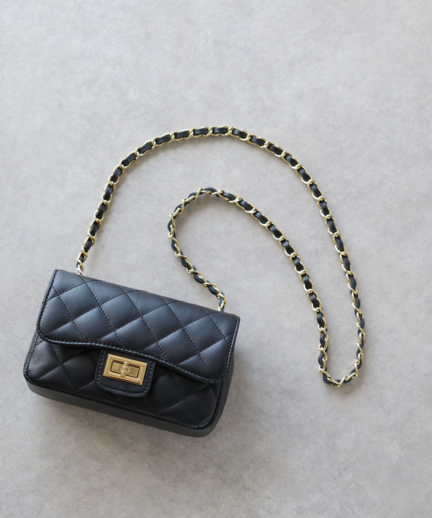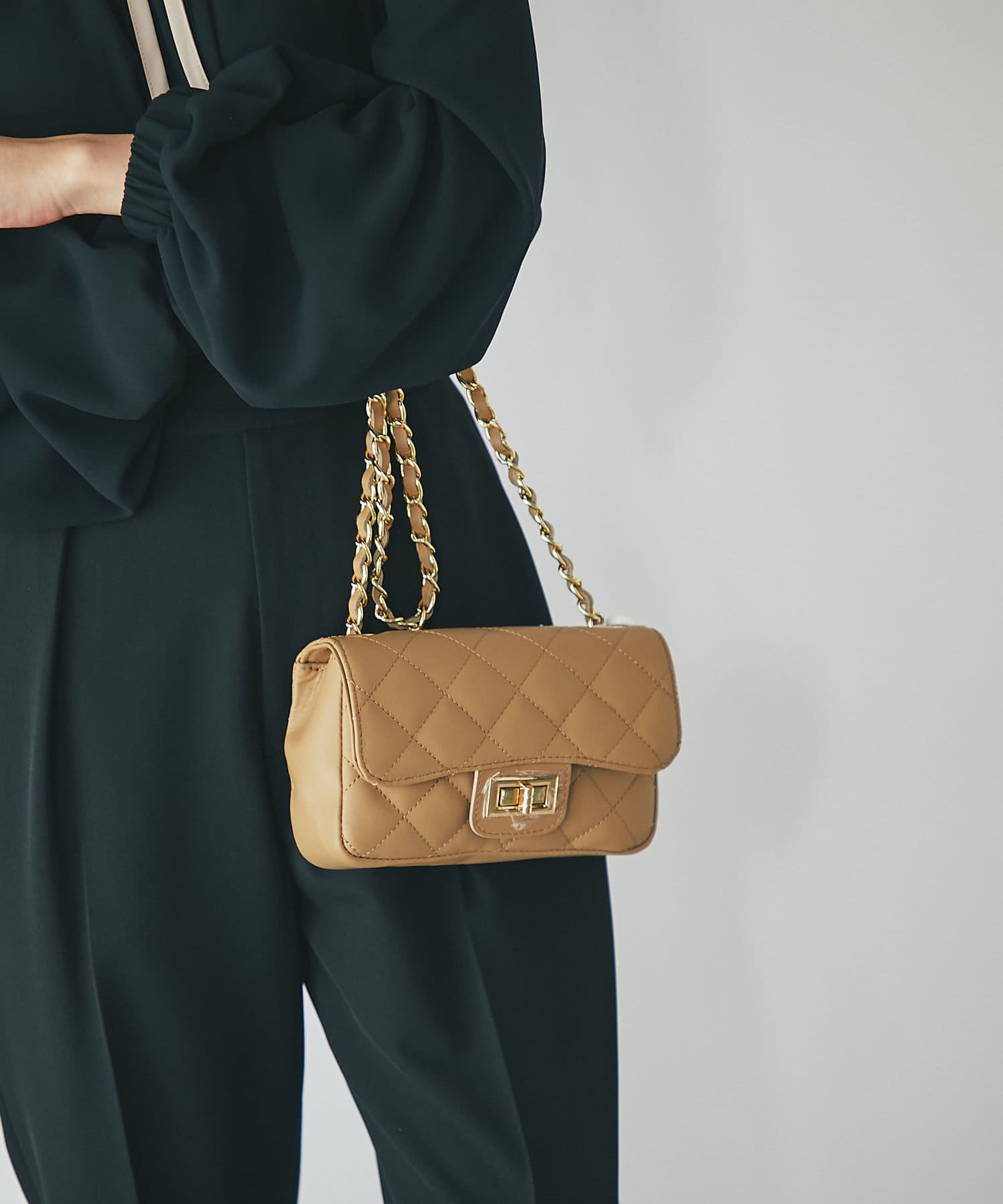 キルティングレザーにゴールドチェーンが上品で大人な印象に。