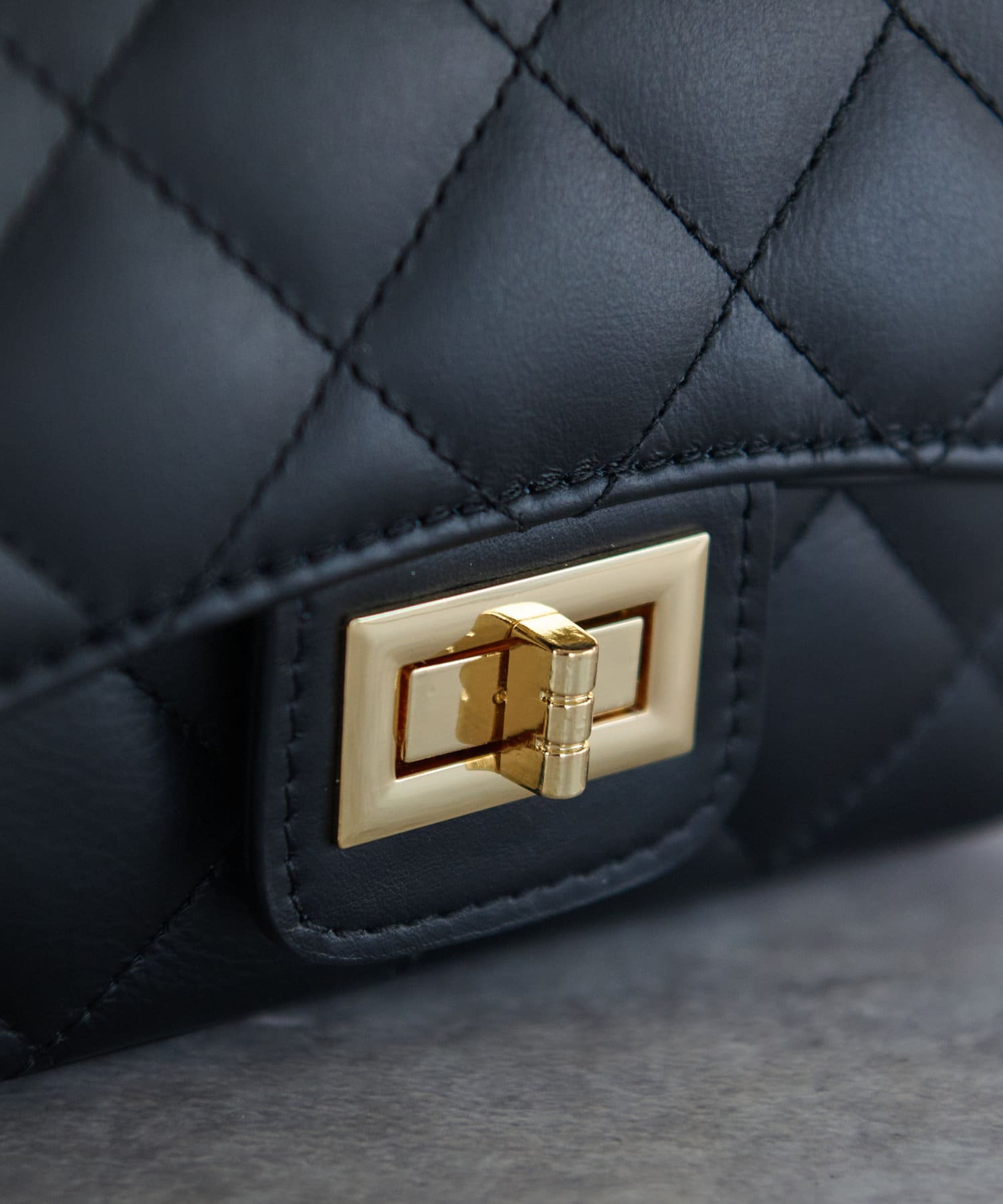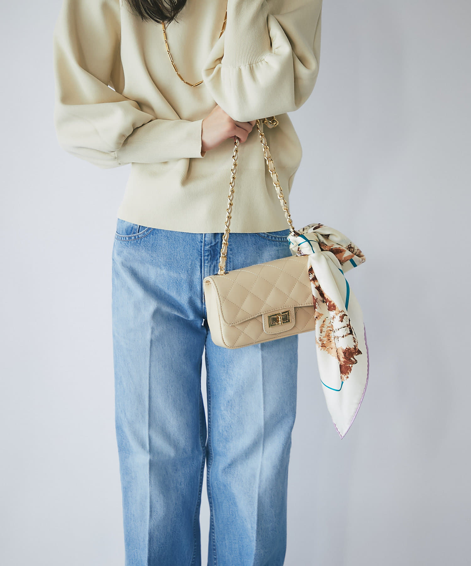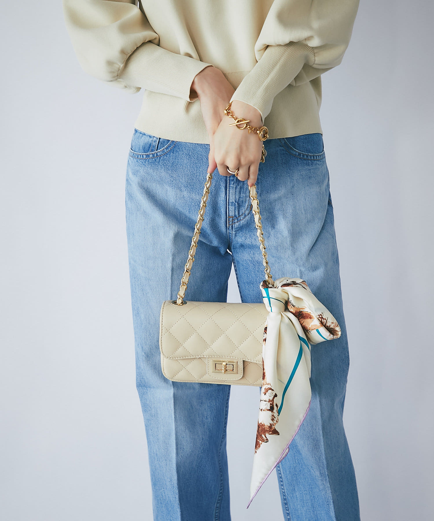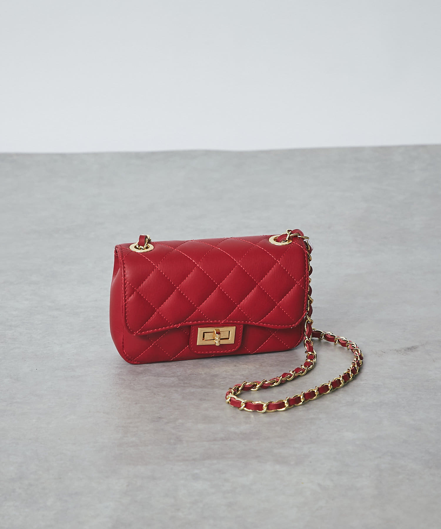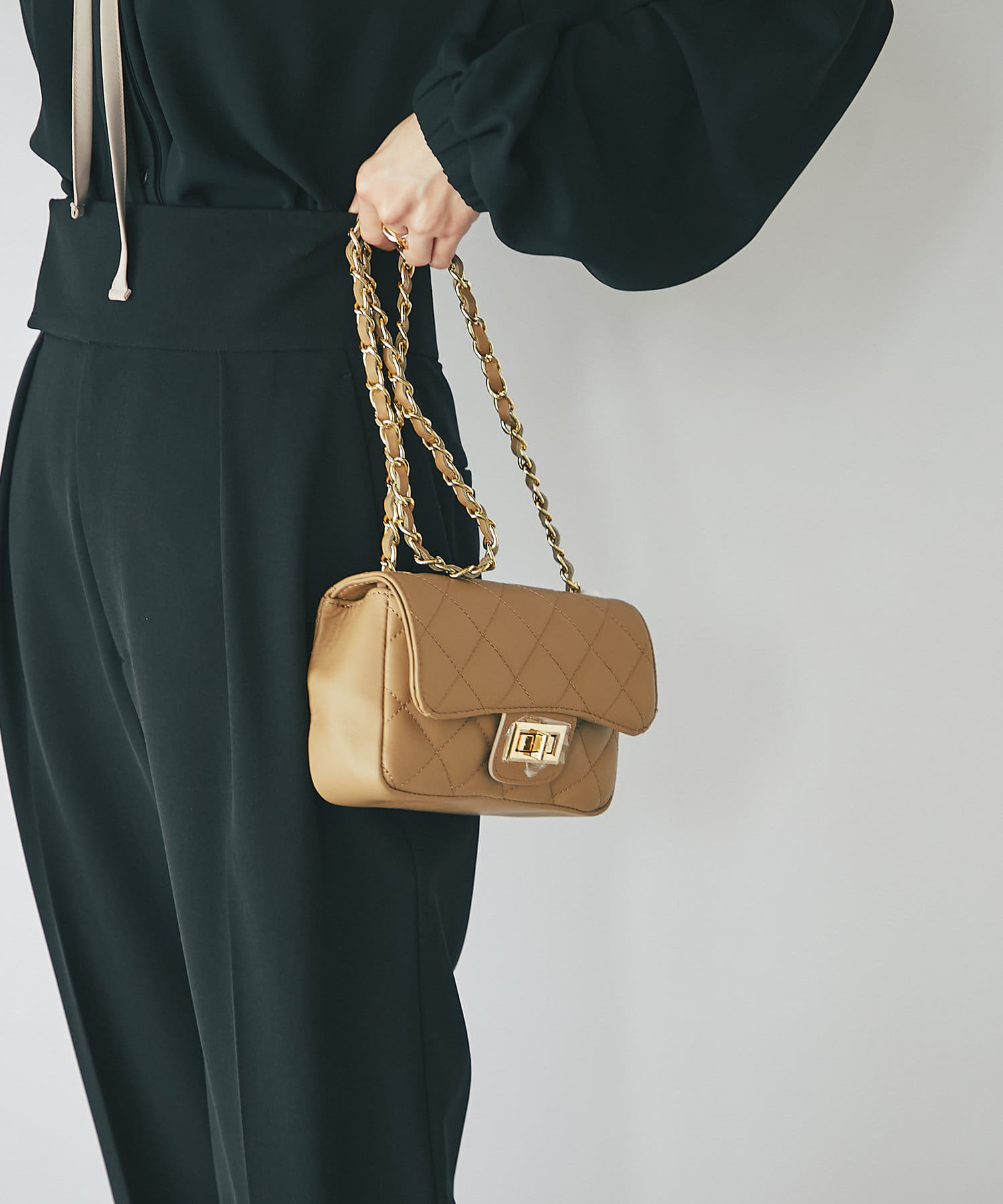 キルティングレザーにゴールドチェーンが上品で大人な印象に。