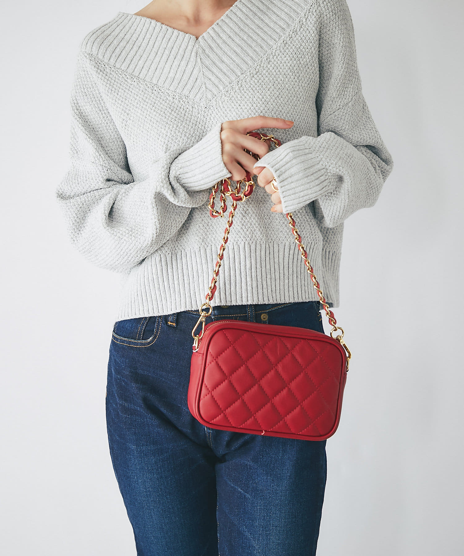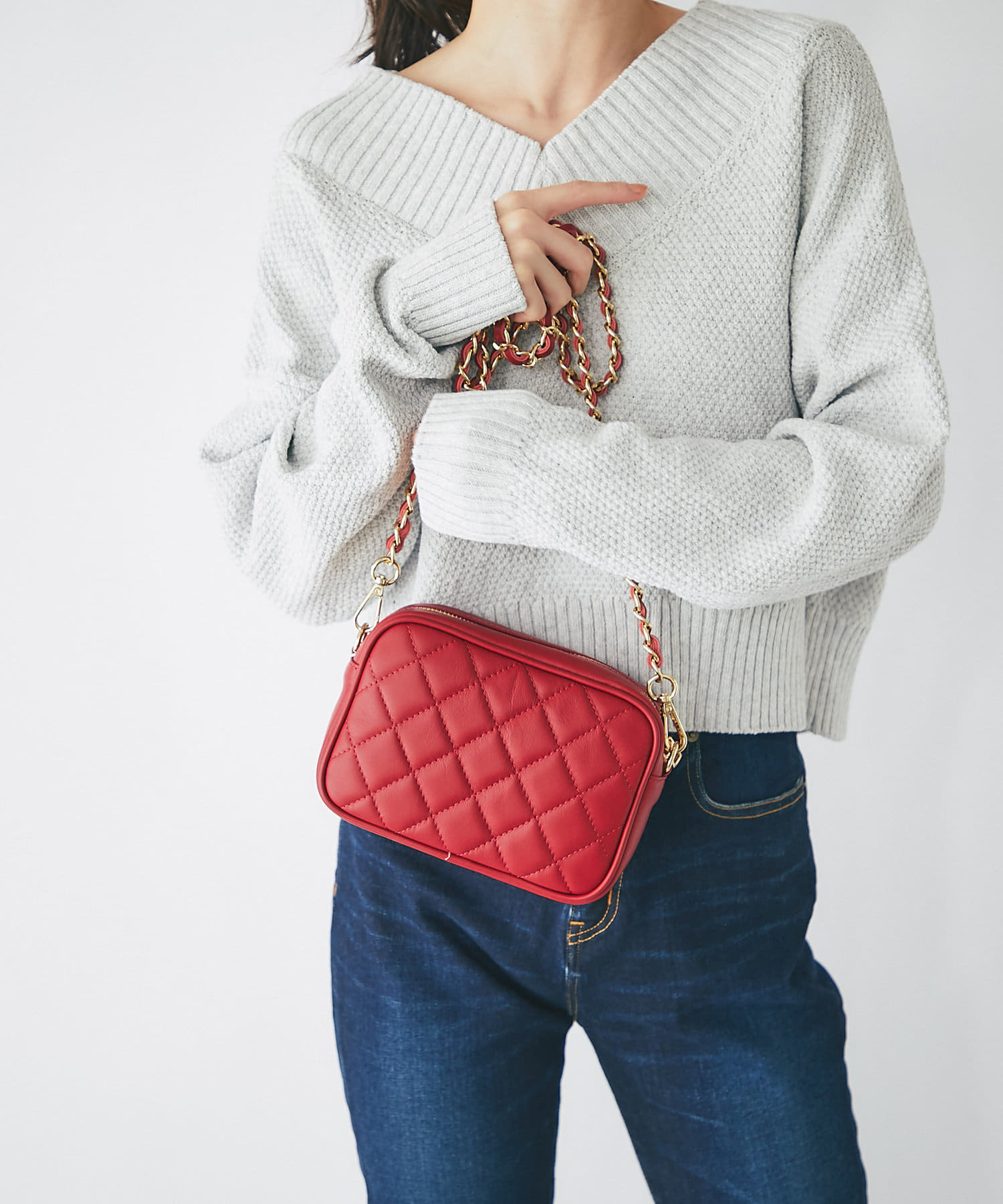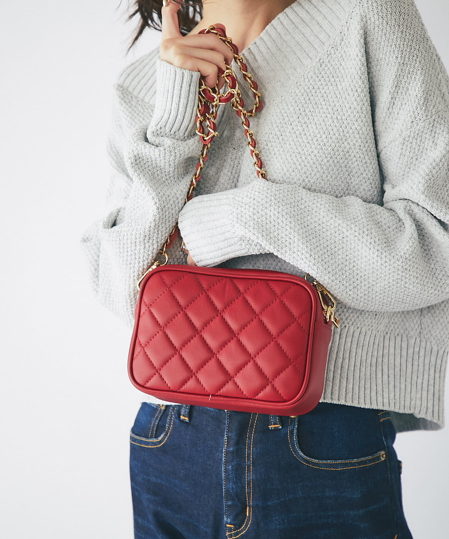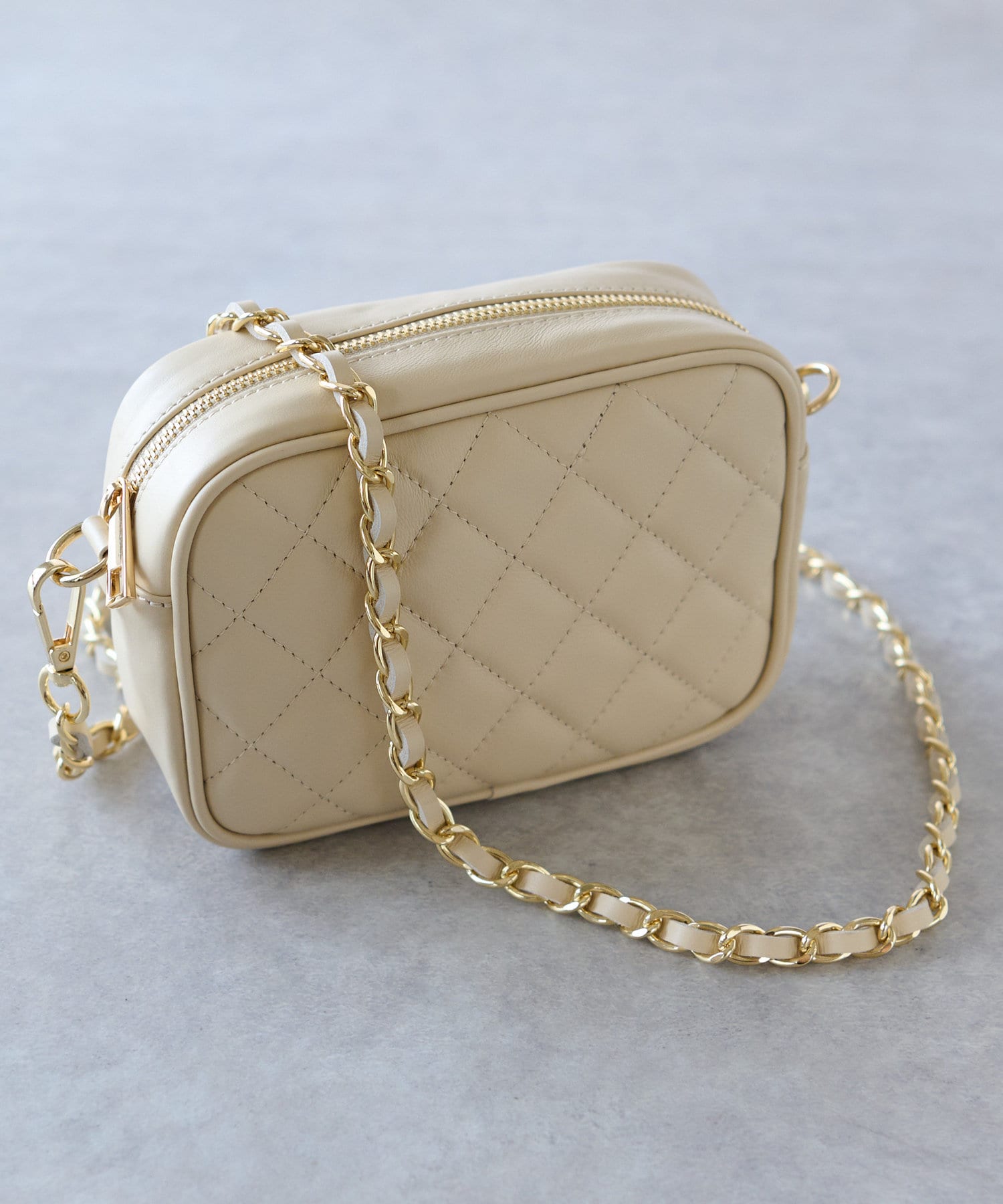 キルティングレザーにゴールドチェーンが上品で大人な印象に。