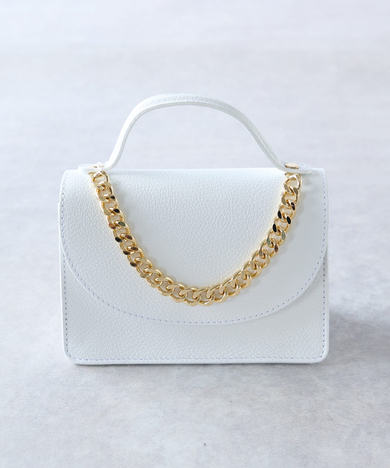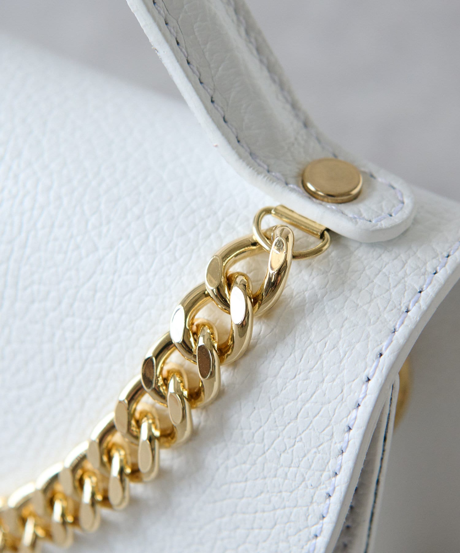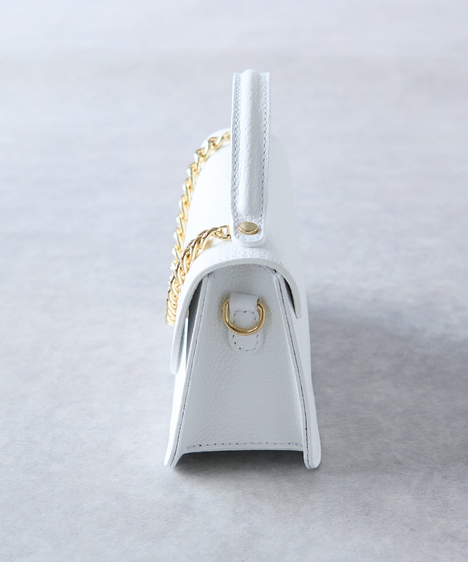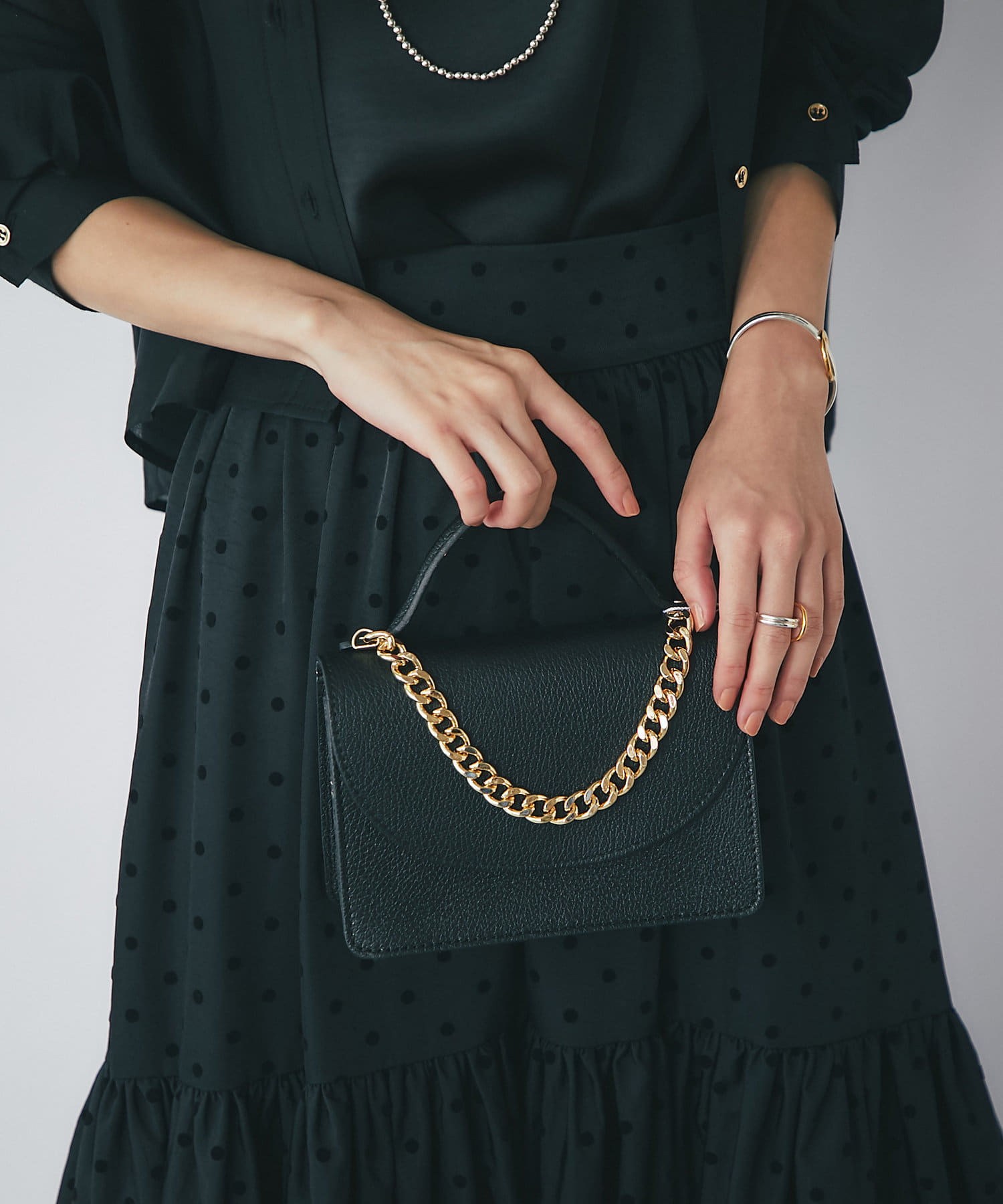 上品レザーにゴールドチェーンが映える大人顔バッグ