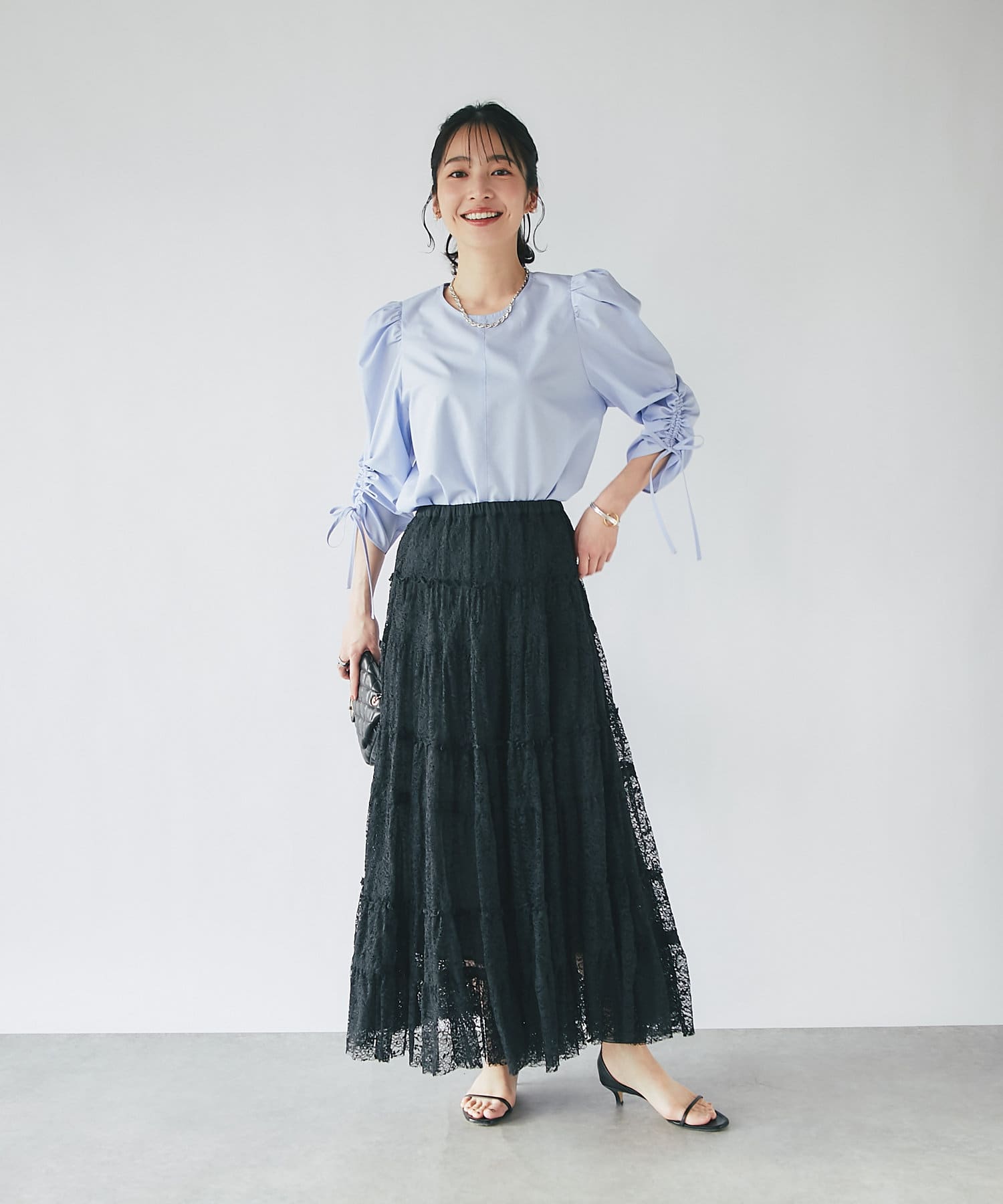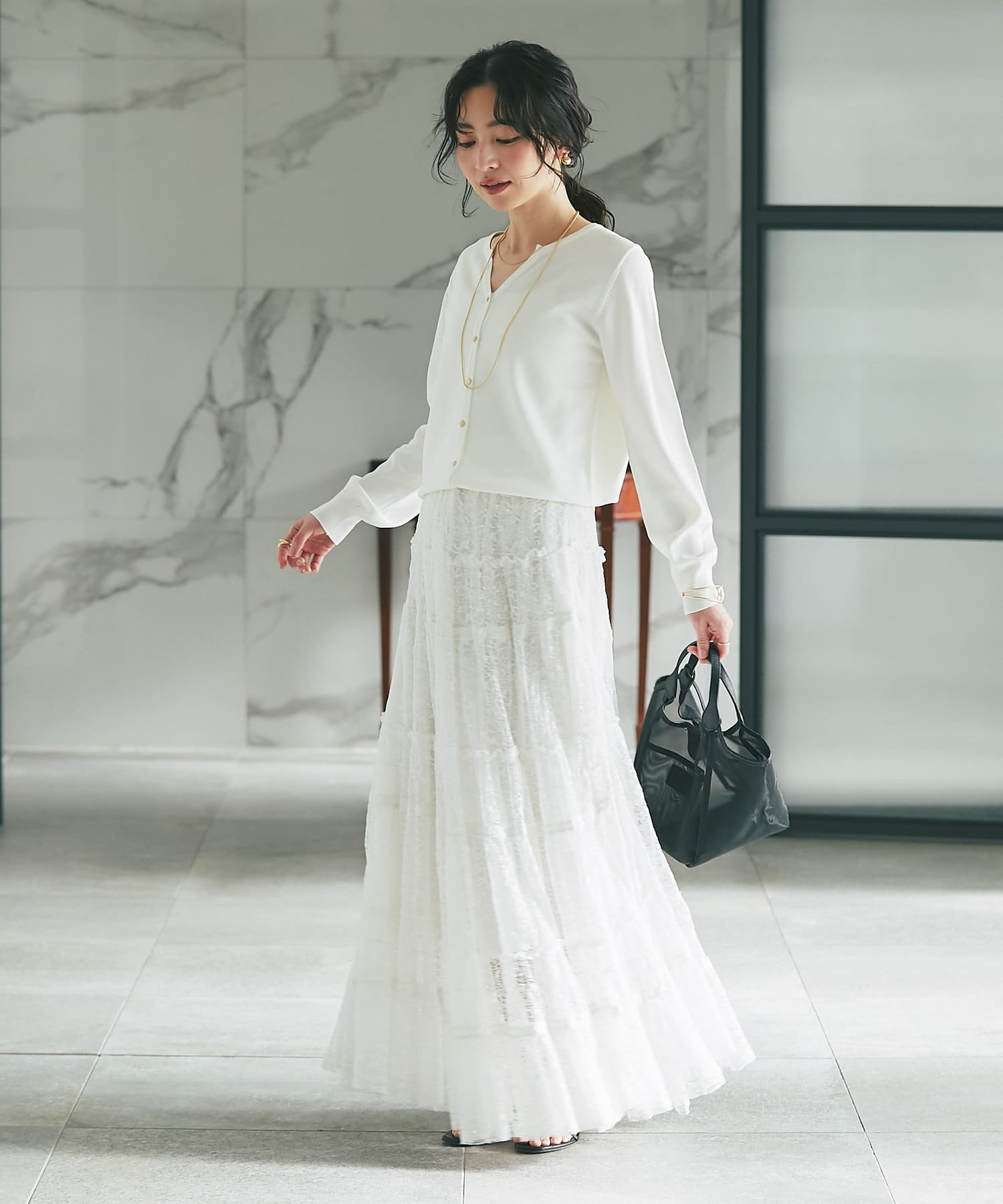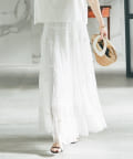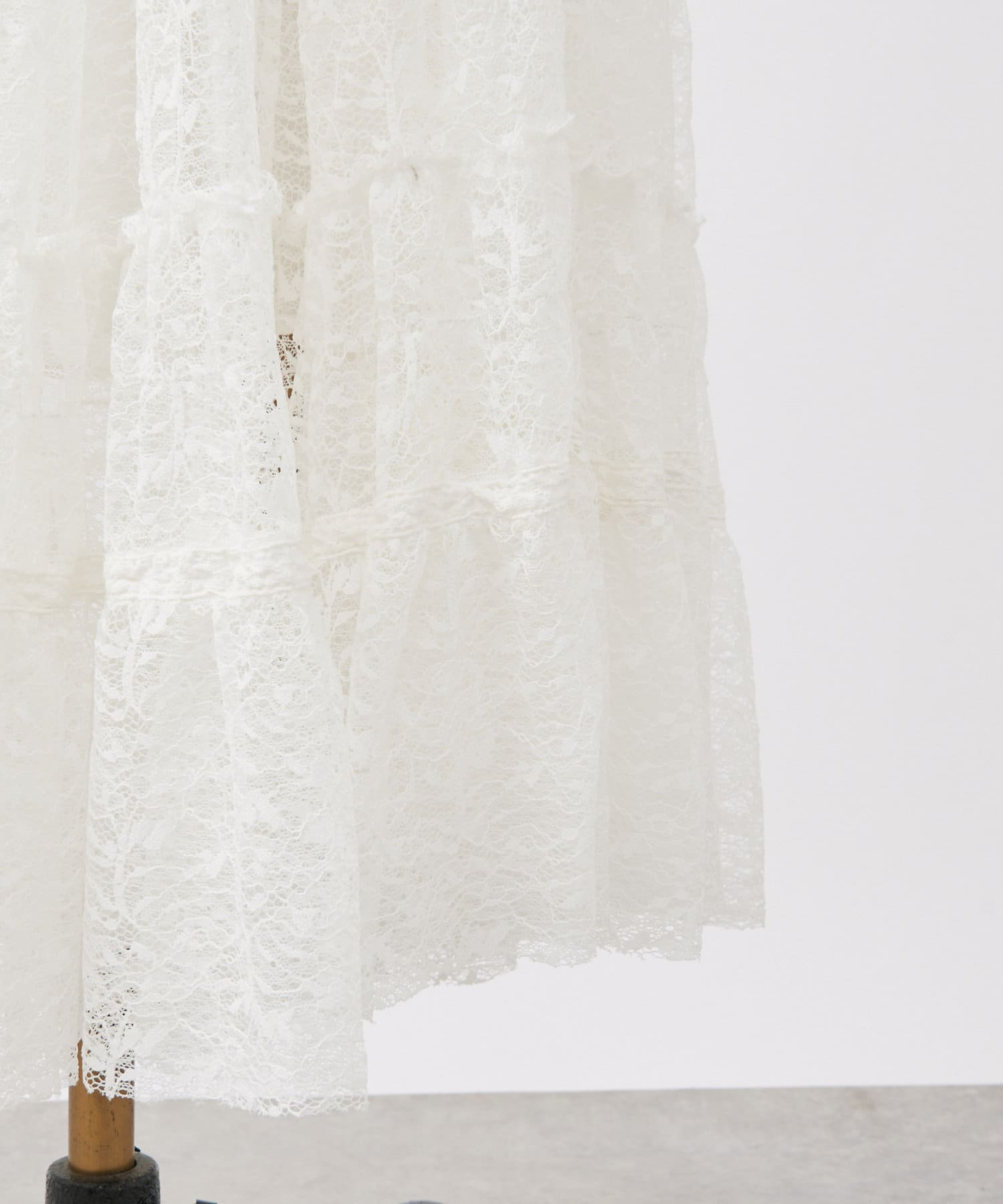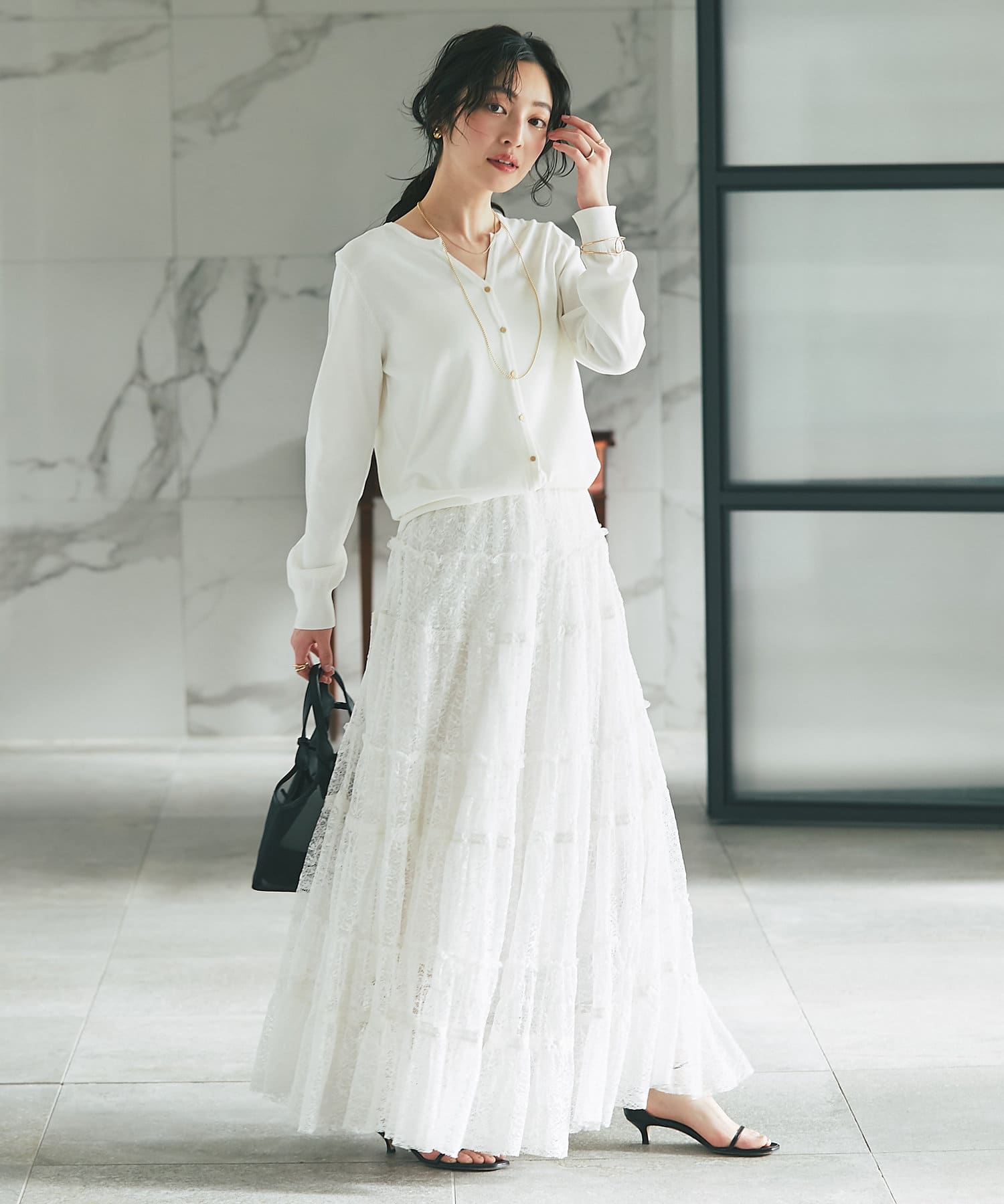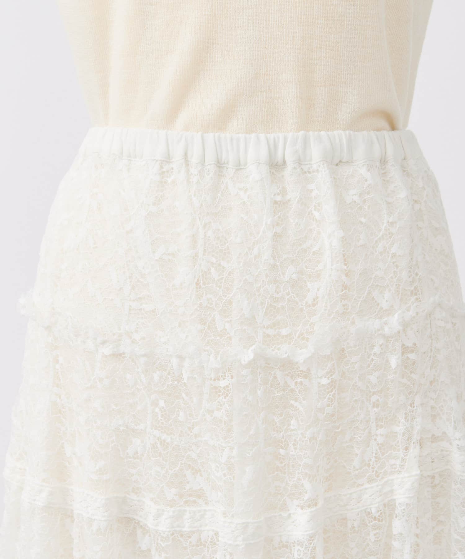 柔らかくて繊細なリバーレースで仕立てた贅沢なティアードロングスカート