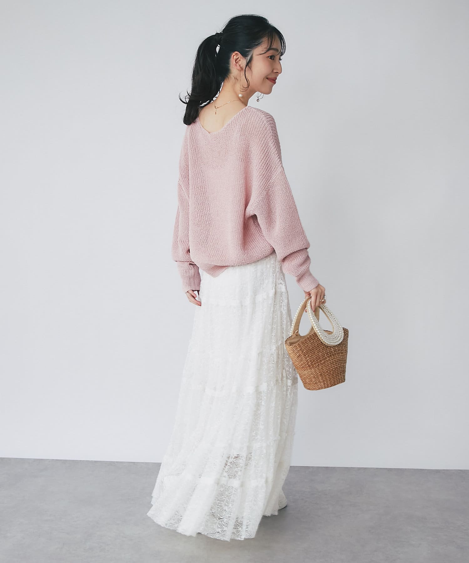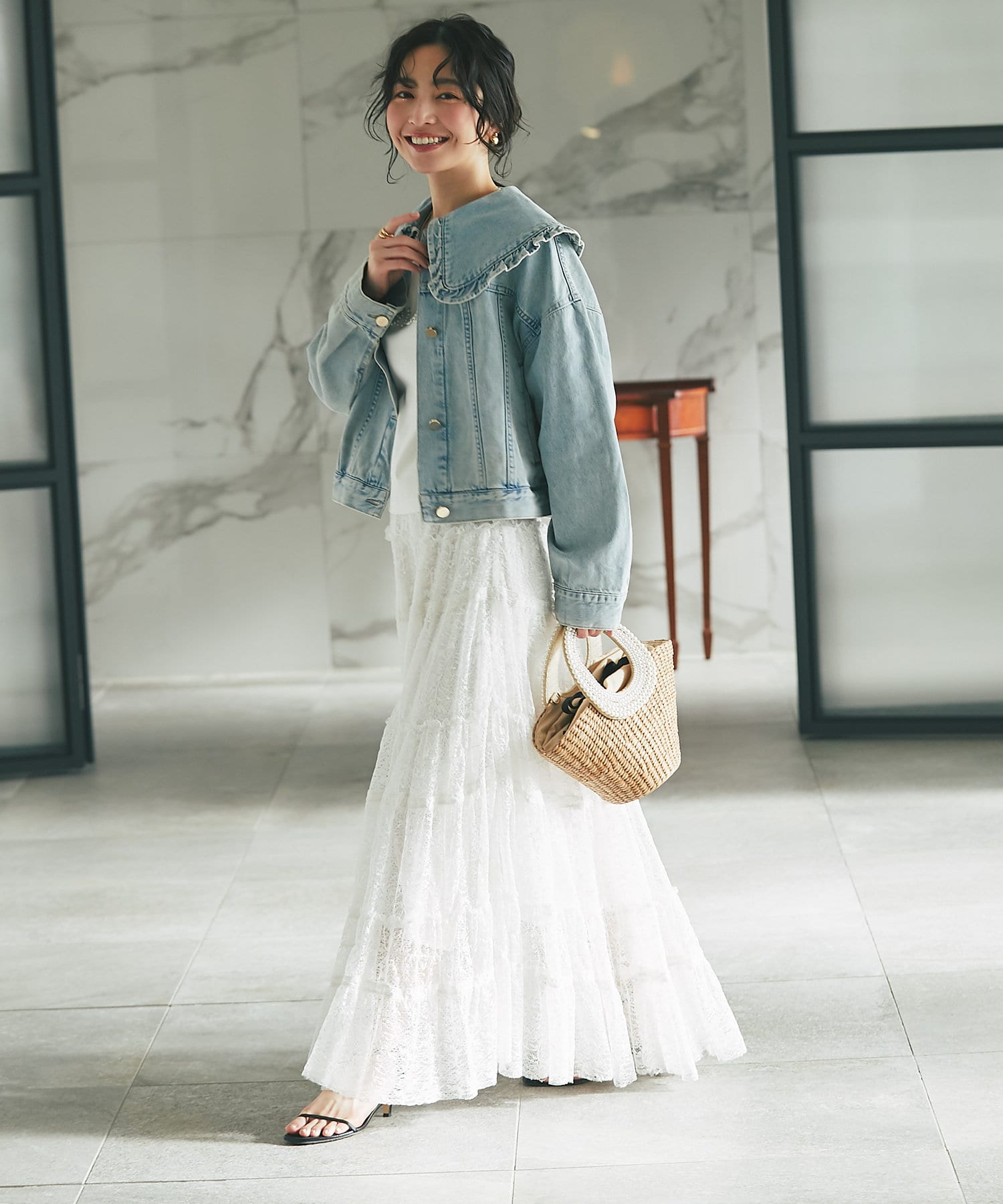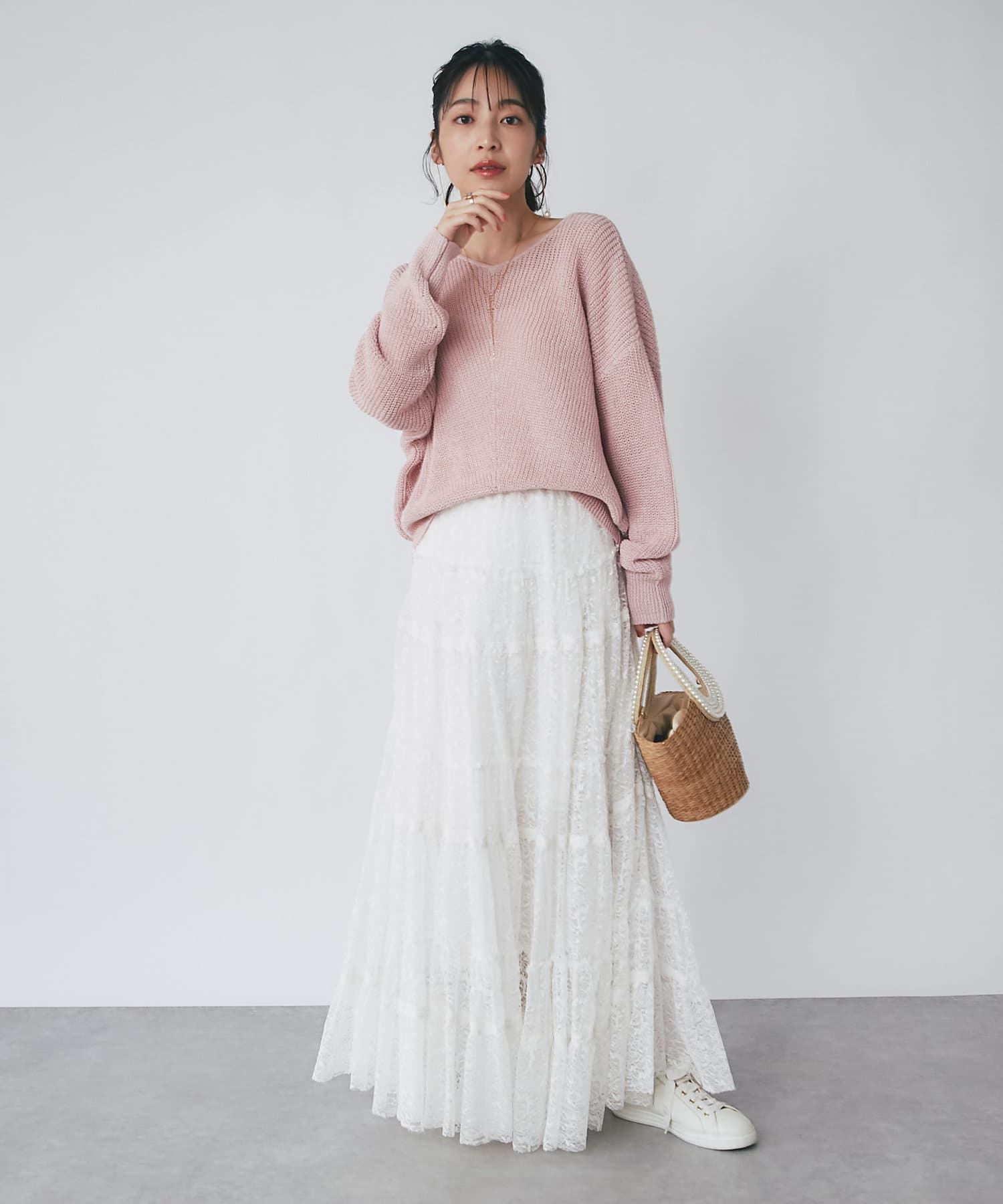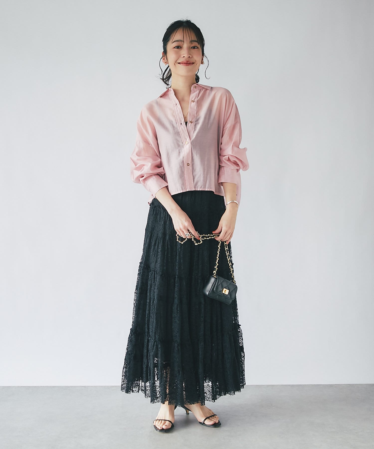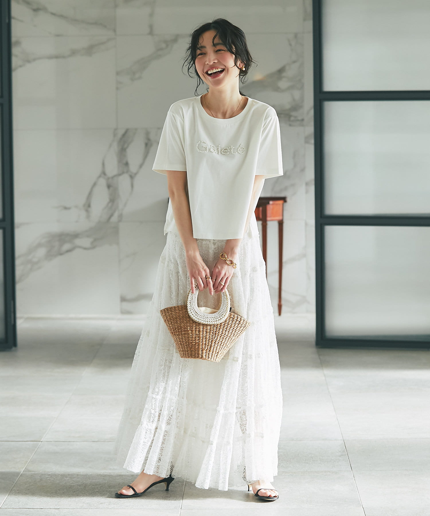 柔らかくて繊細なリバーレースで仕立てた贅沢なティアードロングスカート