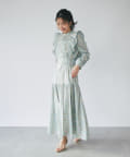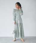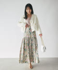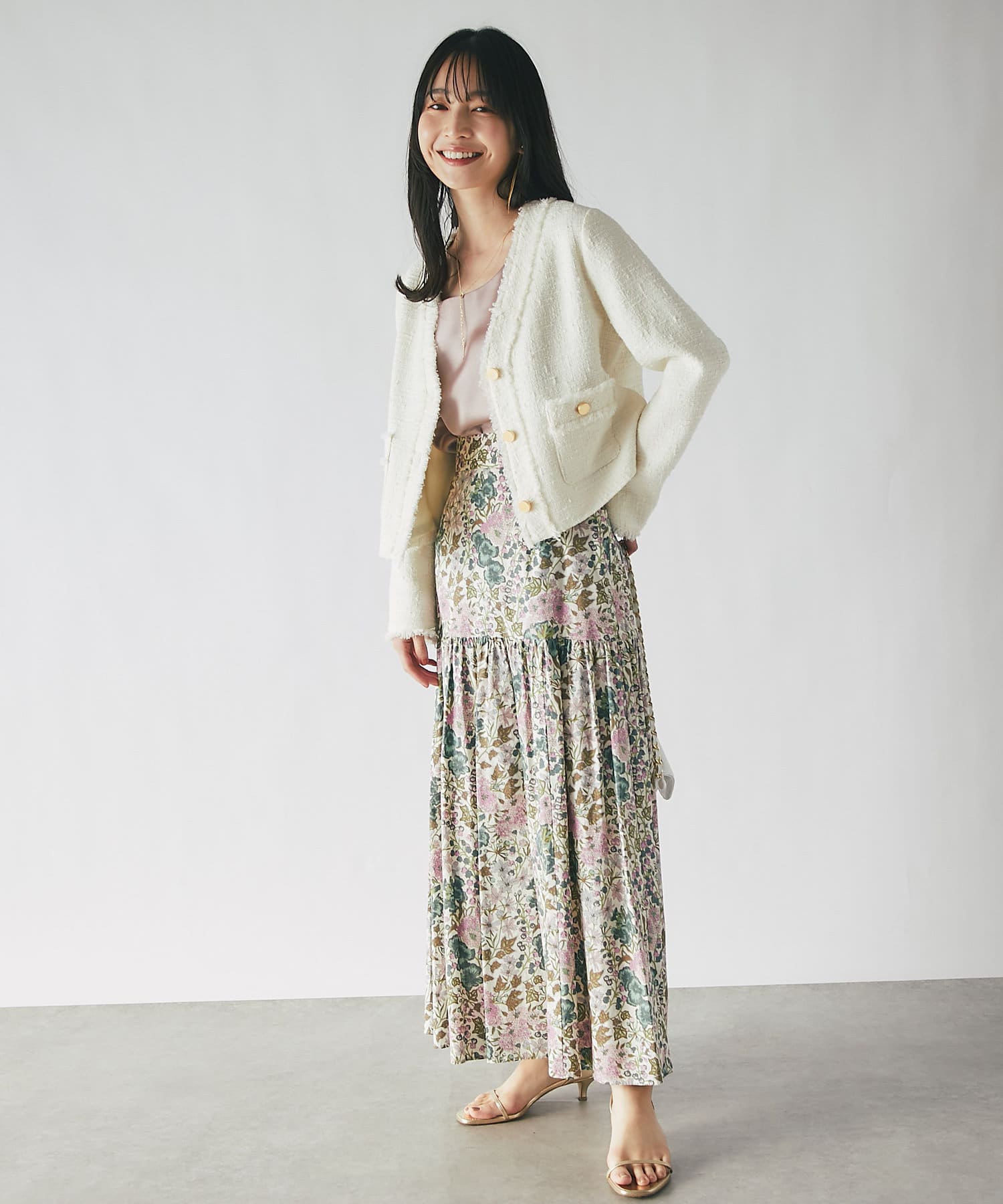 同素材のブラウスとセットアップで着るとワンピースのような着こなしも楽しめます。