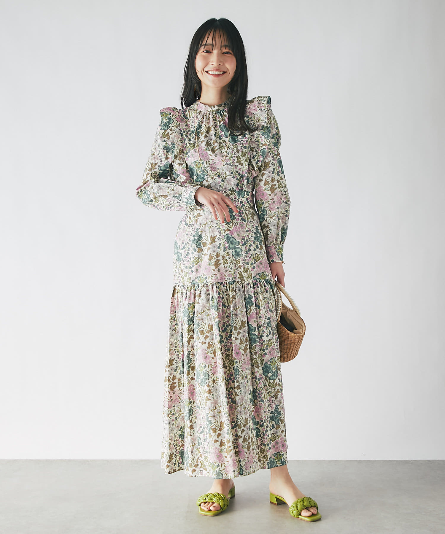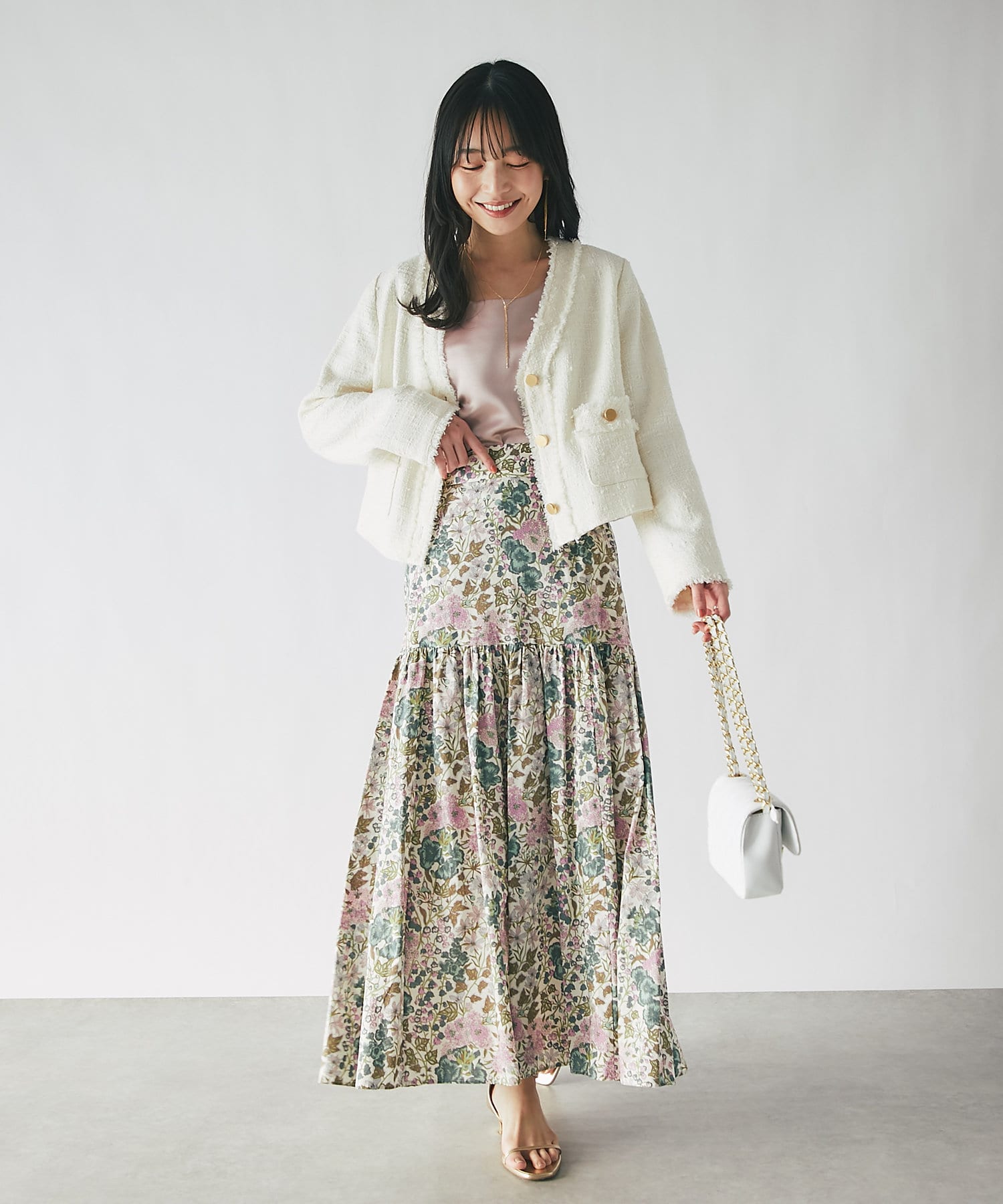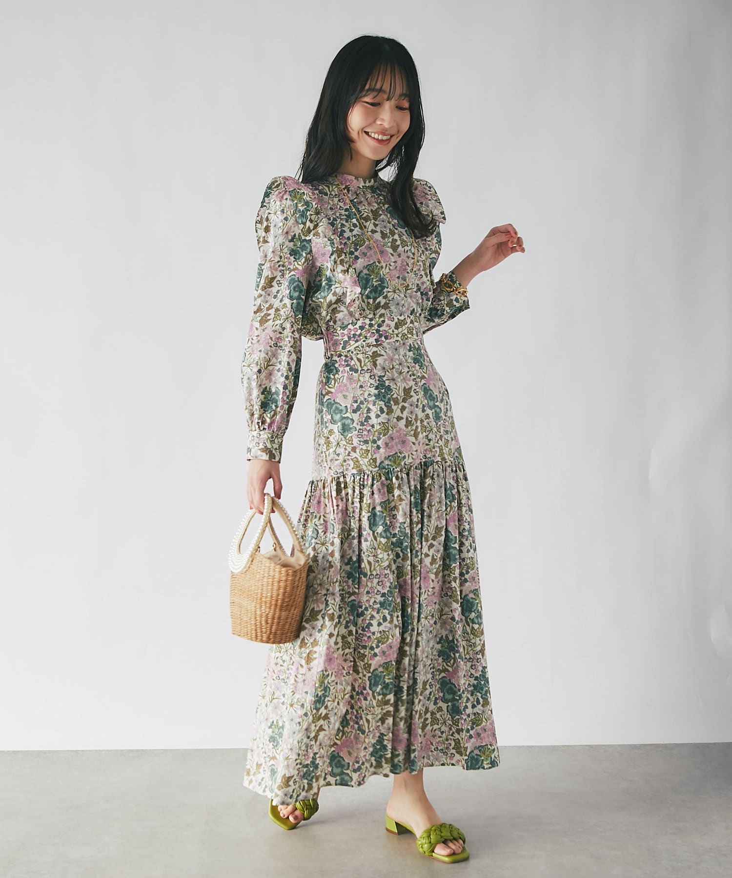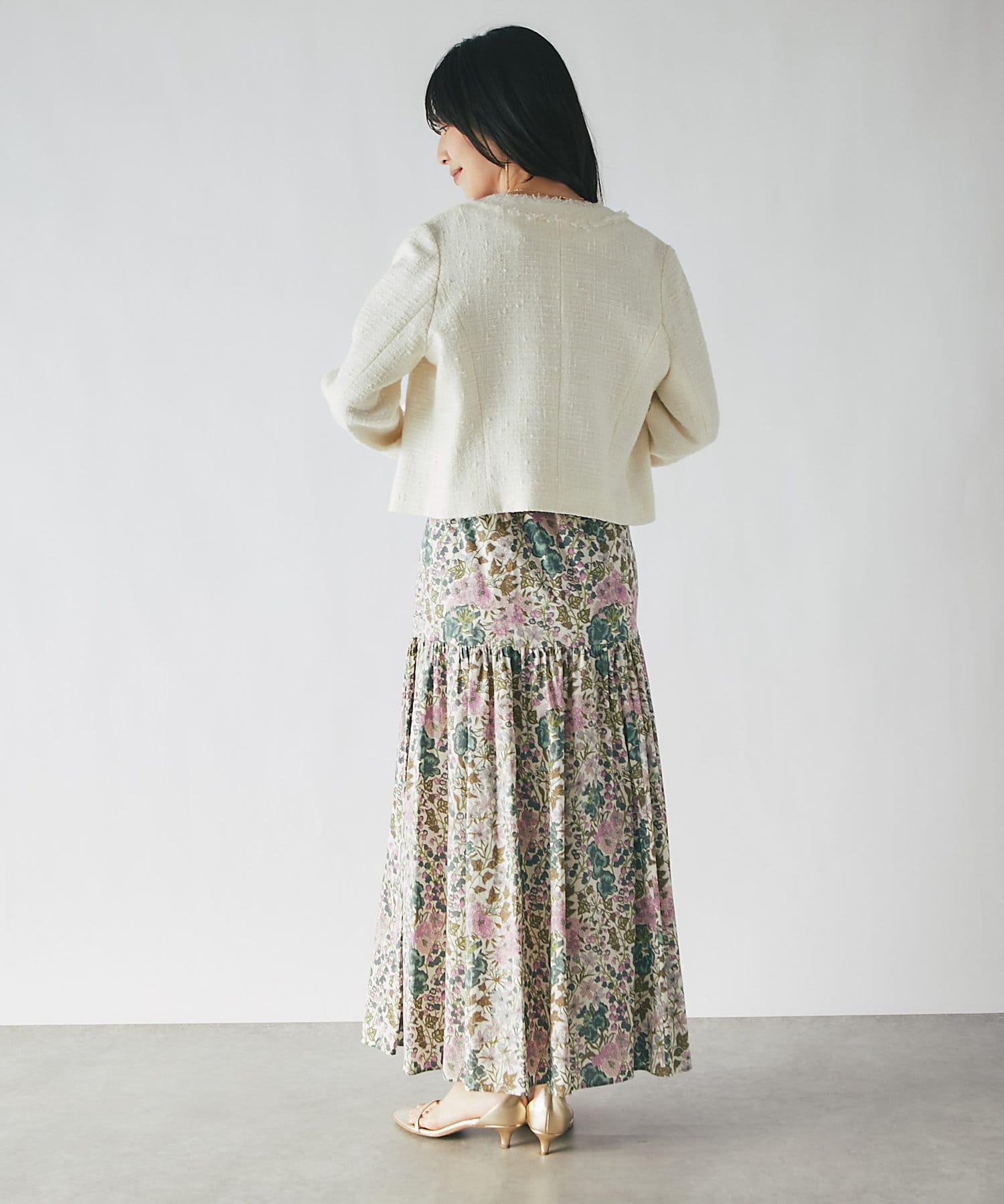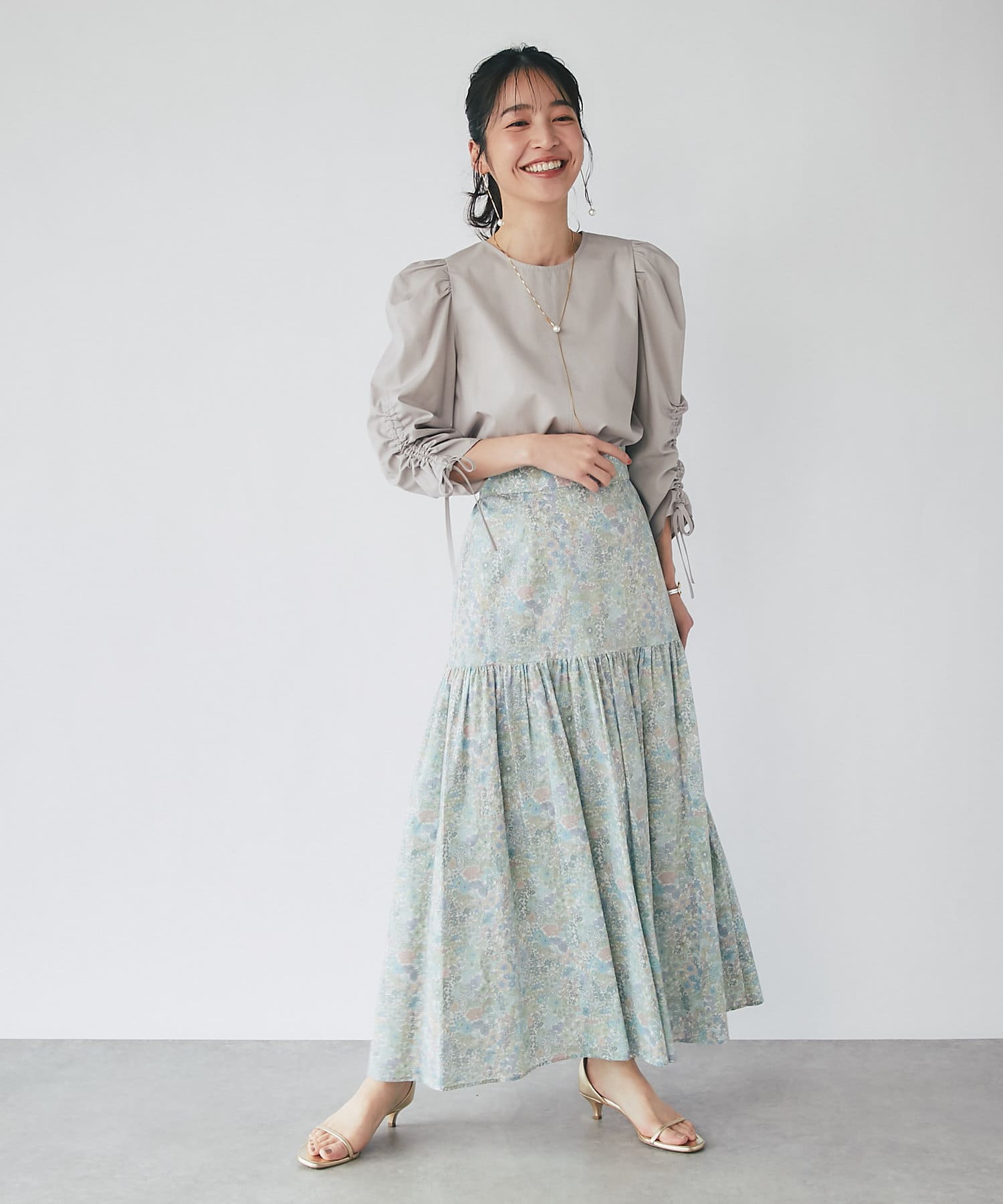 人気のリバティ生地を贅沢に使用したティアードマキシスカート