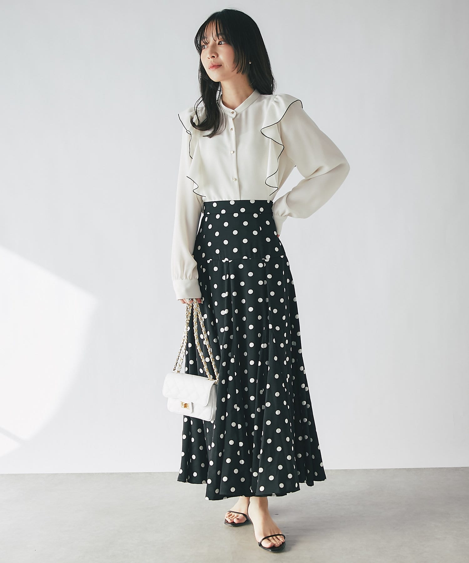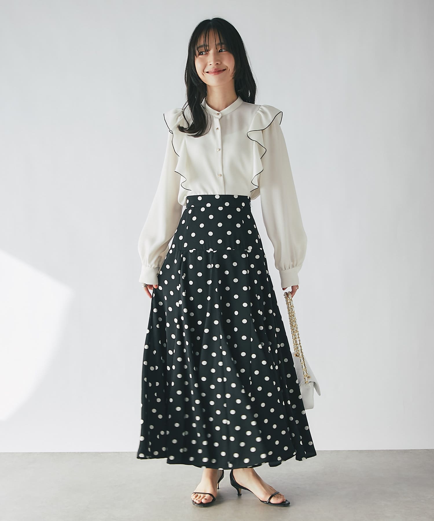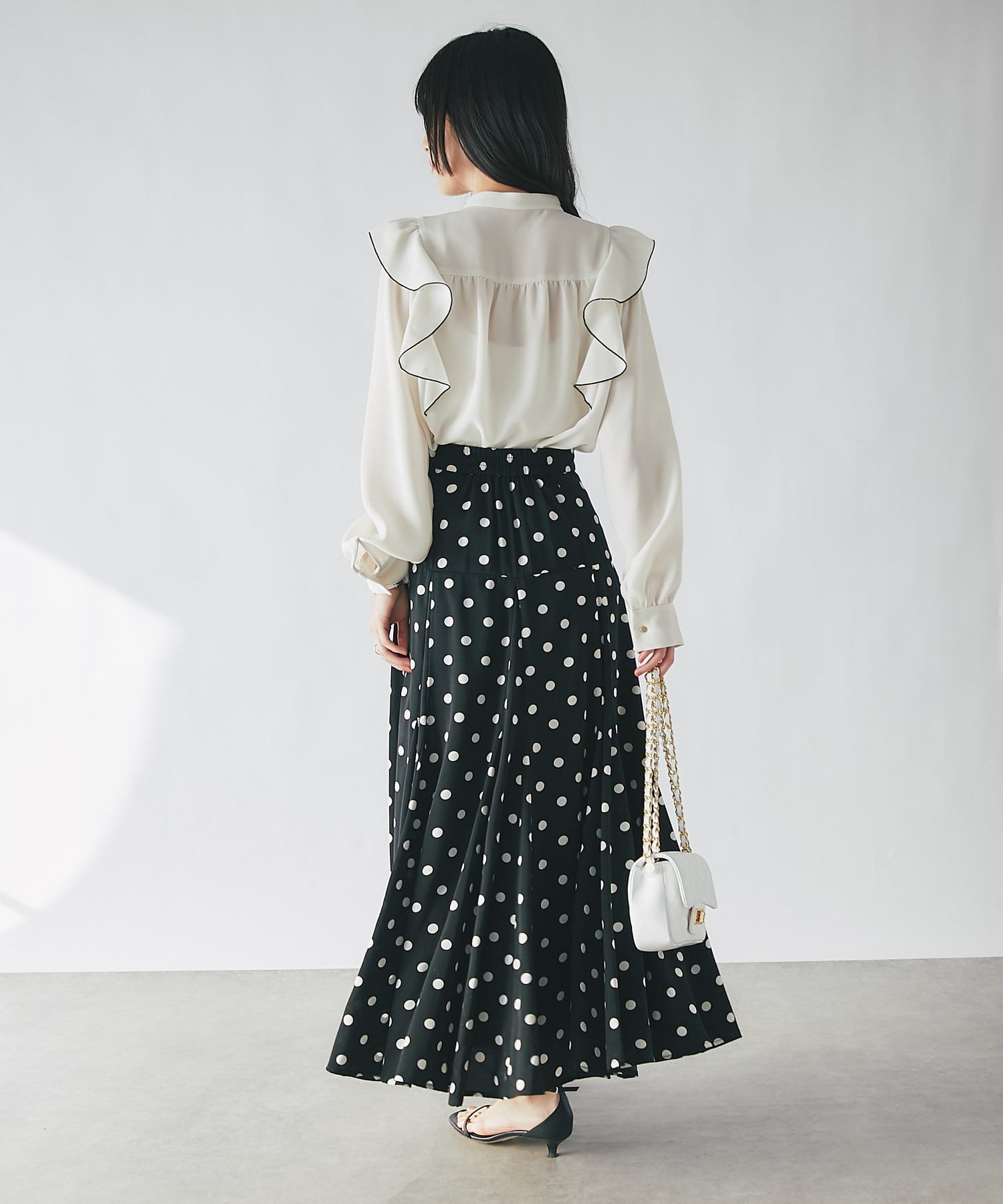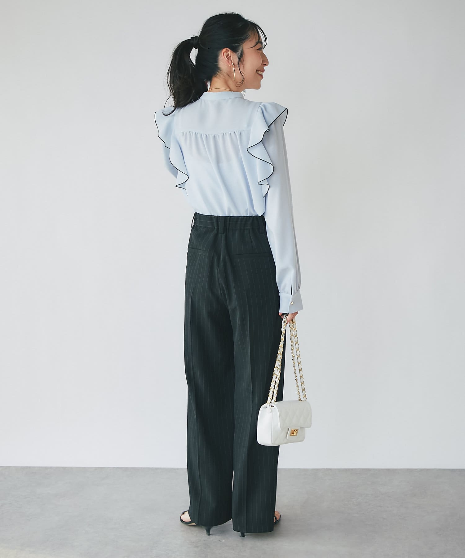 人気のラッフルブラウスをアップデート