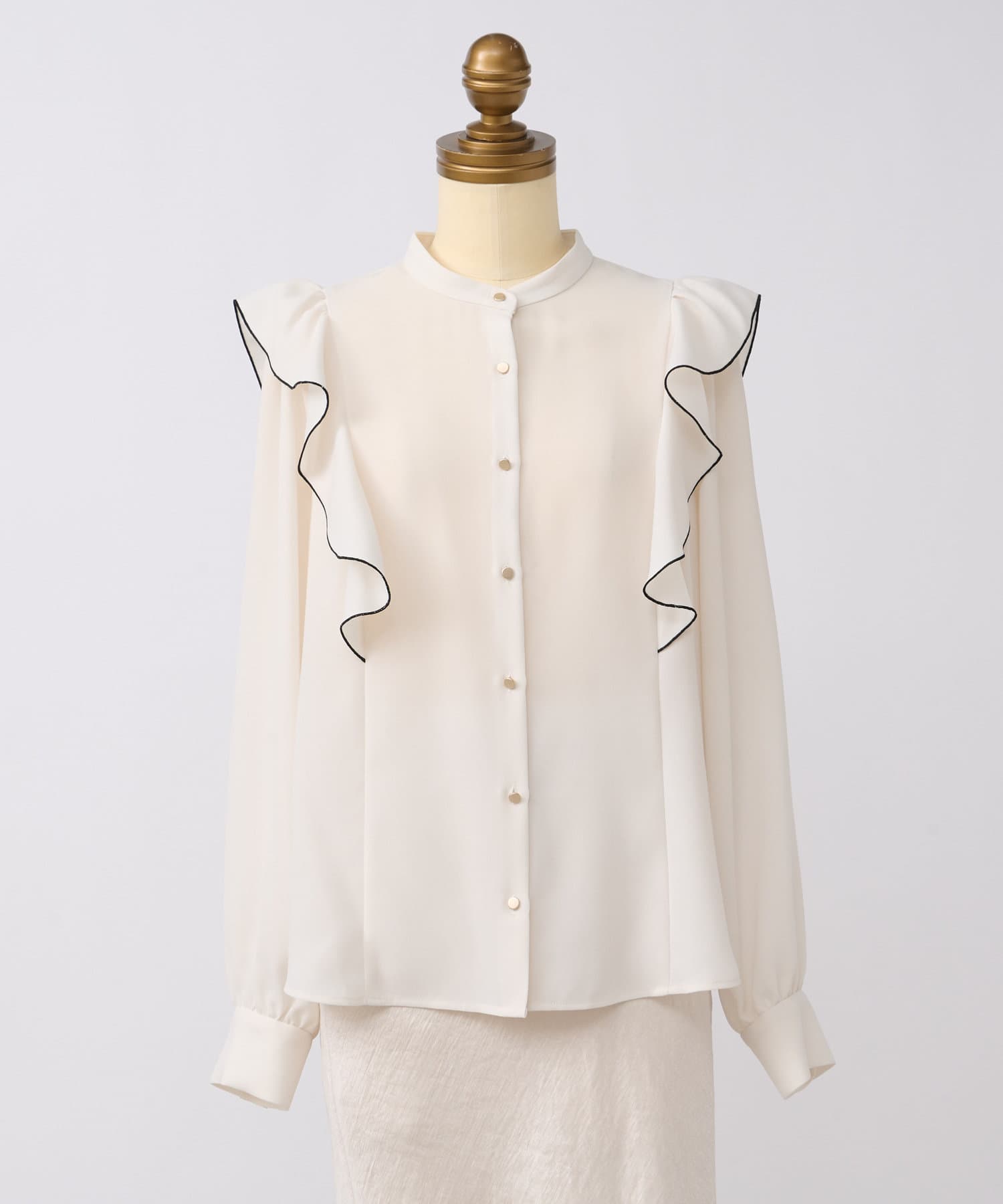 TOP > La boutique BonBon > レディース > トップス > シャツ/ブラウス(ボタン) > バイカラーメローラッフルブラウス