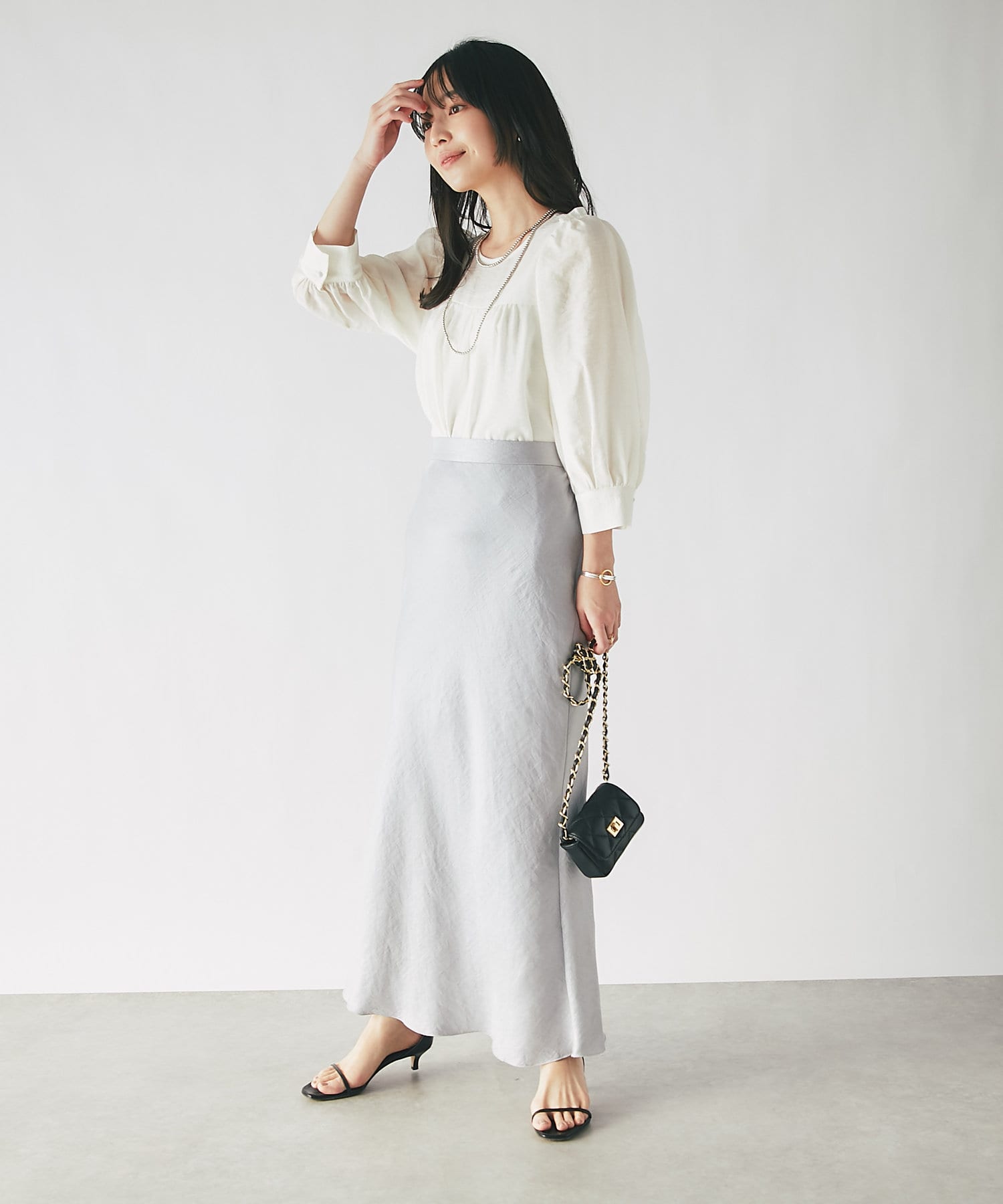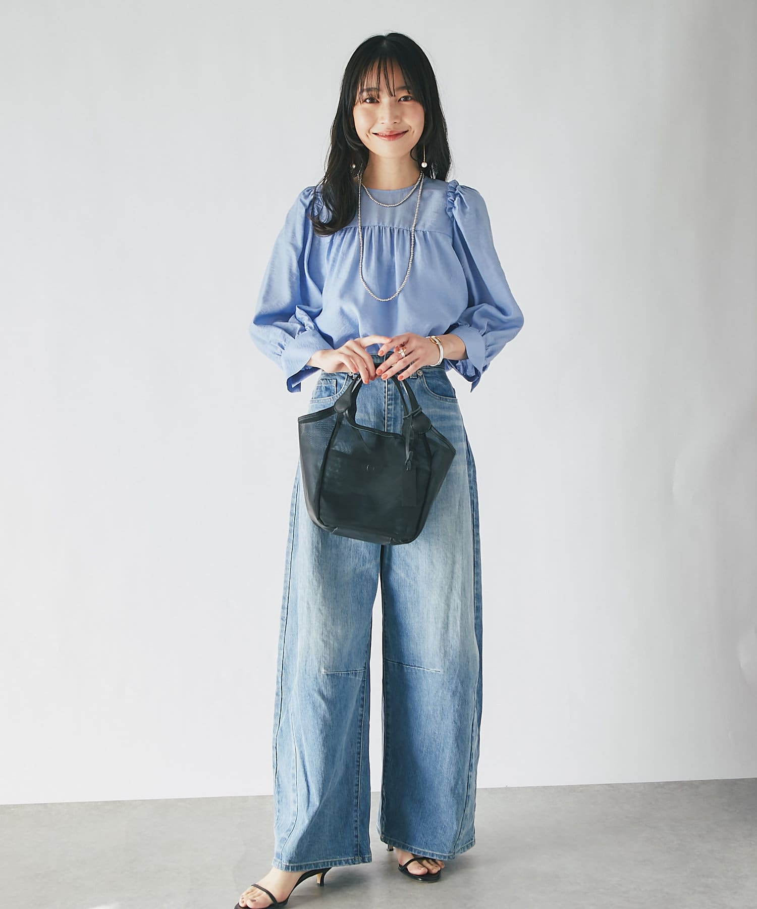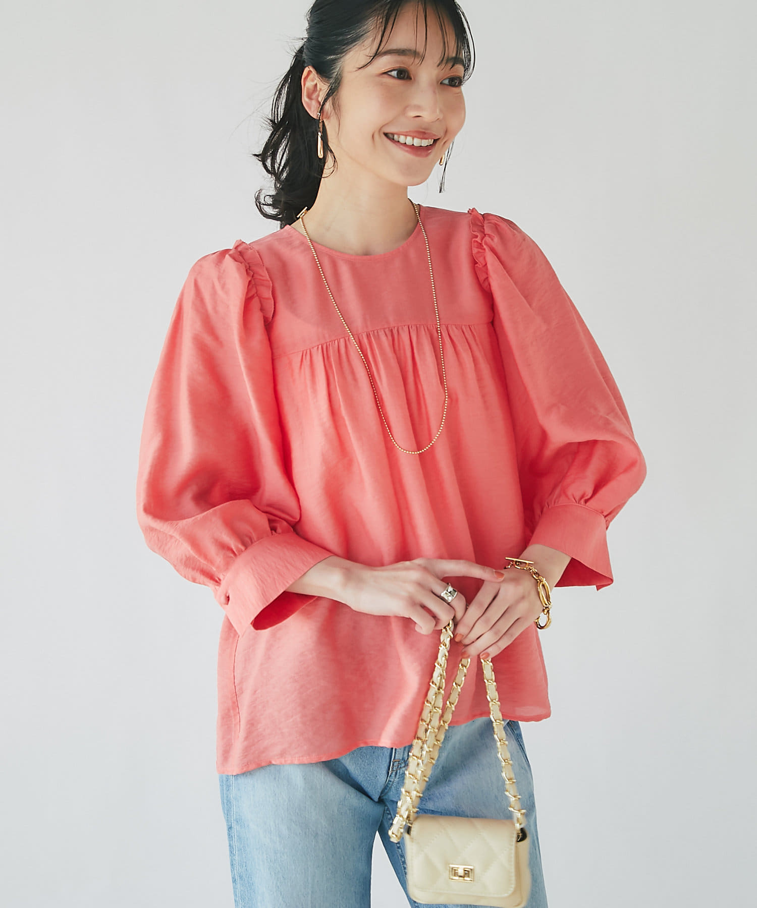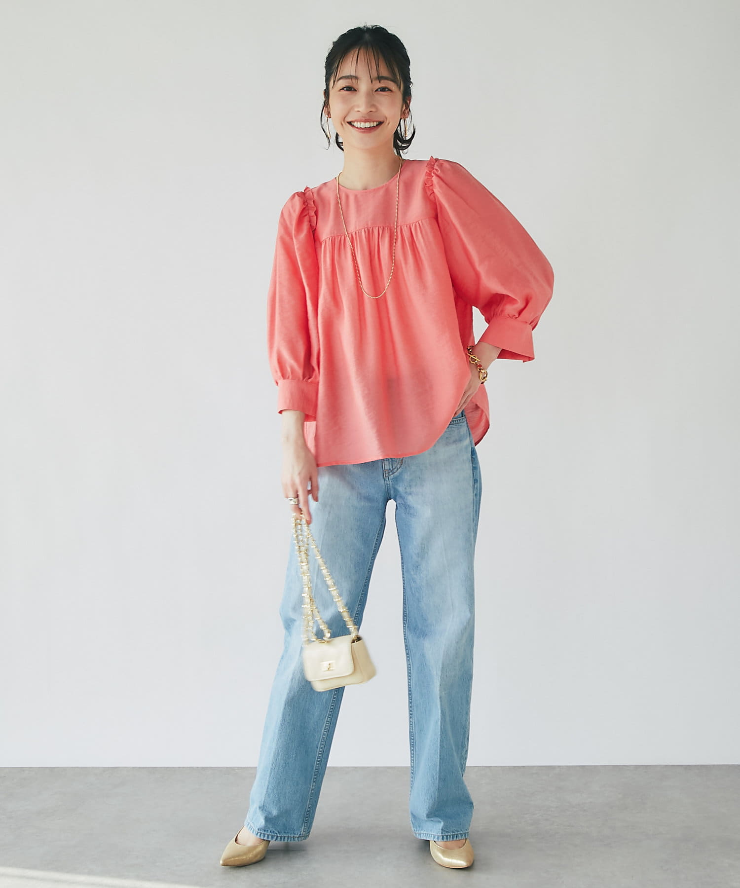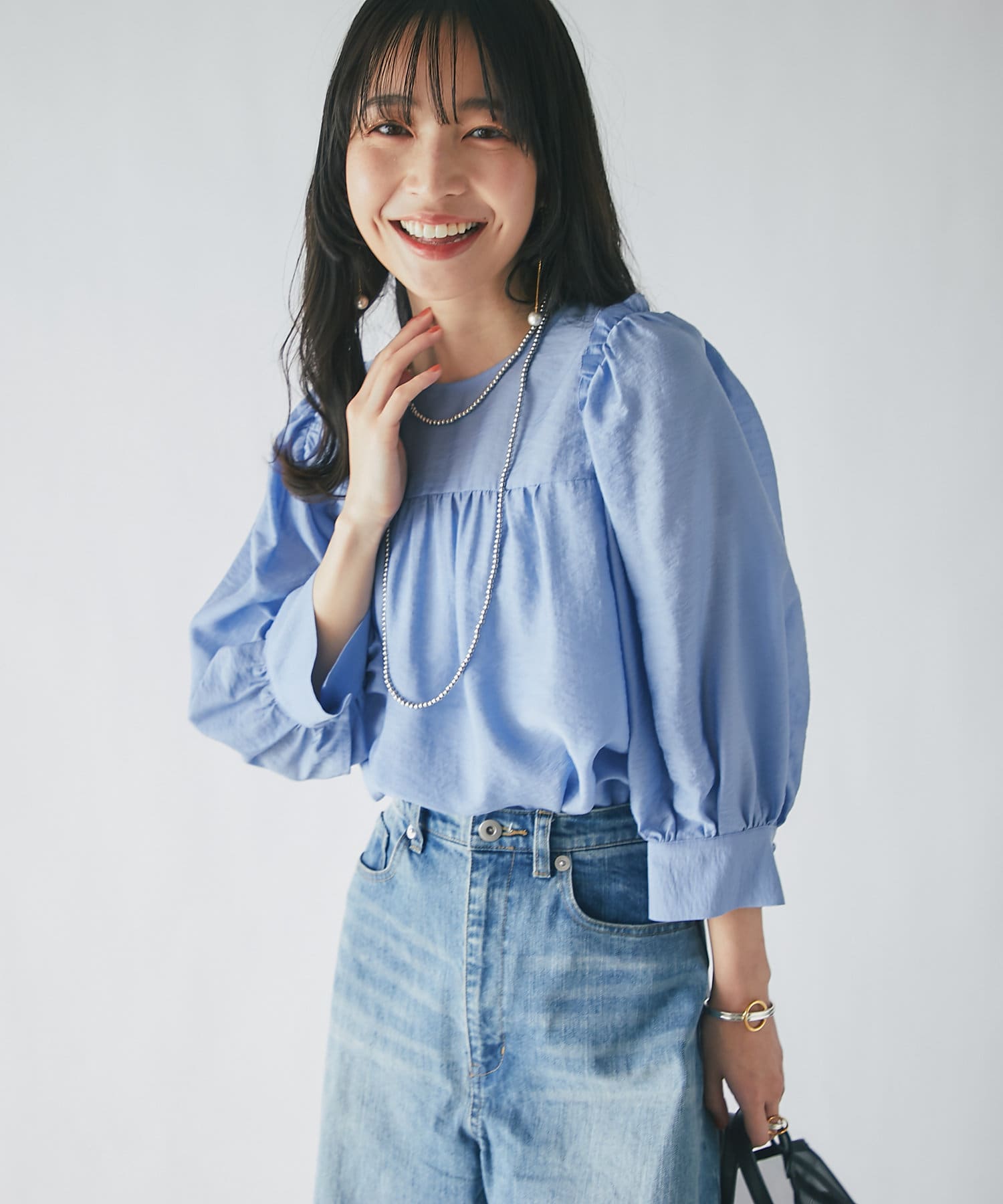 スカートに合わせたフェミニンコーデも、デニムに合わせたカジュアルコーデにもマッチ。