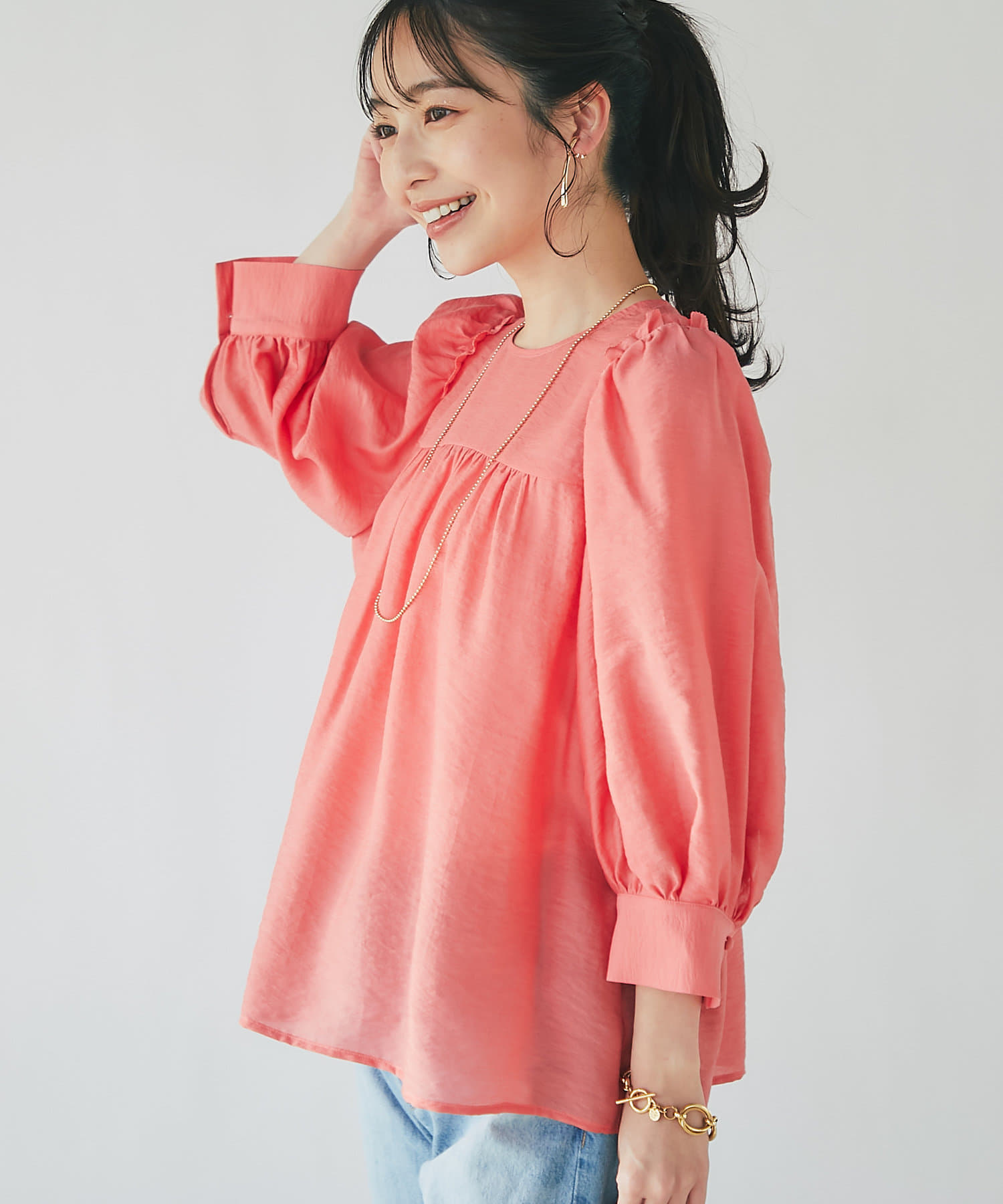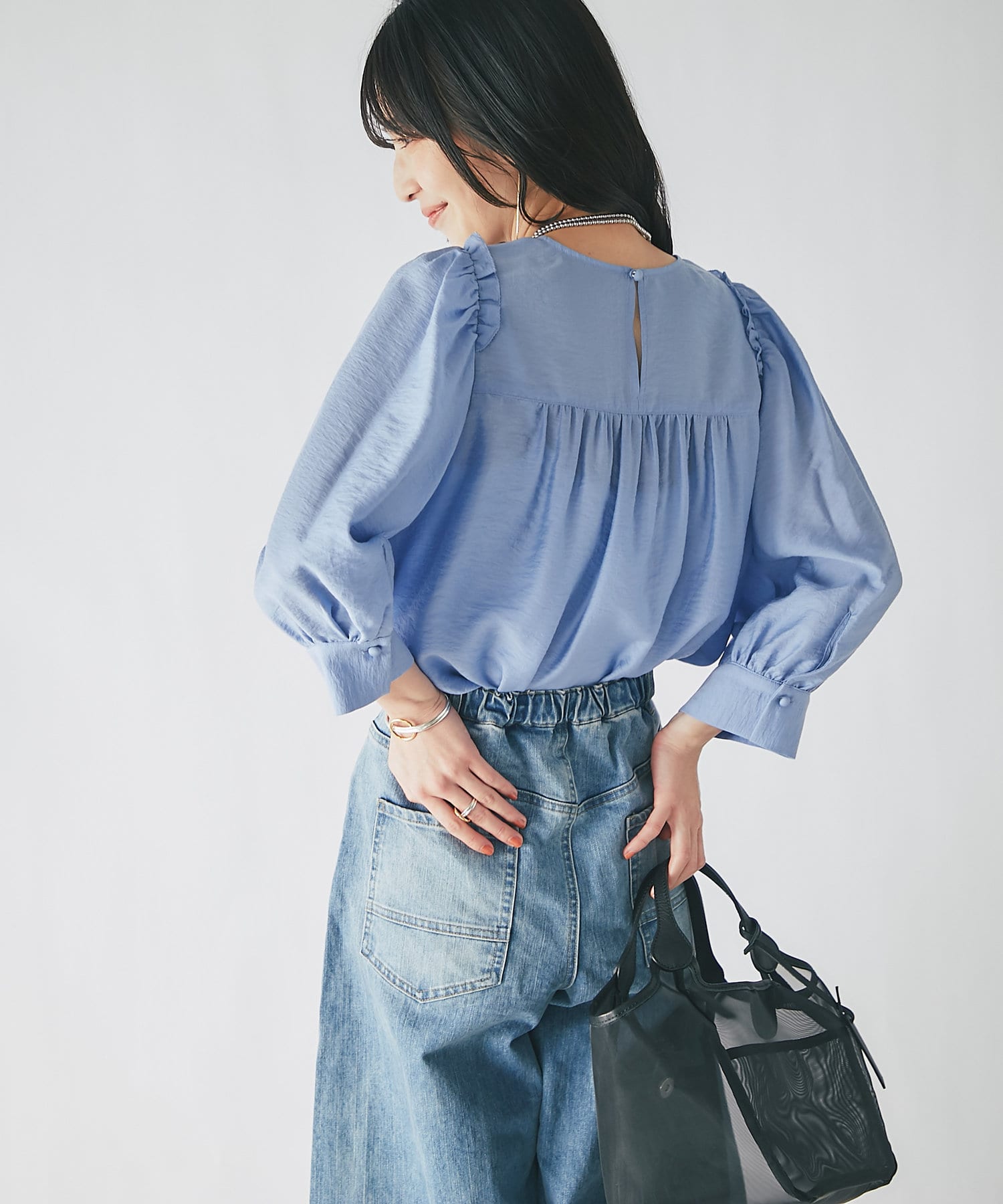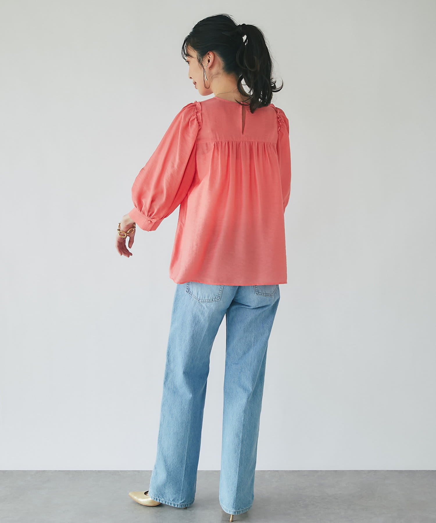 シアーボリュームスリーブブラウス
