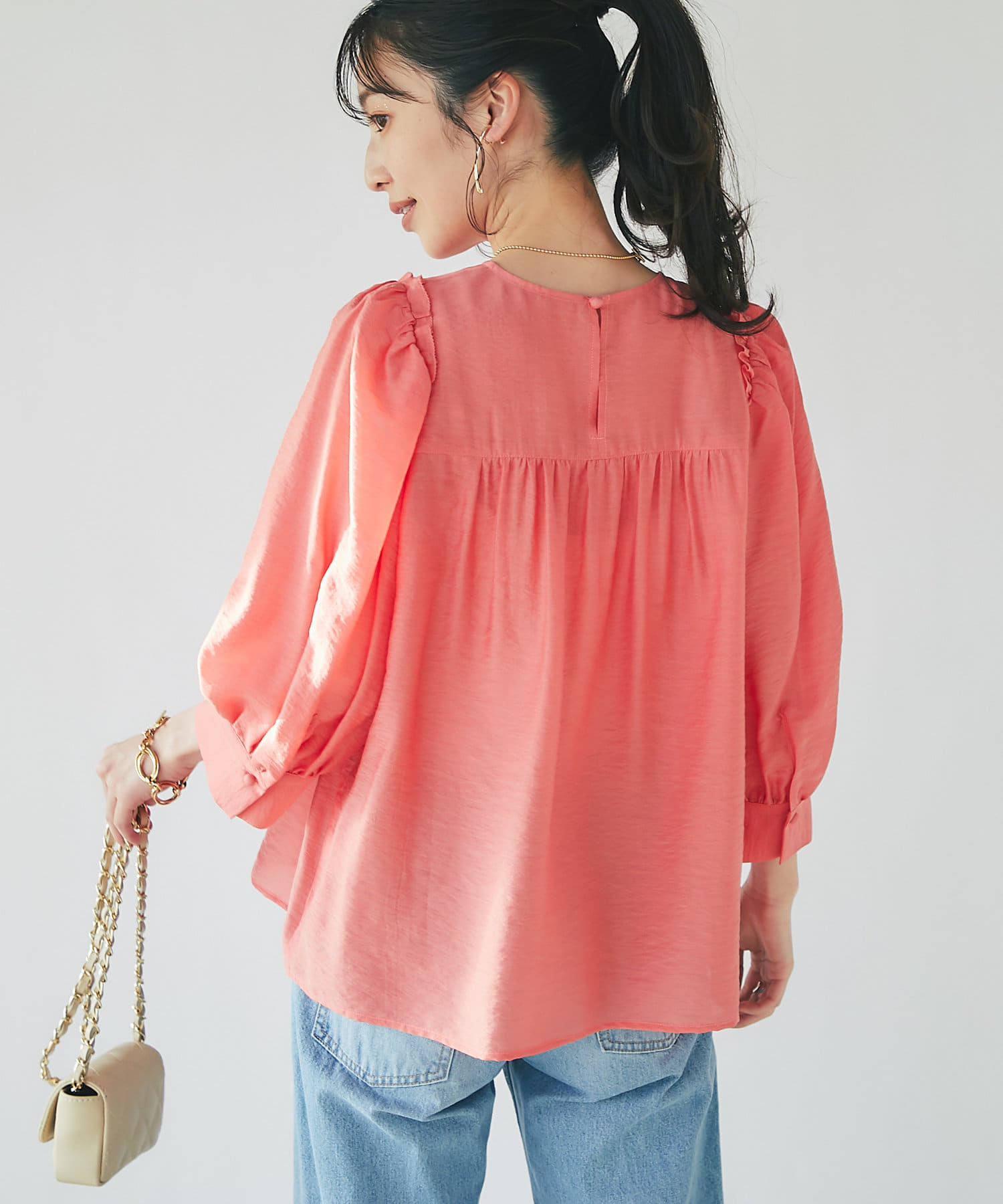 柔らかな生地と抜け感のあるリラックスシルエットで軽やかに着用できます。