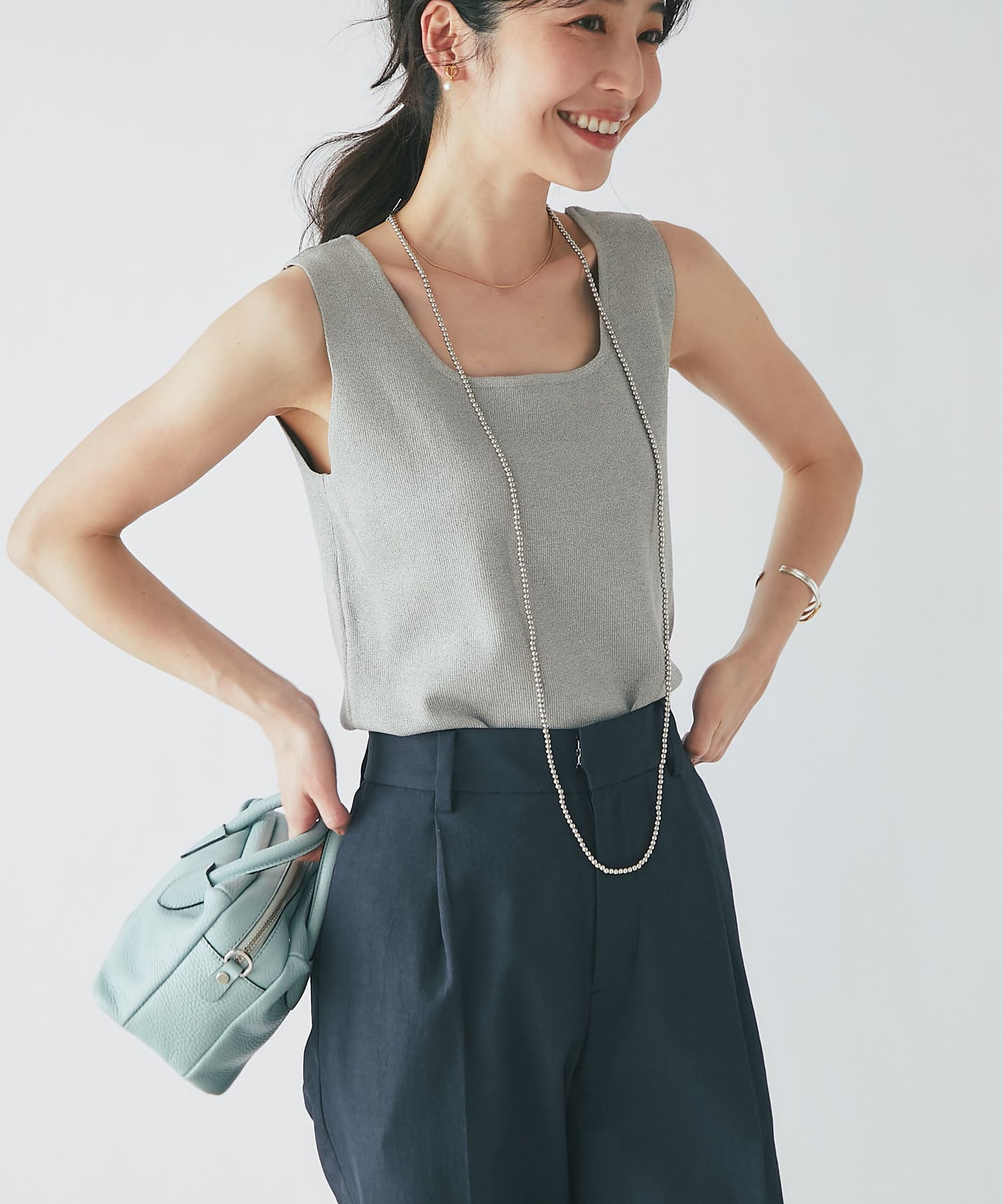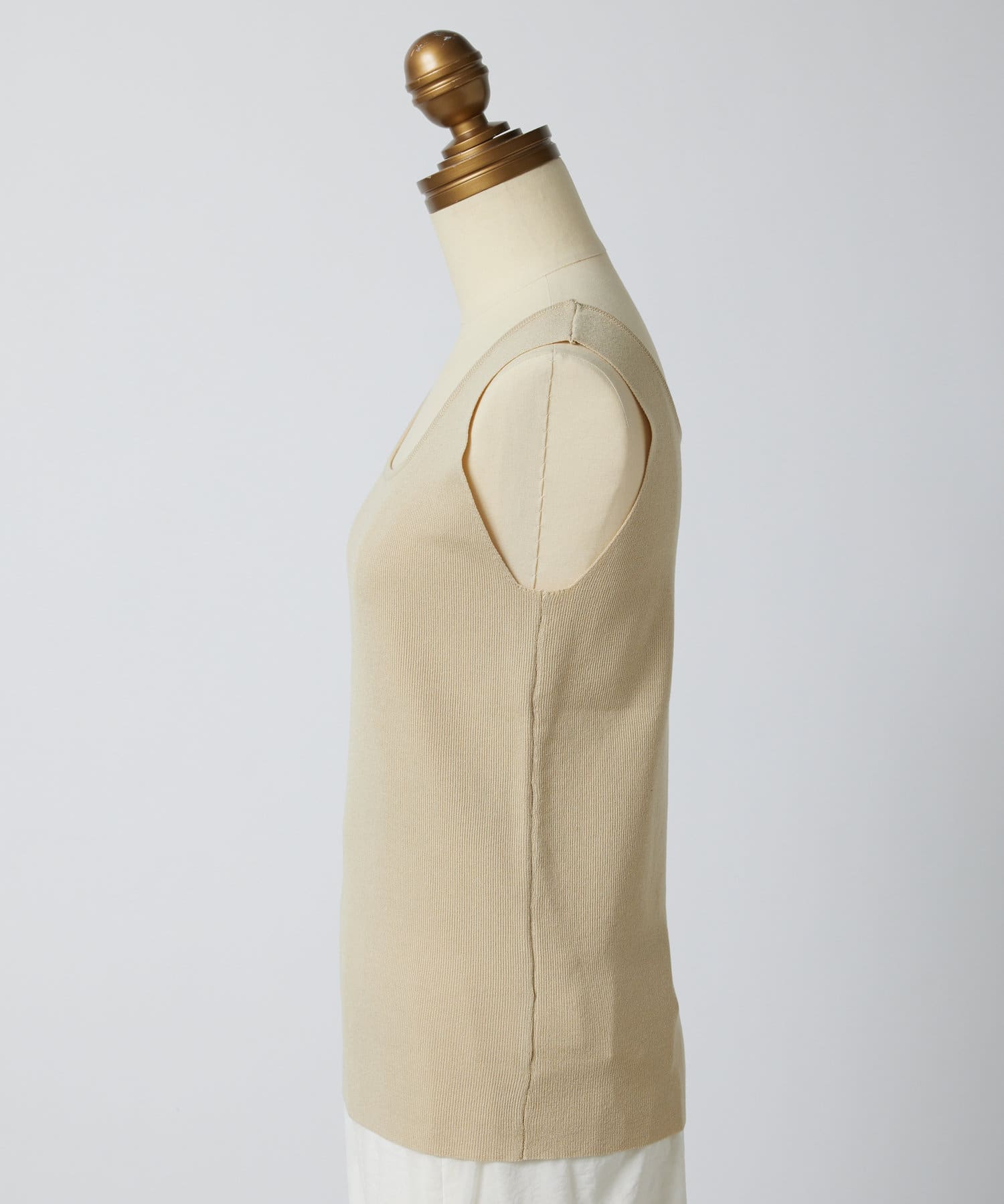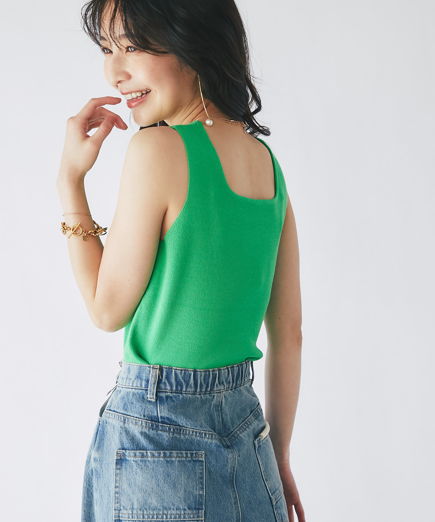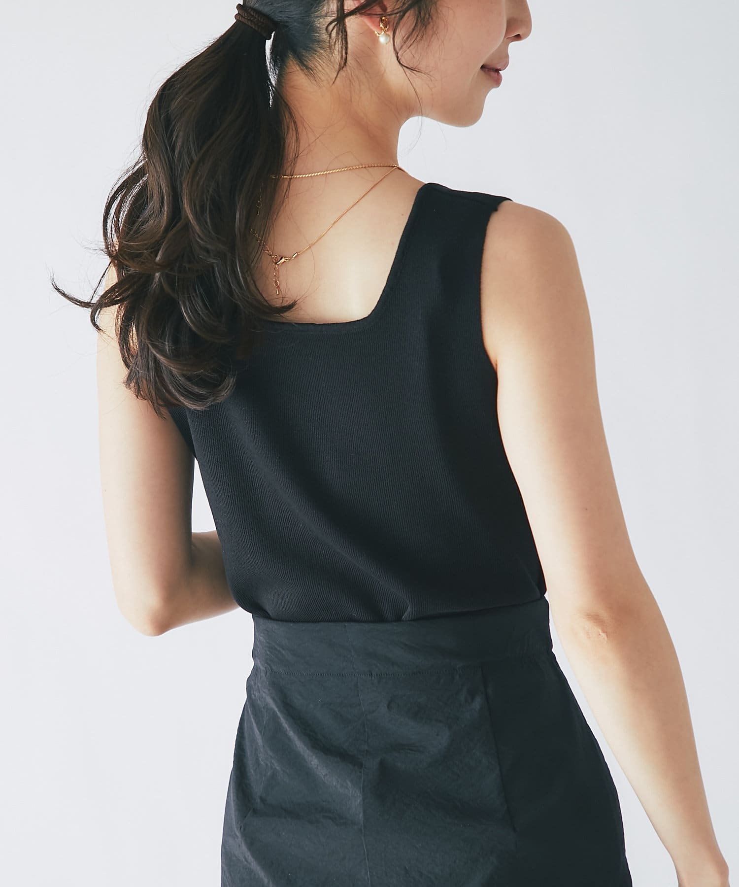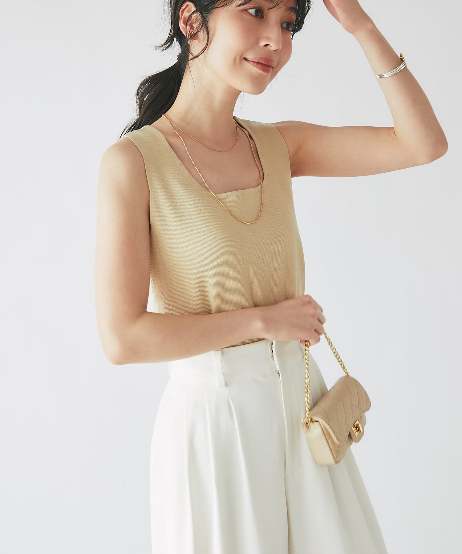ドライ感がありながらも、肌なじみの良い滑らかさも併せ持つニットタンク。