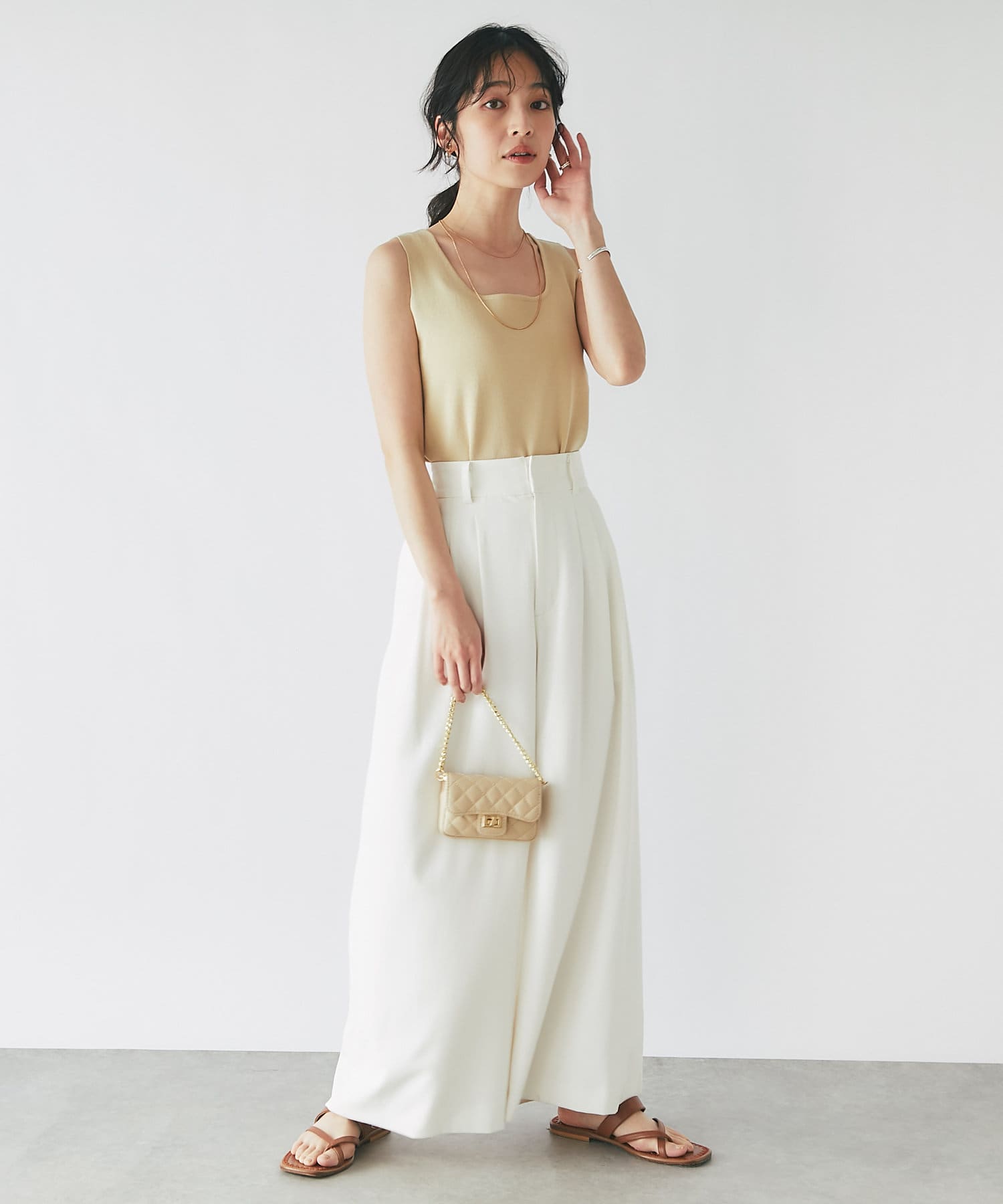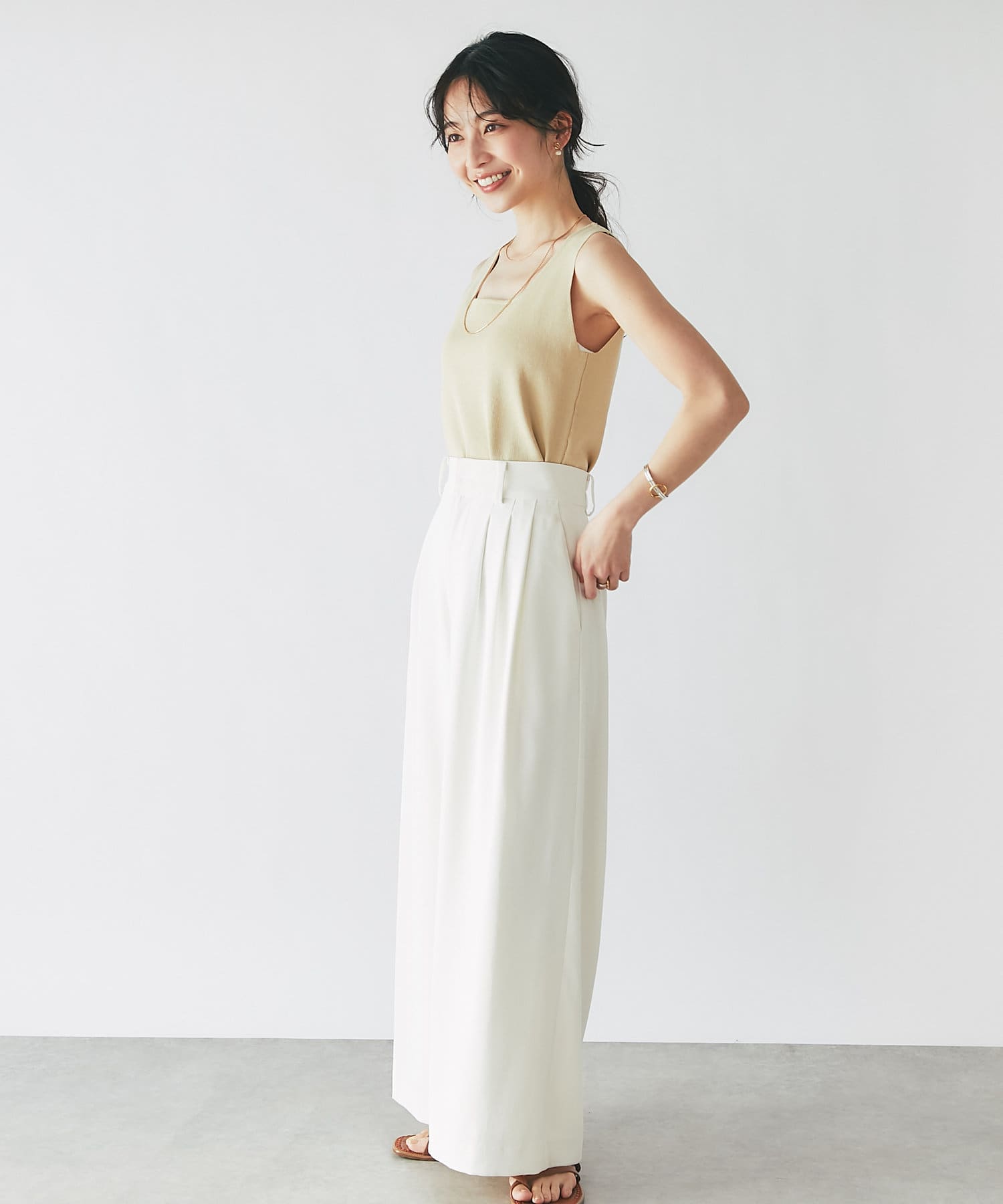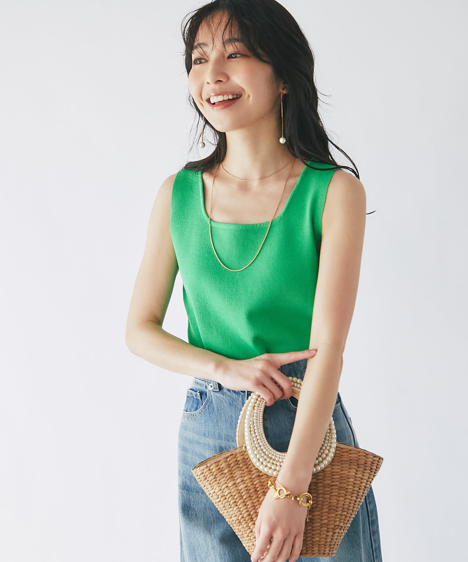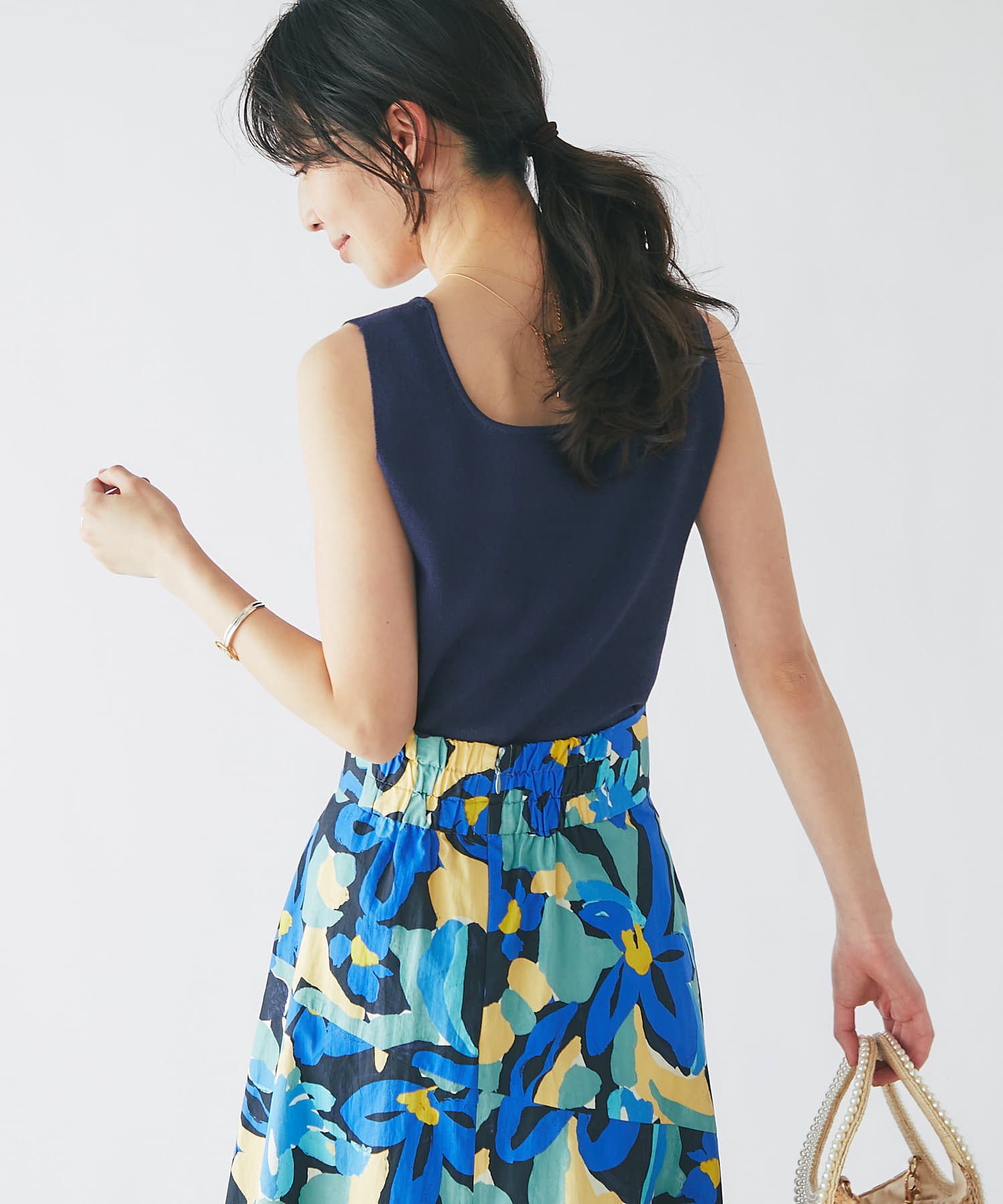 ドライ感がありながらも、肌なじみの良い滑らかさも併せ持つニットタンク。
