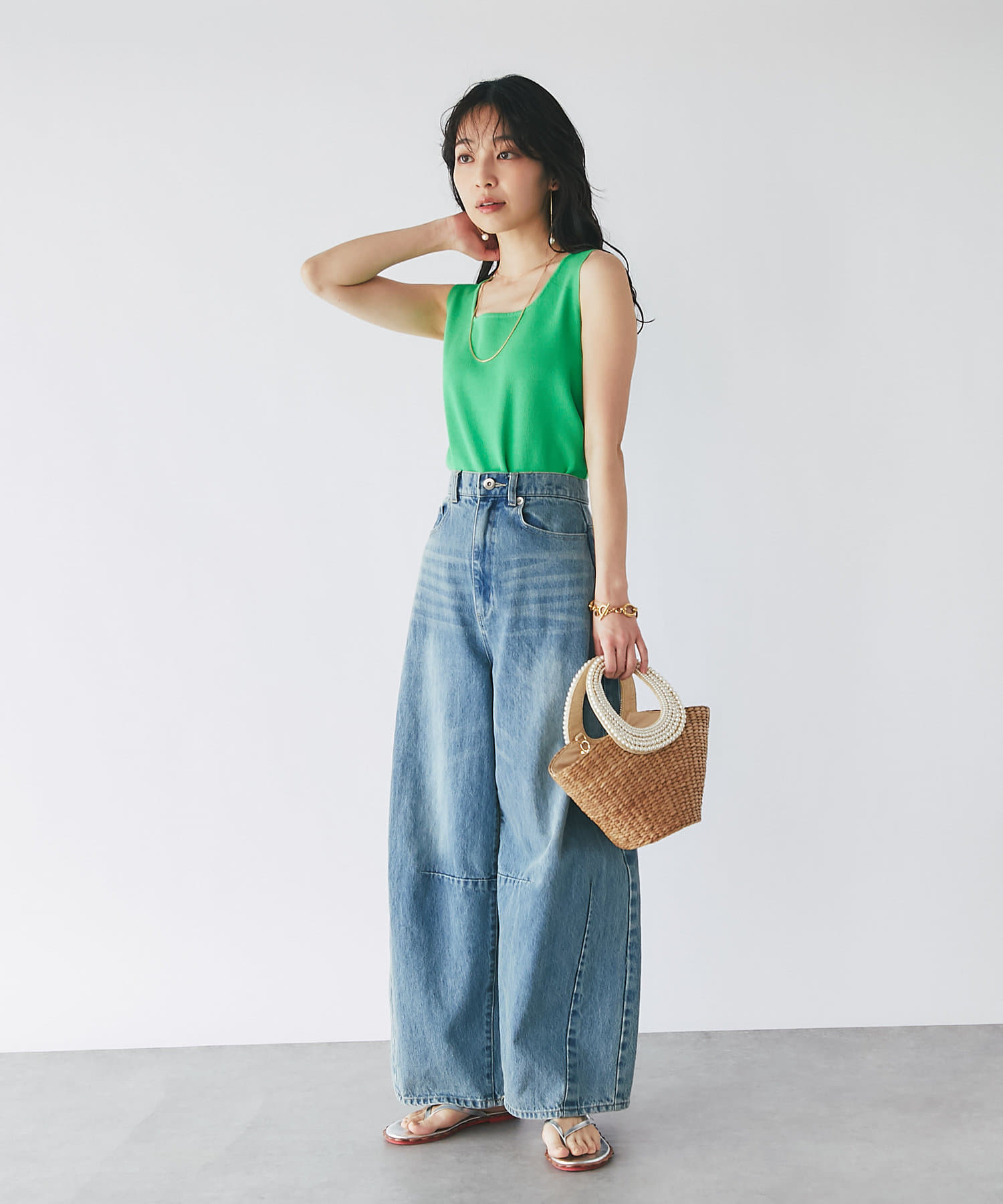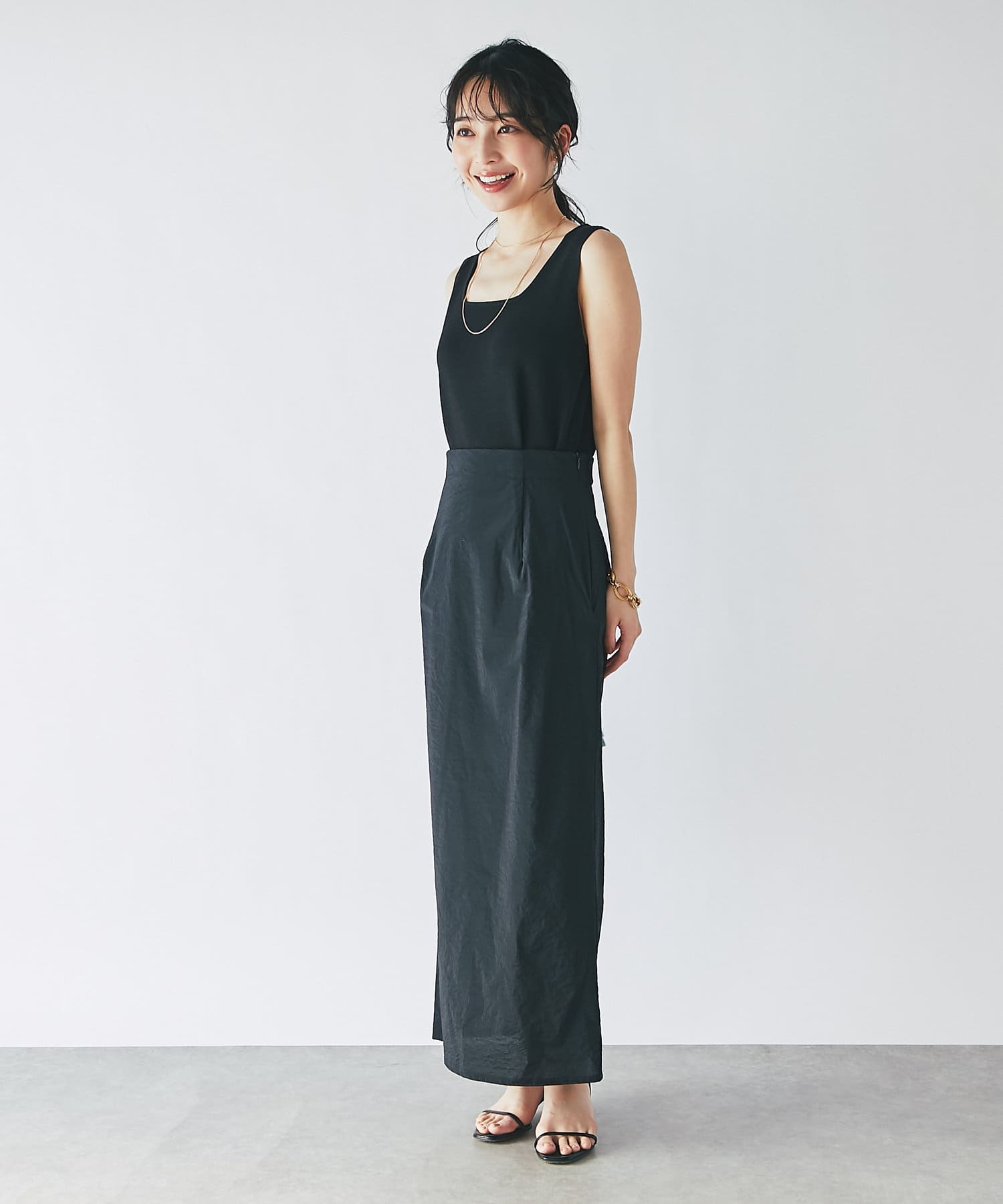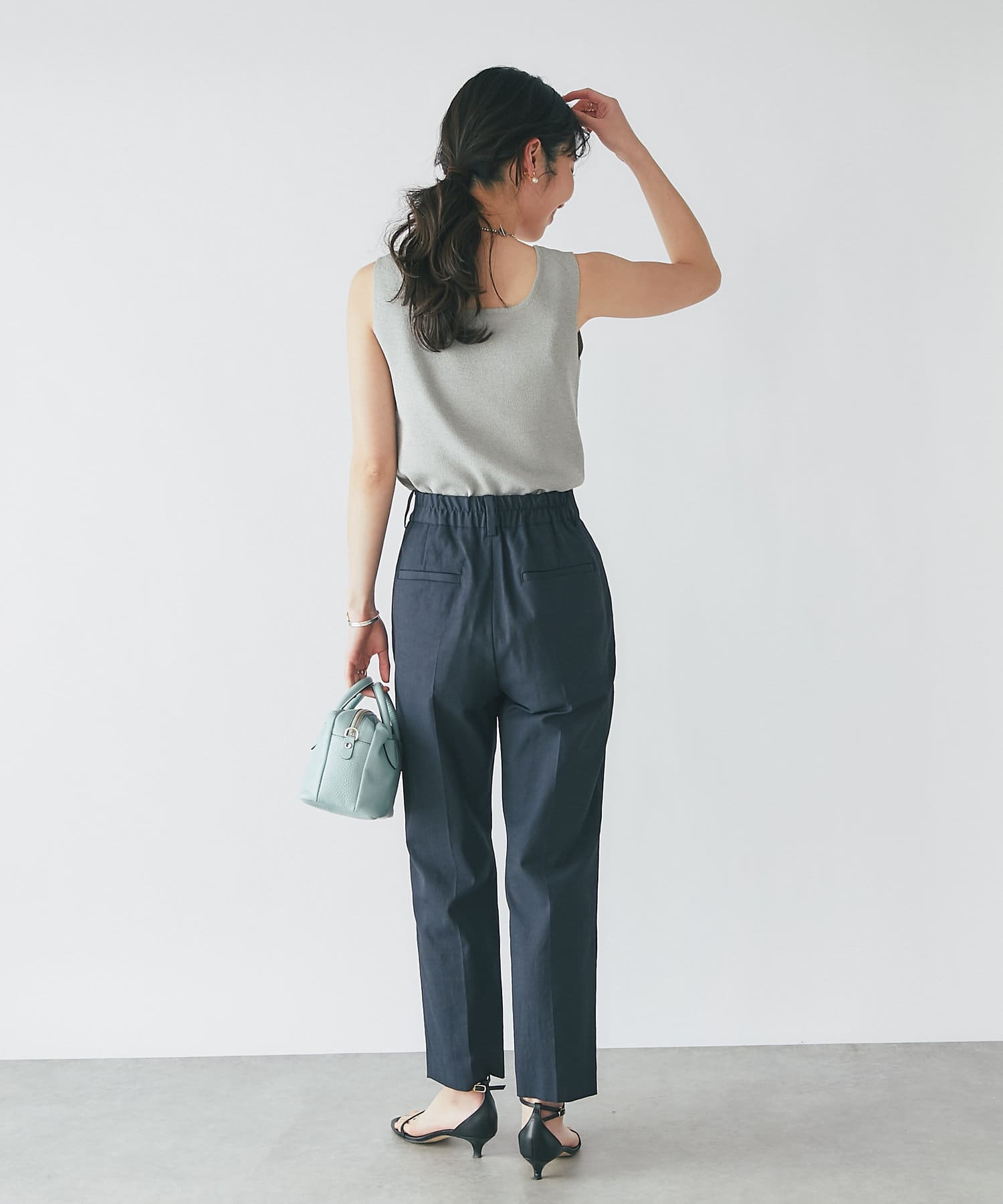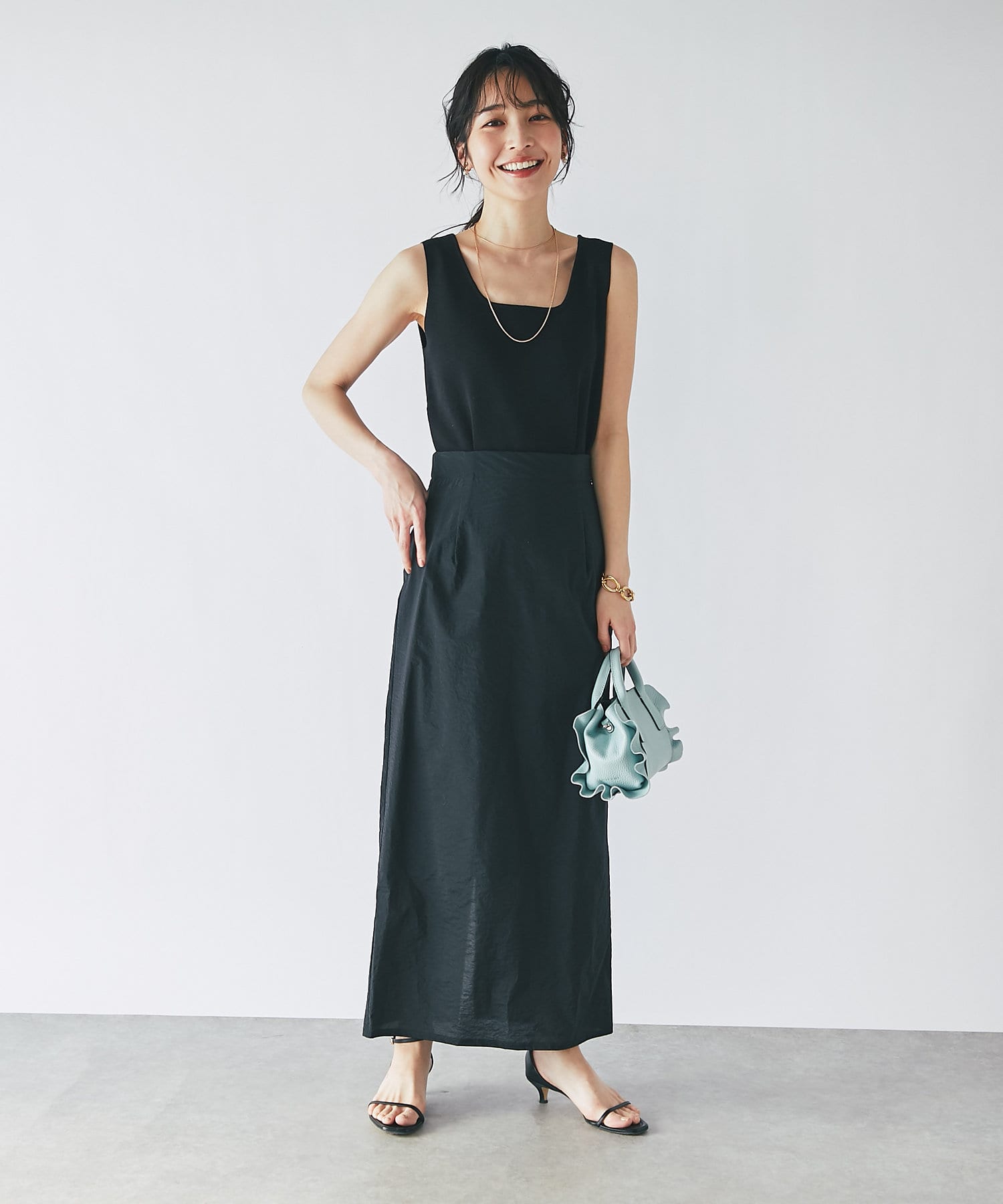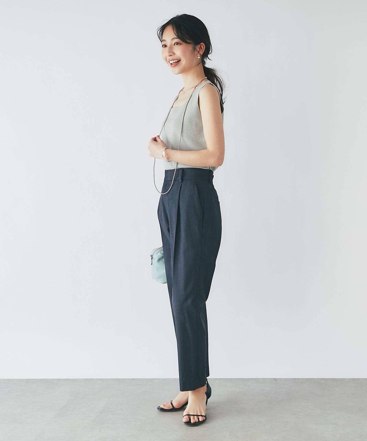 ドライ感がありながらも、肌なじみの良い滑らかさも併せ持つニットタンク。