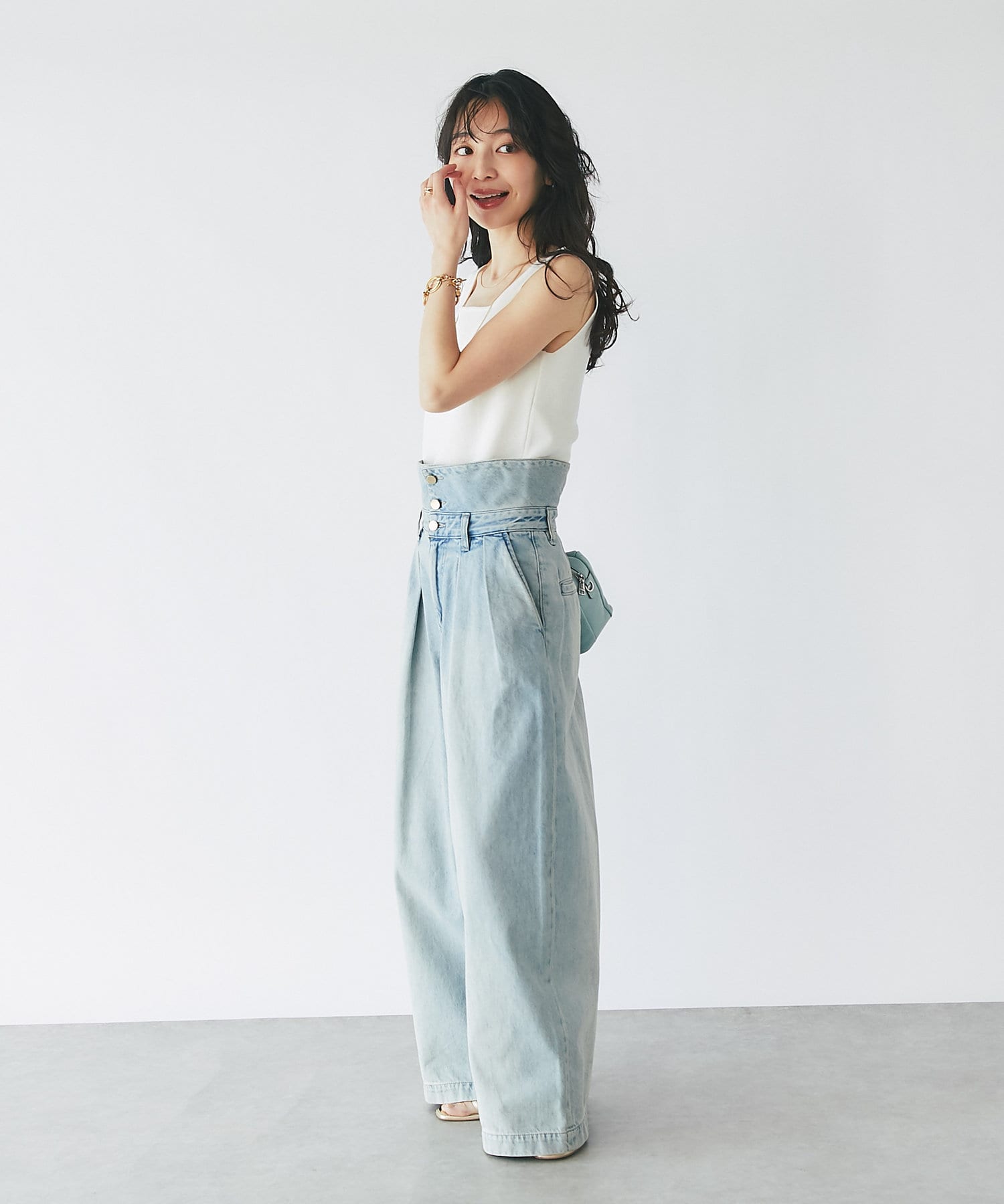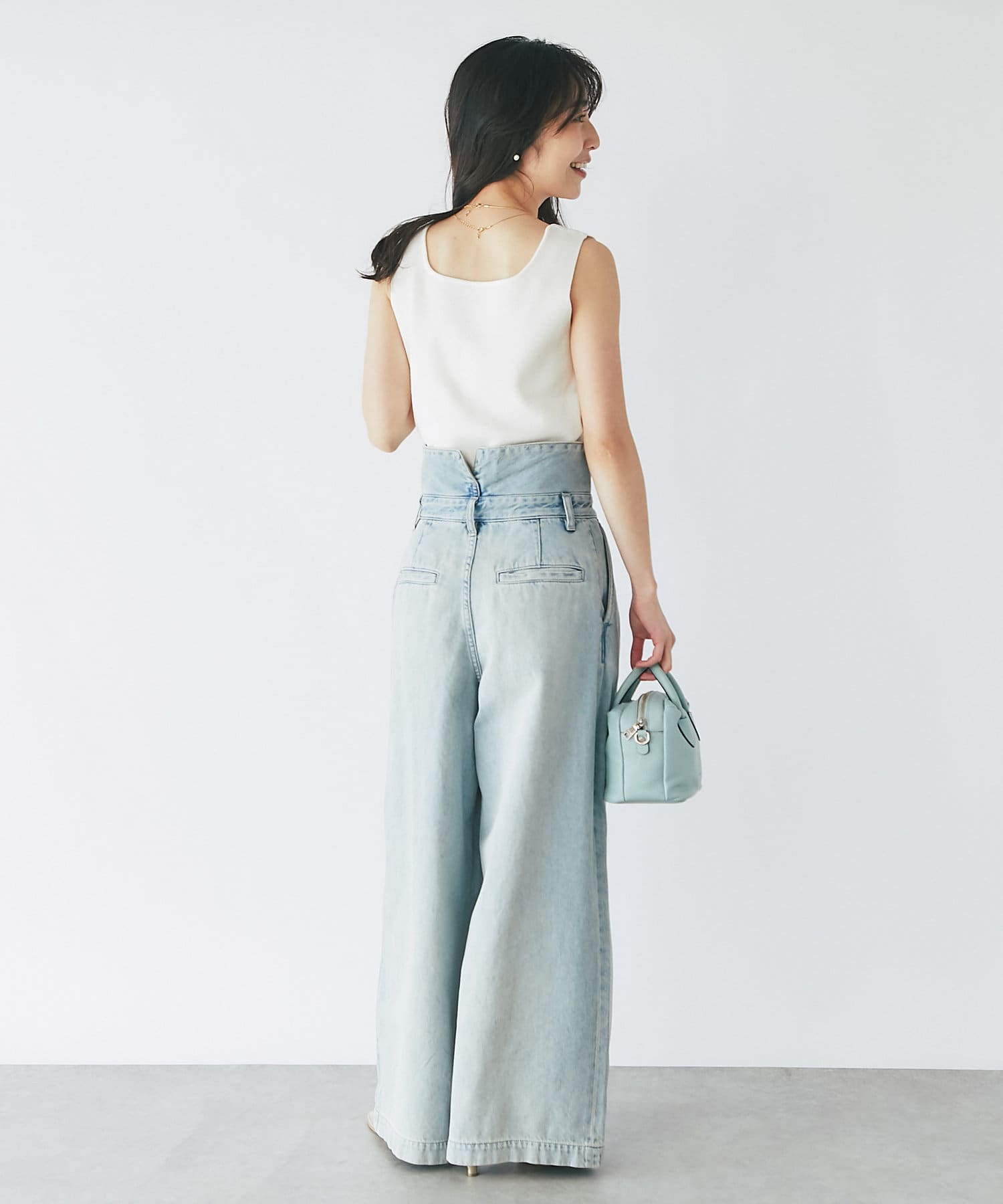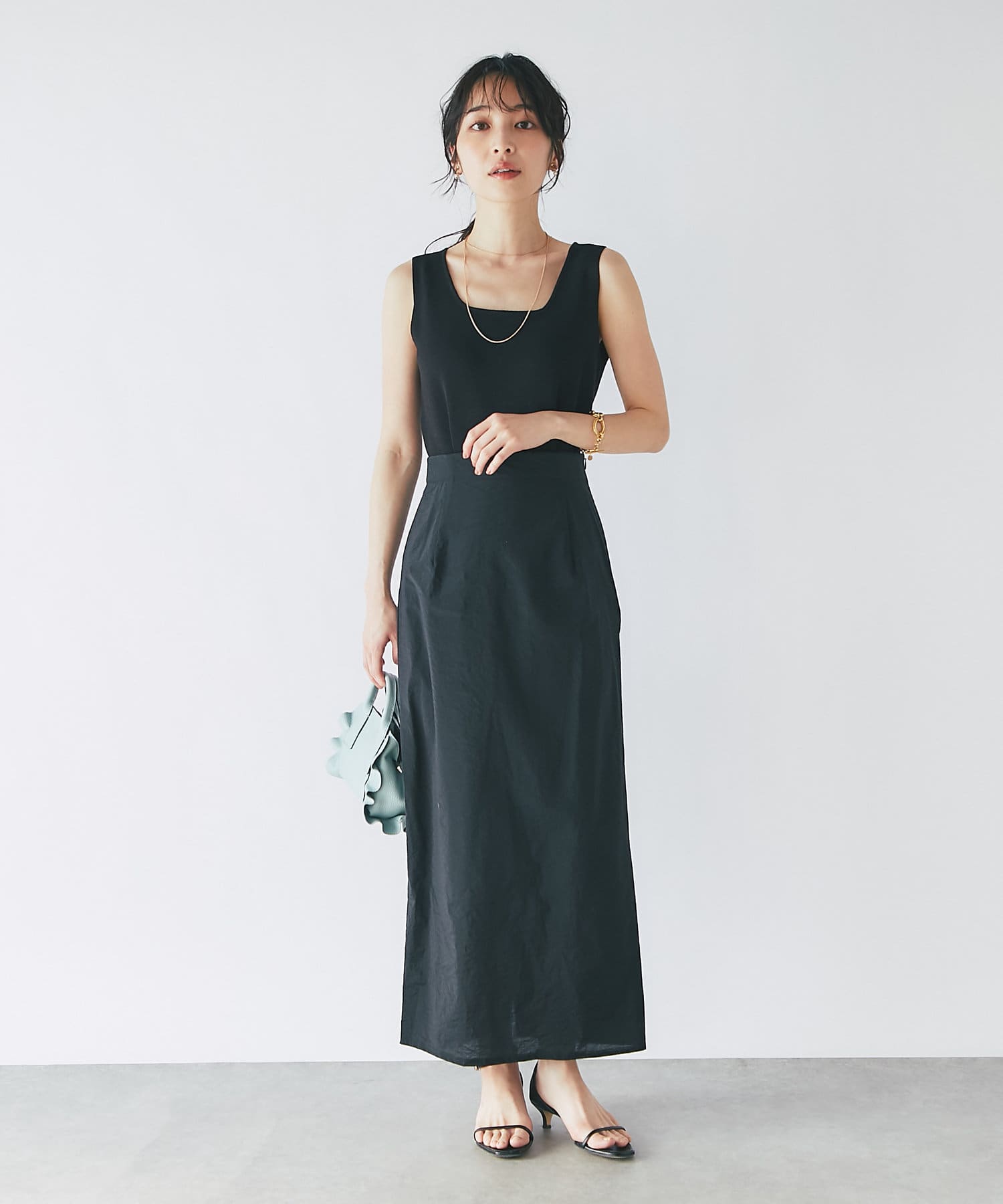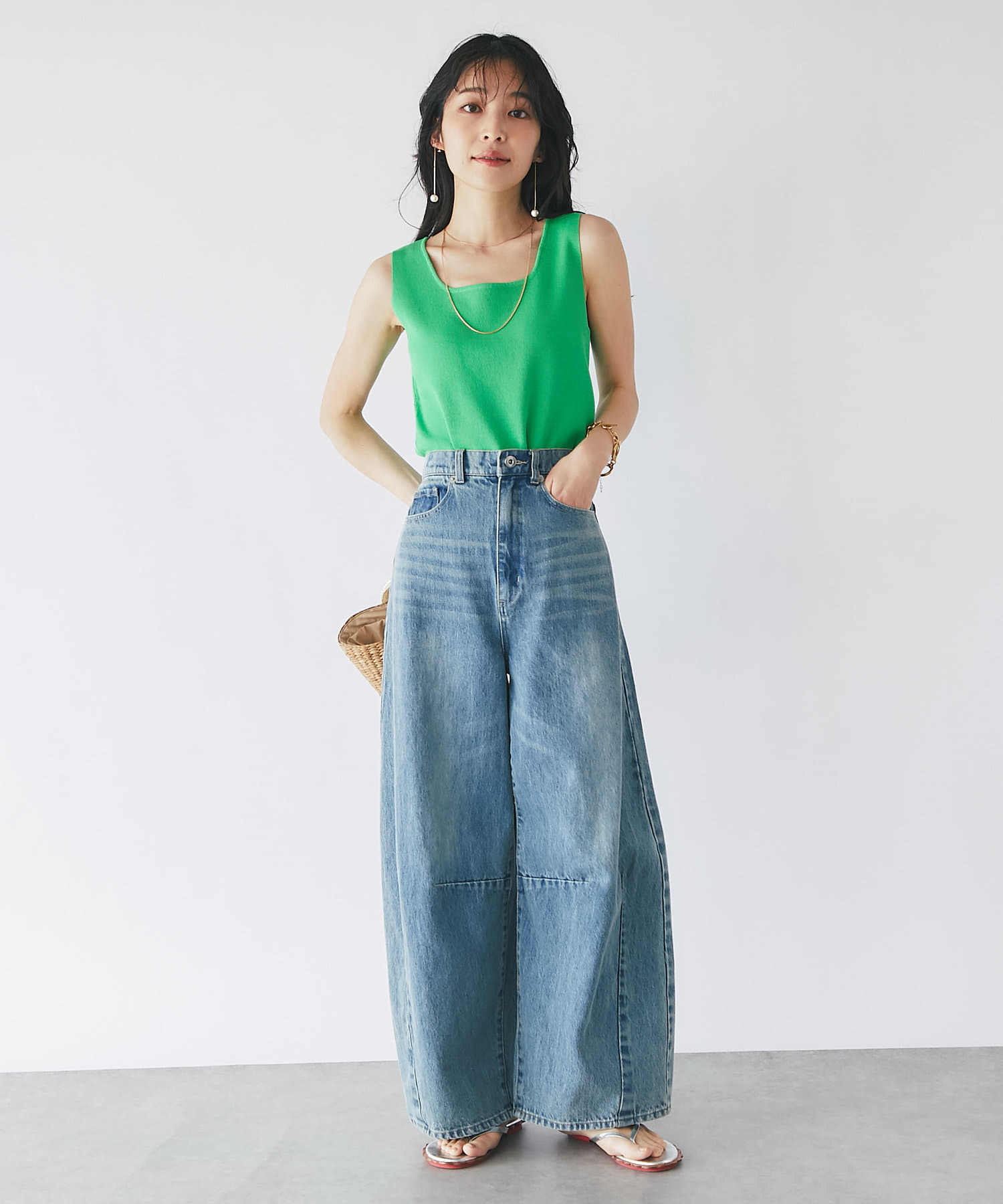 ドライ感がありながらも、肌なじみの良い滑らかさも併せ持つニットタンク。