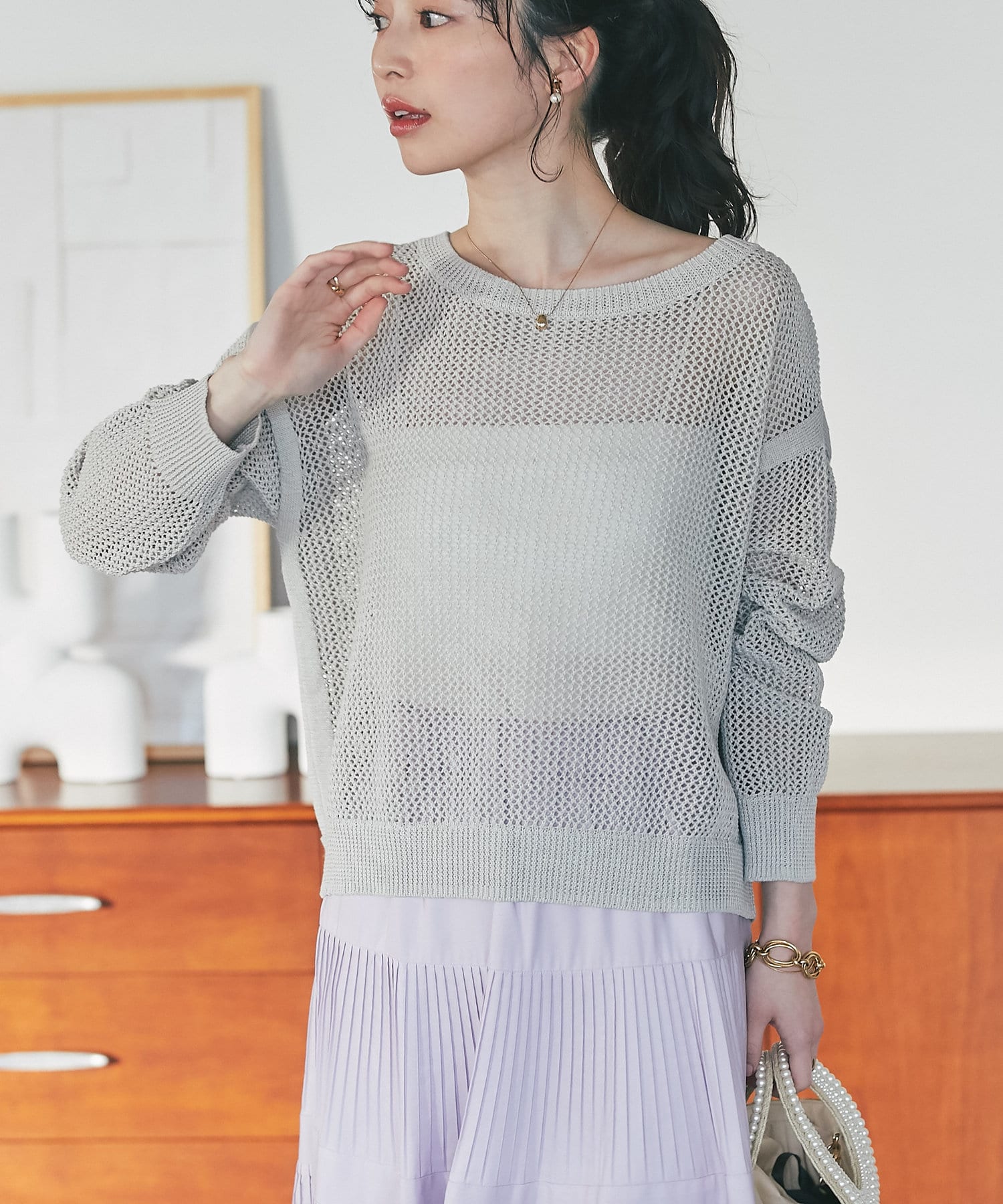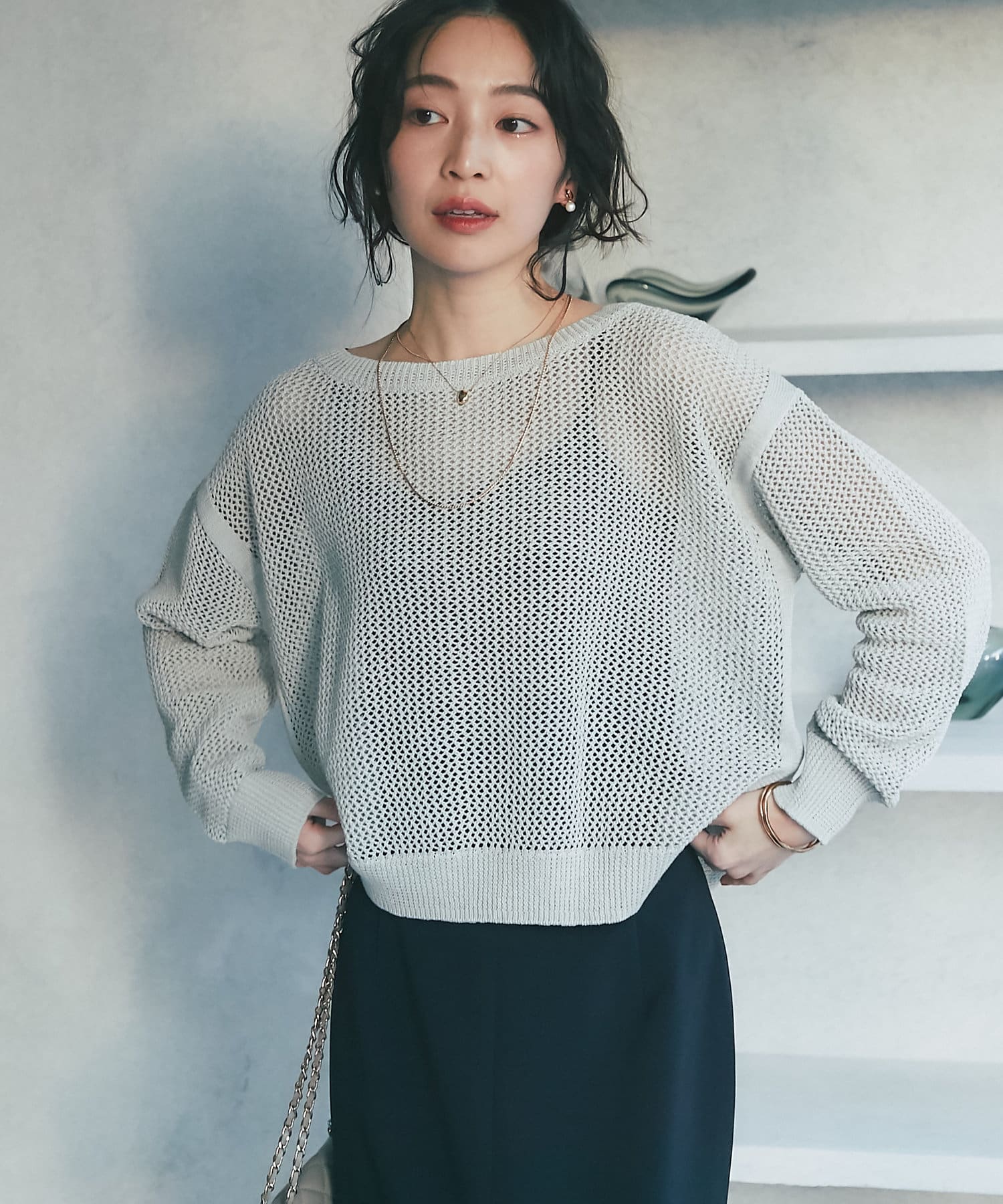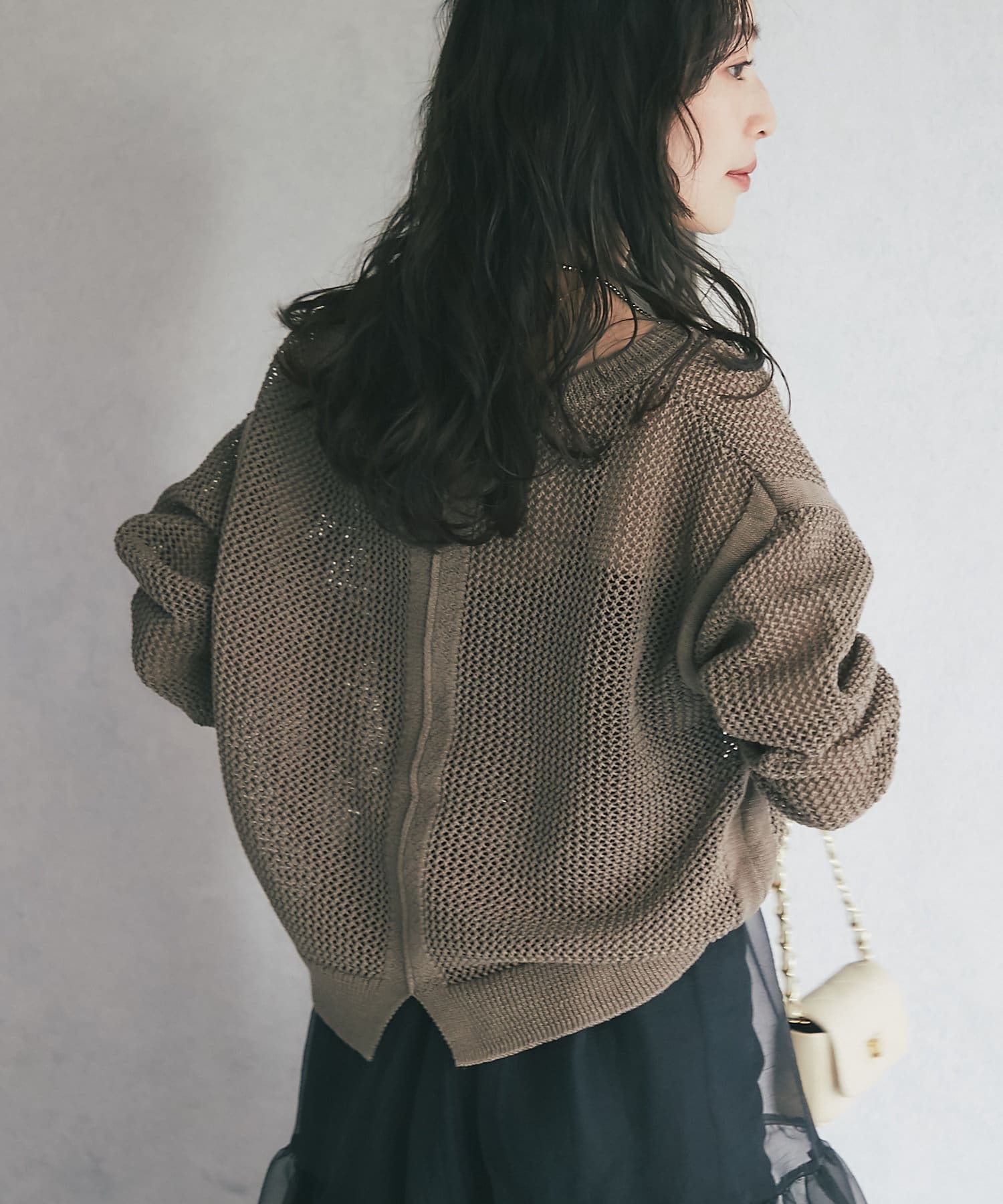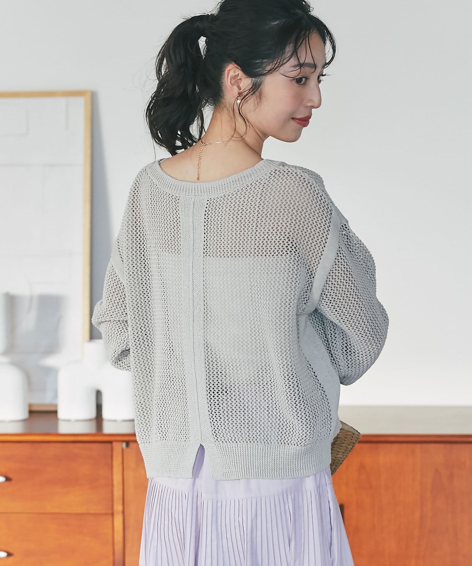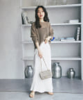 ざっくりした編地とゆったりとしたサイズ感が女性らしさをUP。