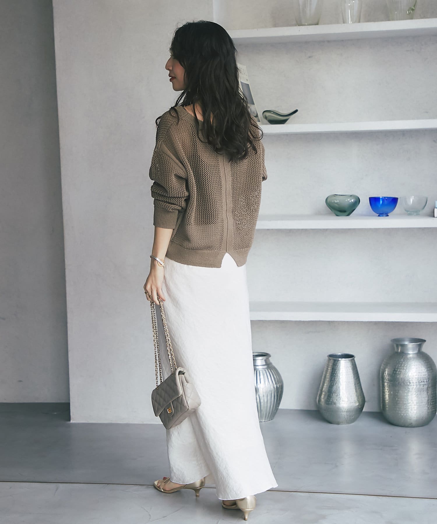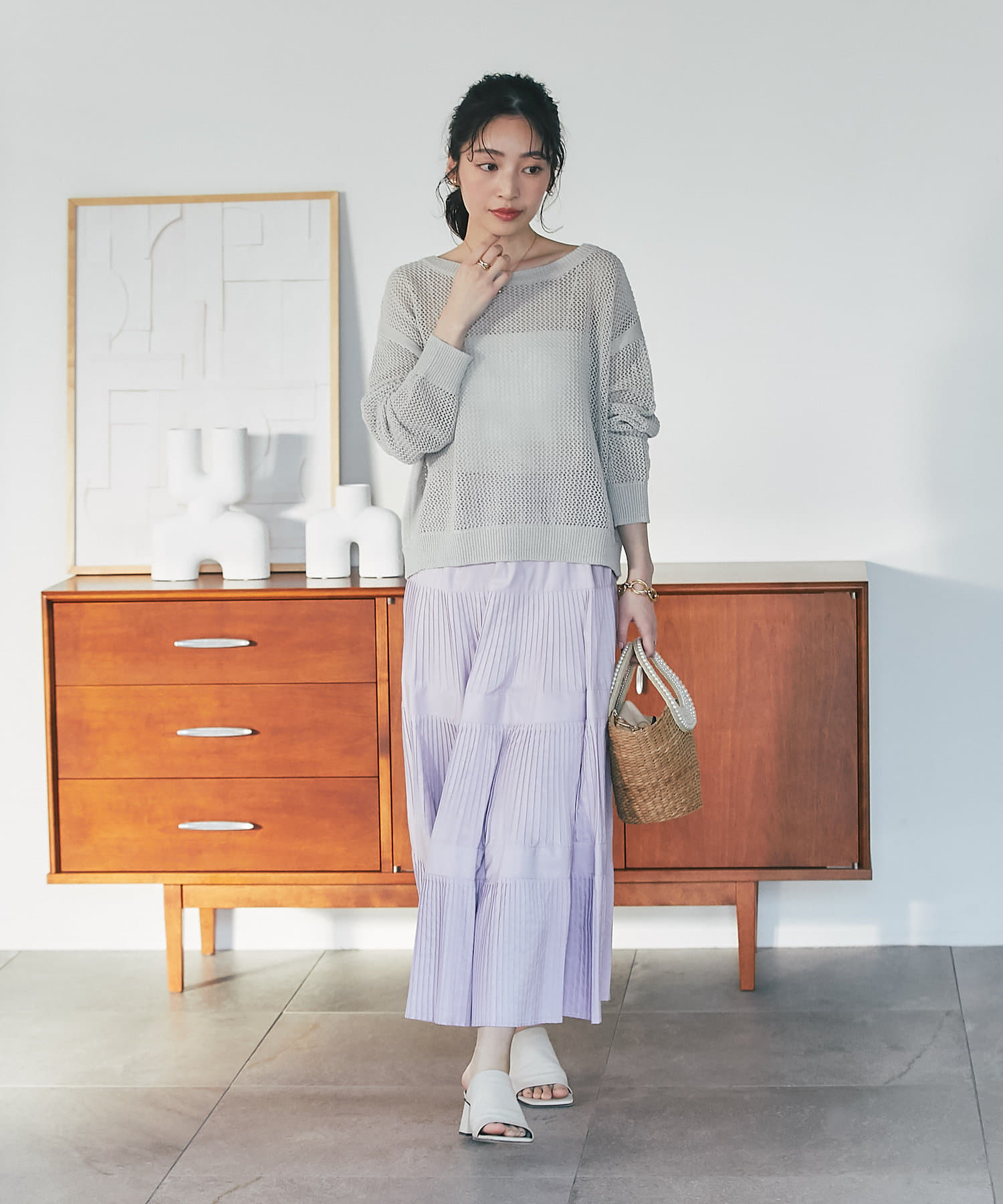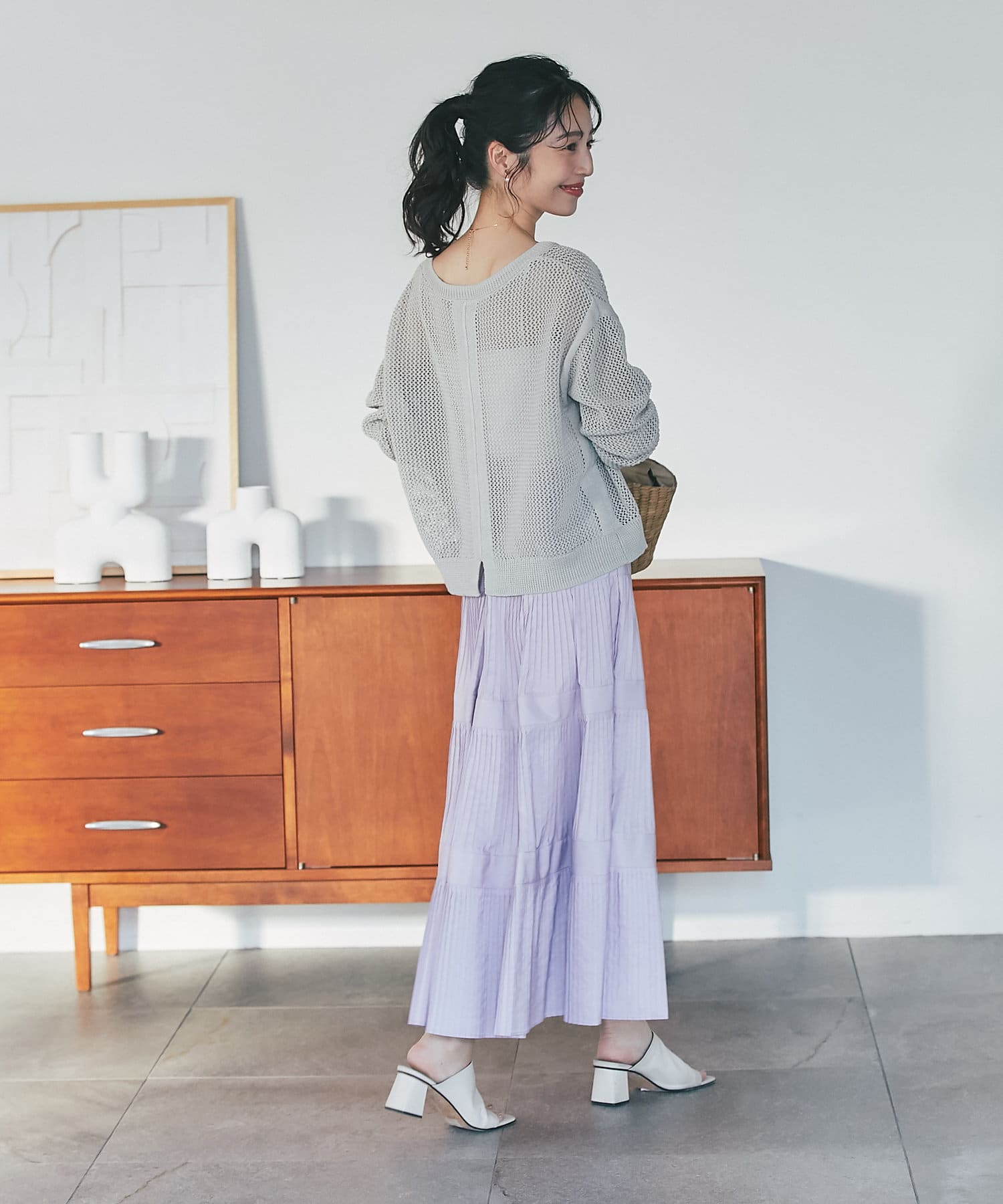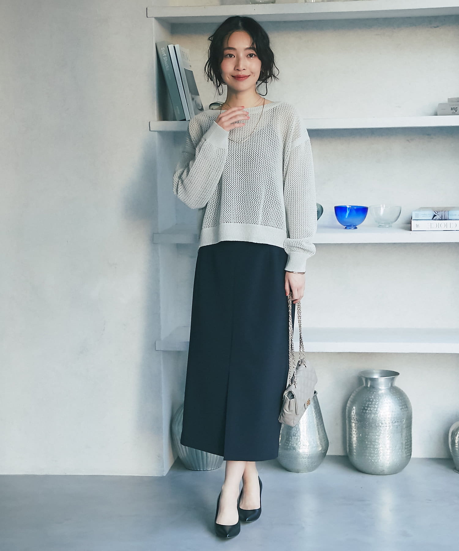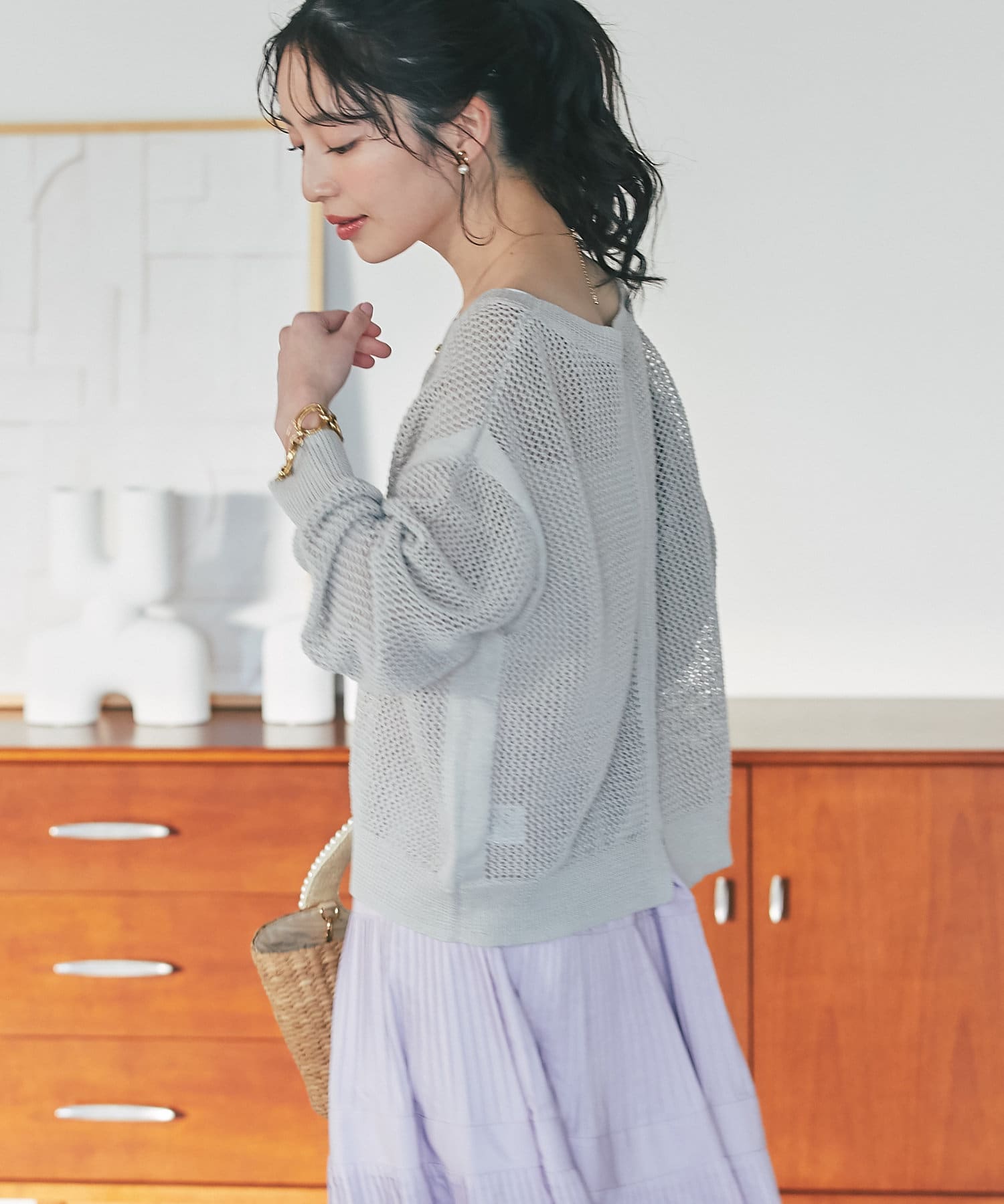 ざっくりした編地とゆったりとしたサイズ感が女性らしさをUP。