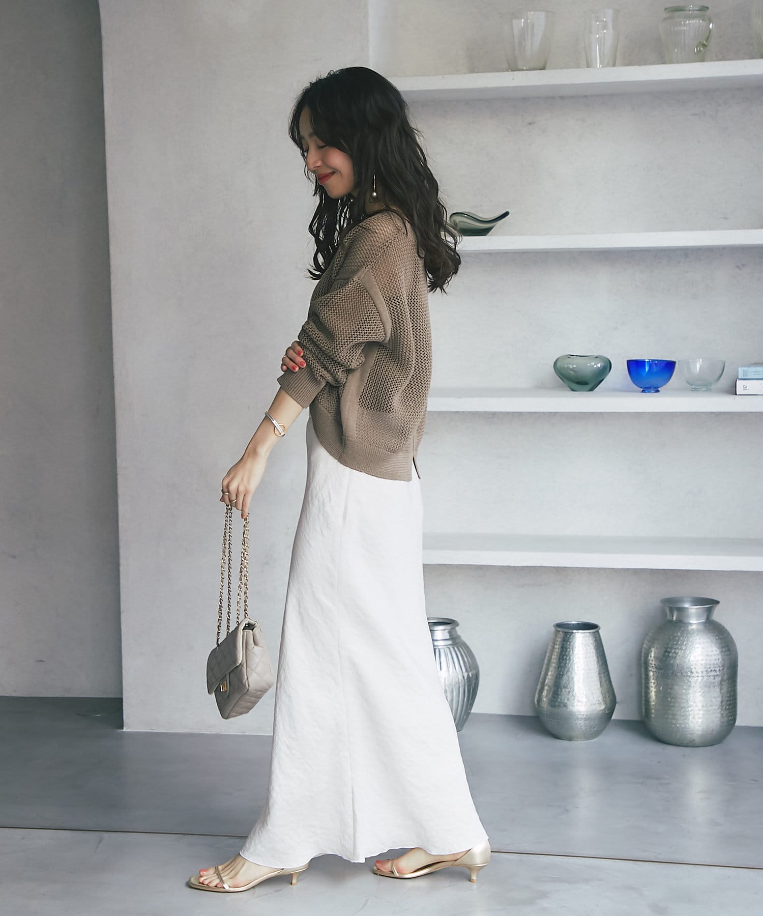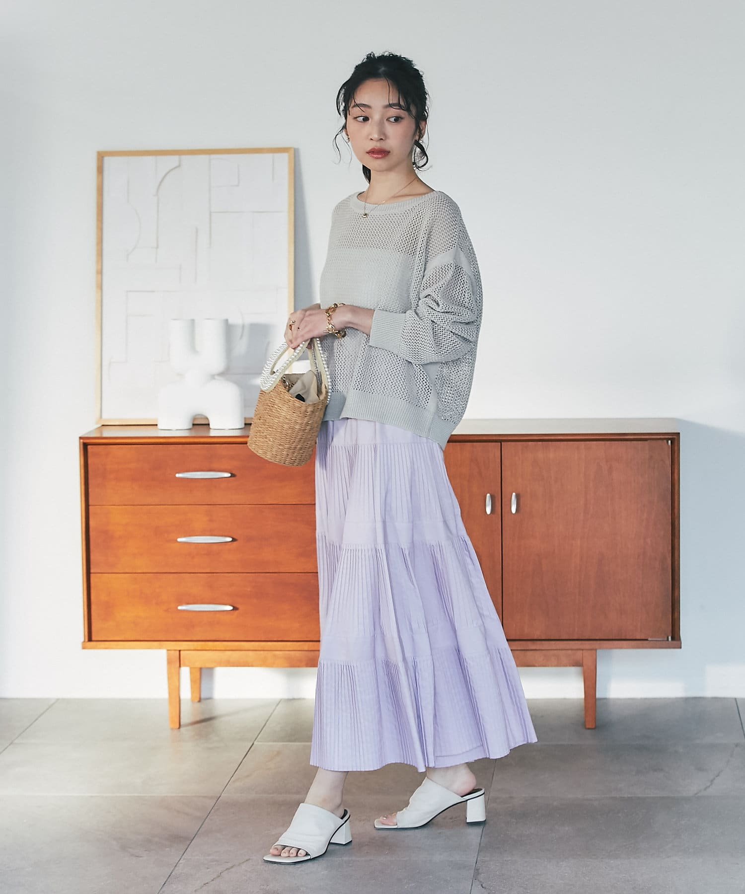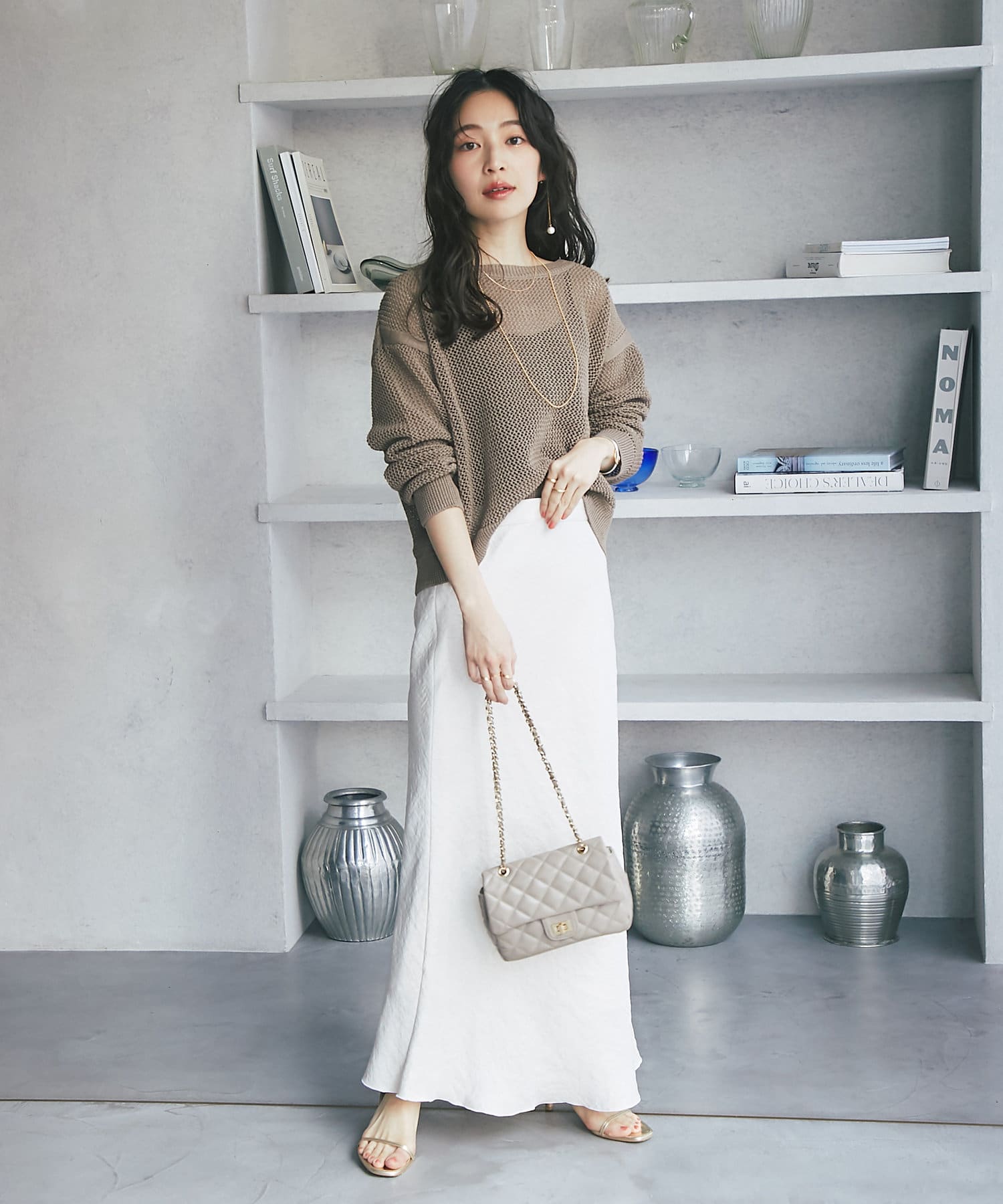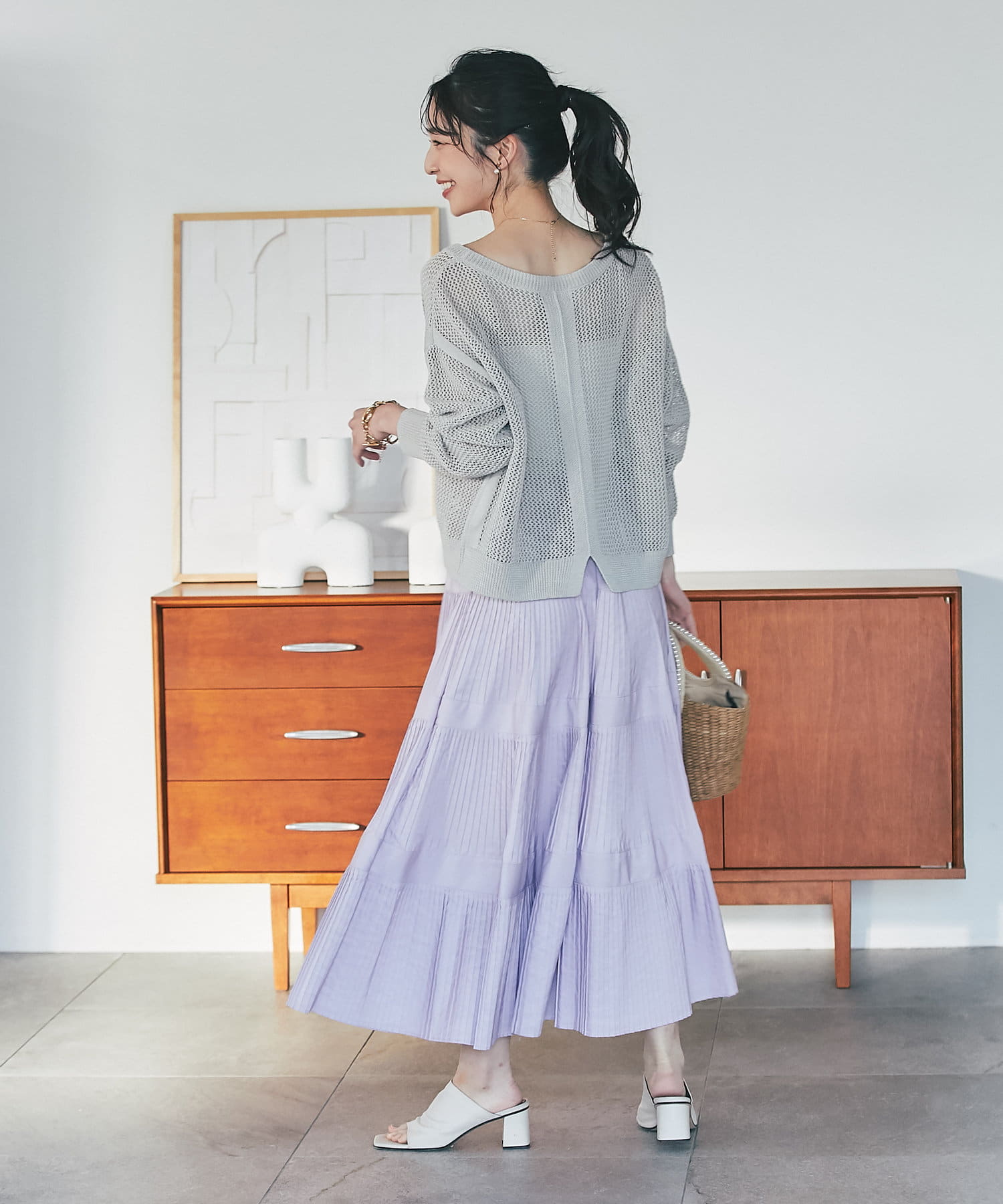 ざっくりした編地とゆったりとしたサイズ感が女性らしさをUP。